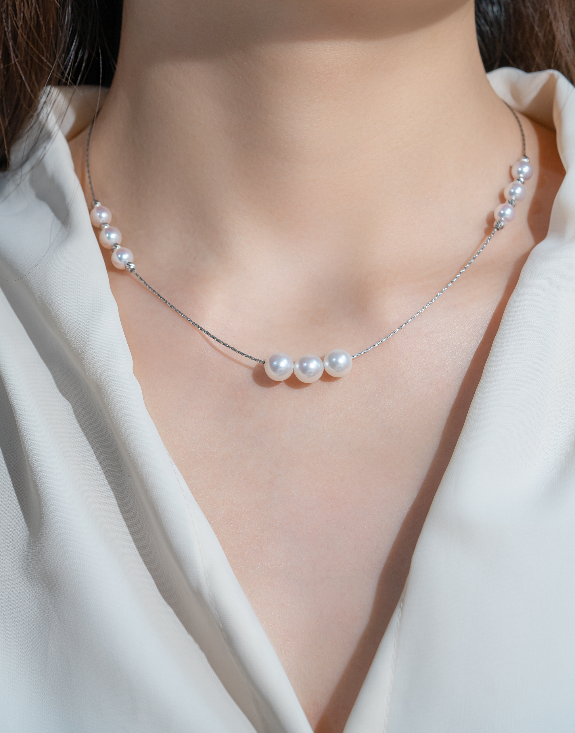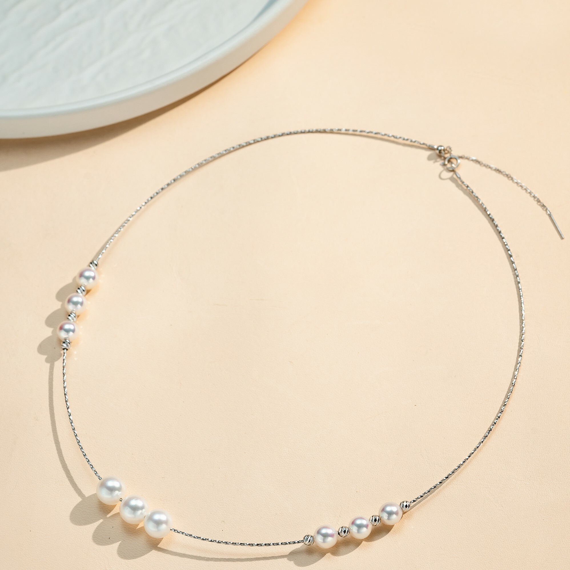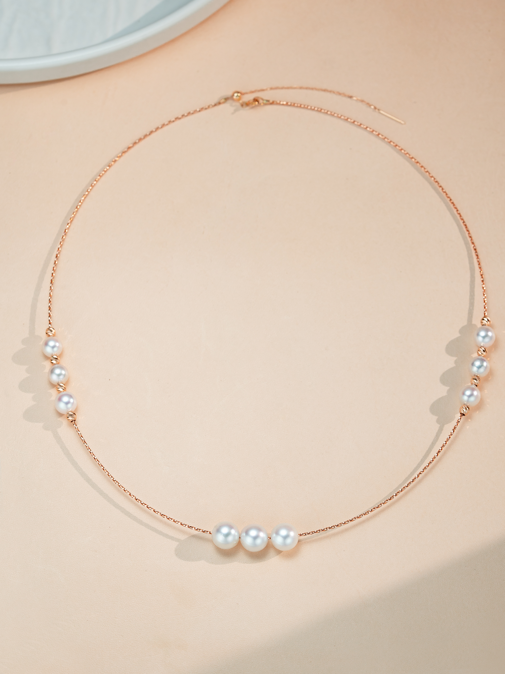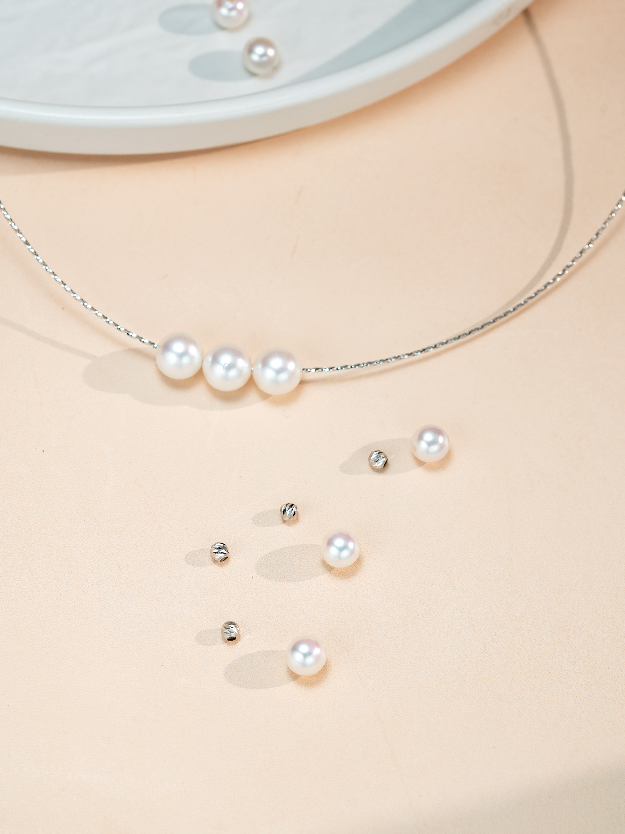 An advanced version of the classic Akoya Solitaire 18K Gold Memory Wire Cuff Necklace, which offers you more Akoya loose pearls and little 18K gold beads to create your ideal style. The 18K gold Memory Wire is able to support the weight of the pearls and beads without deforming the necklace.