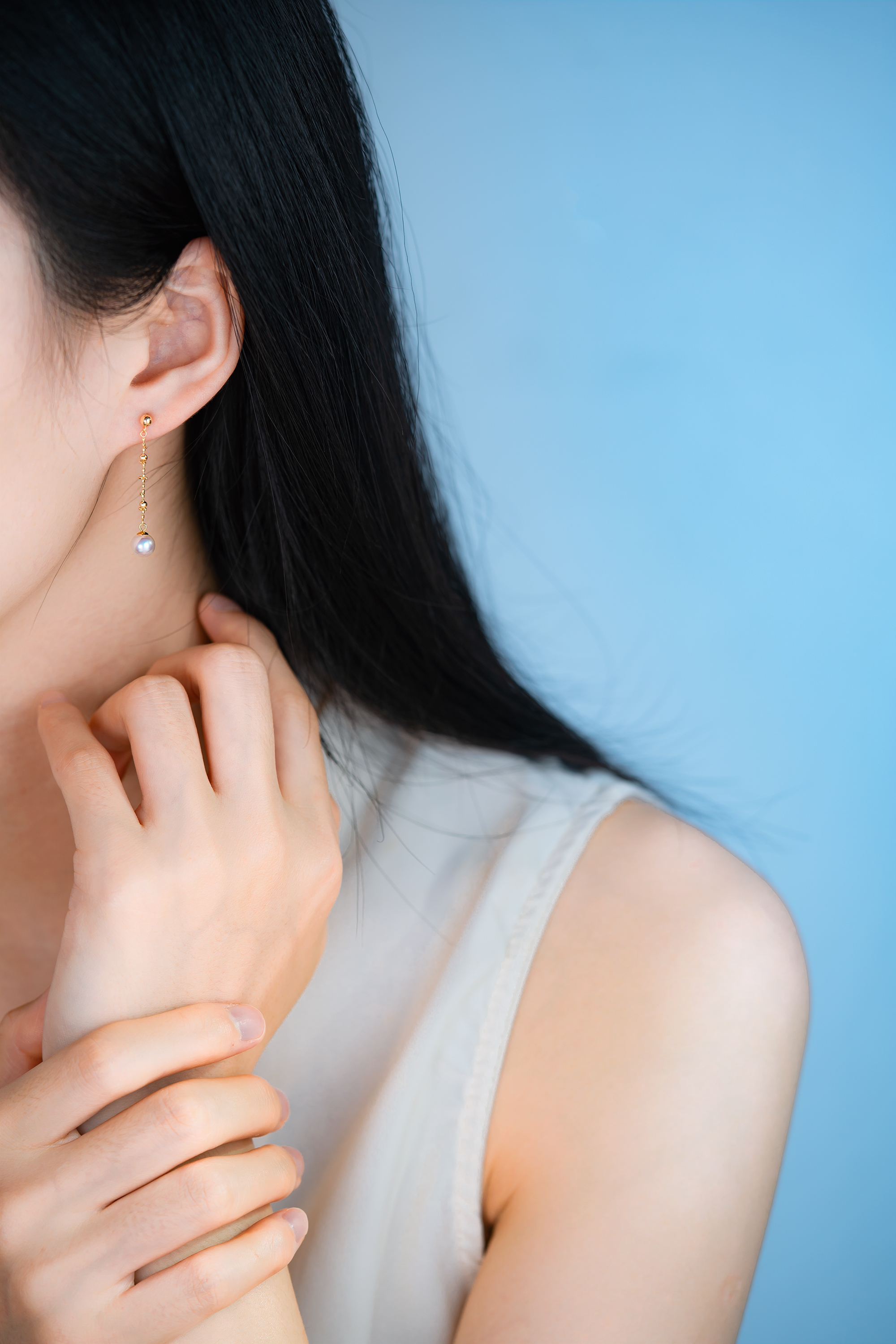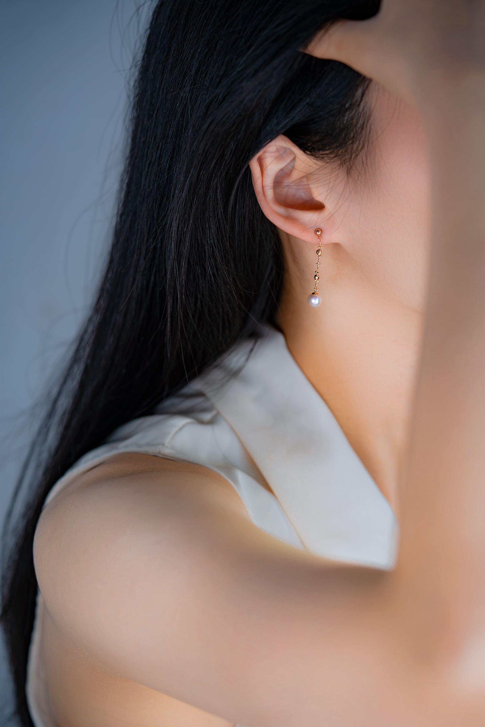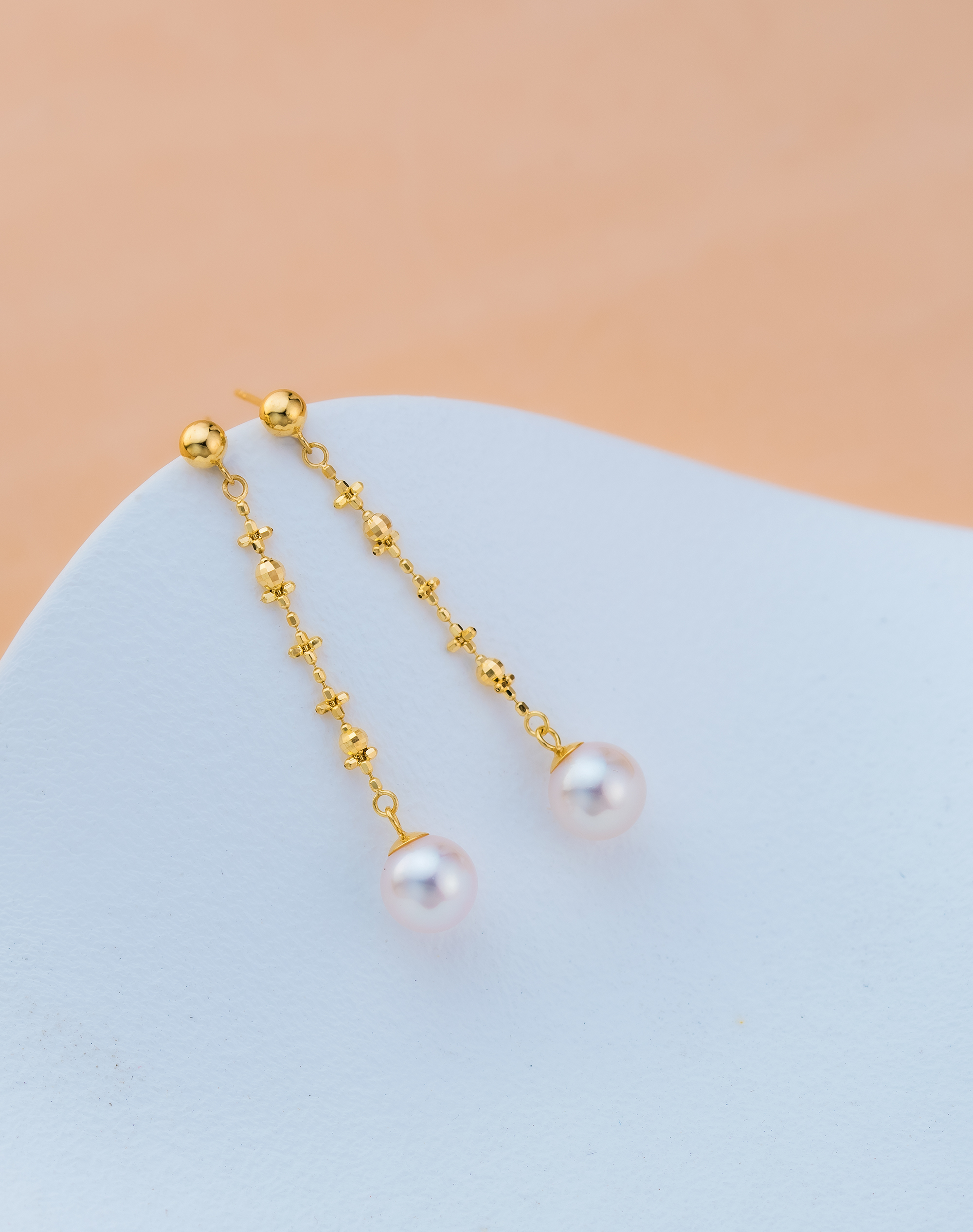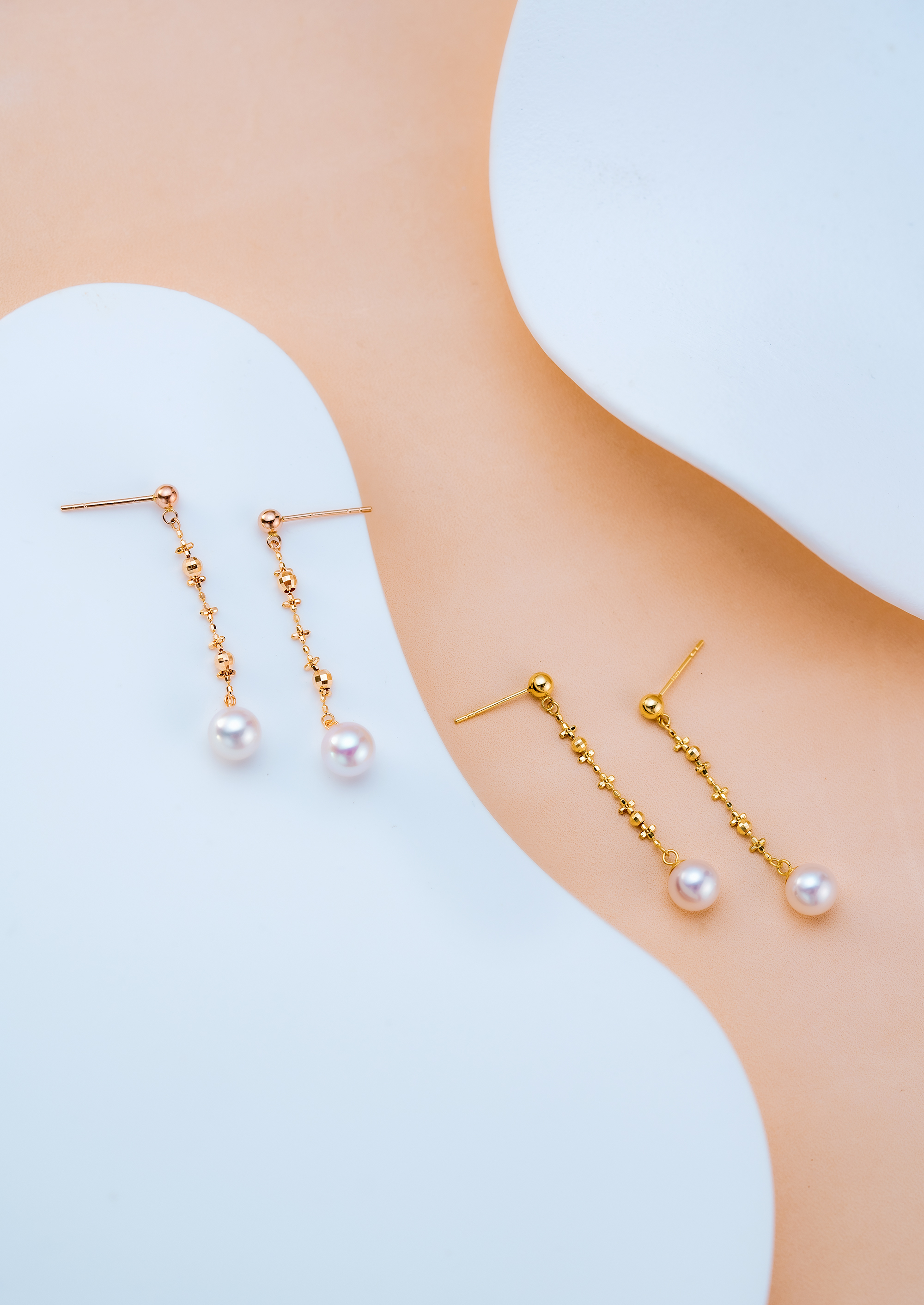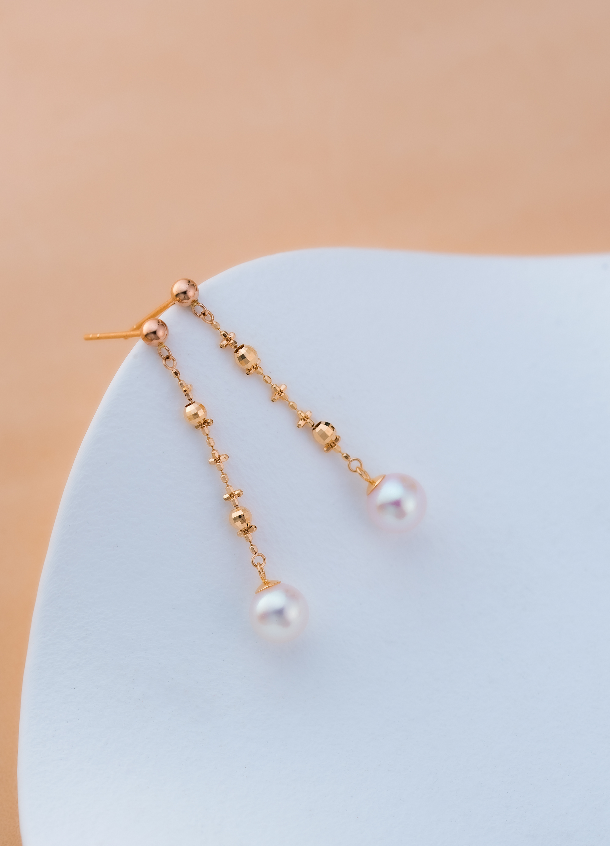 Akoya pearls in these earrings emit a natural and elegant pearly luster and are set in 18K gold. The 18K gold tassel design wraps delicately like lace in layered folds, gently swaying with the wearer’s movements, reflecting sparkling light that adds a sense of liveliness and feminine softness.