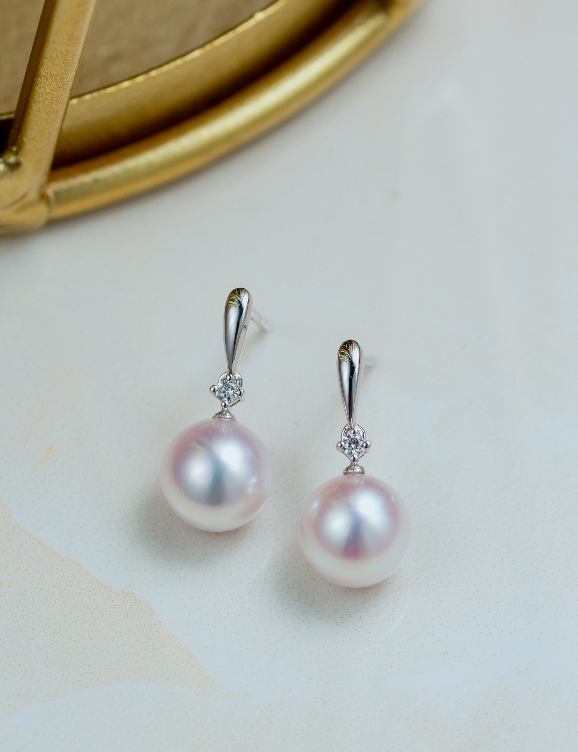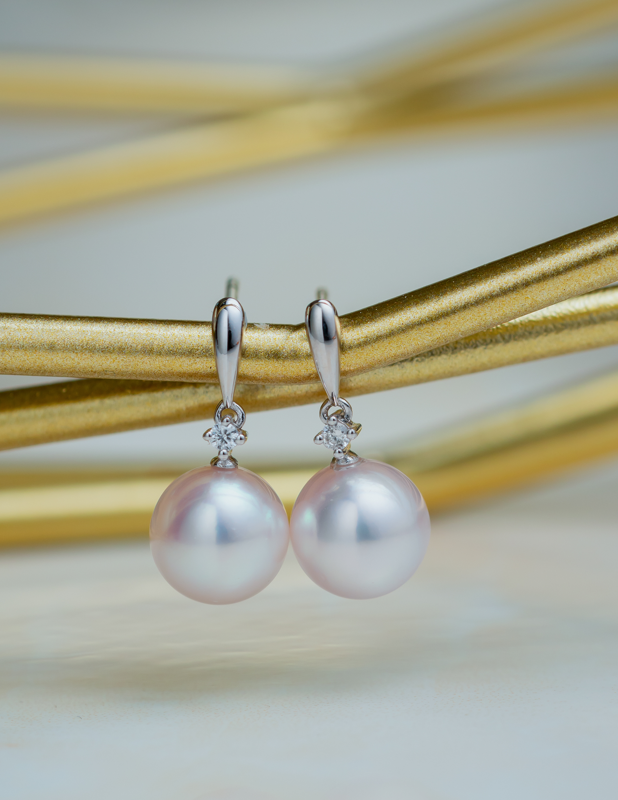 This pair of earrings is absolutely adorable and elegant. The two flawless Akoya pearls with pink luster are strung from the dainty 18K raindrop motif. Such chic and clean design is perfect to go with your daily outfits!