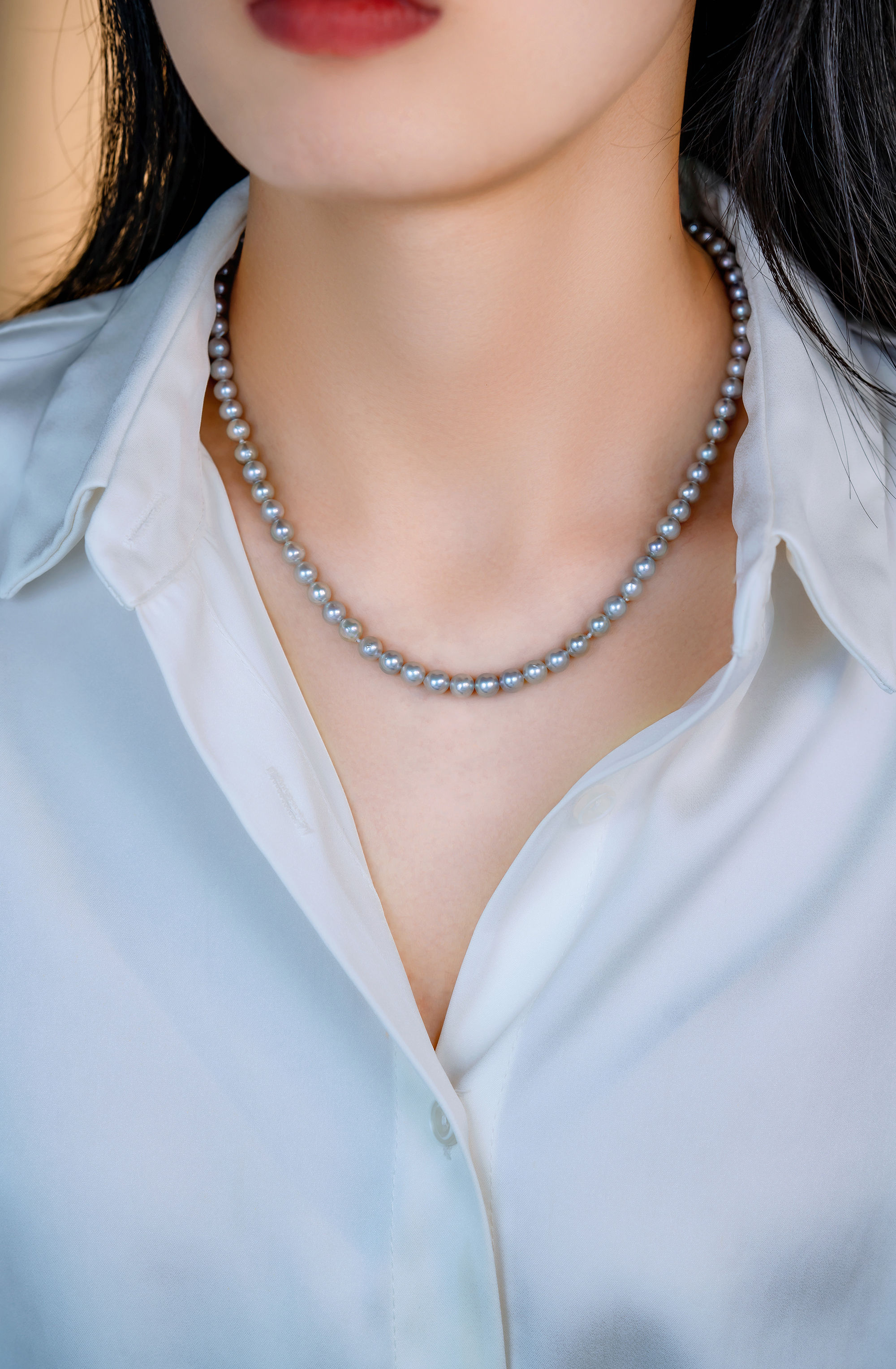 This Akoya silver-blue pearl necklace is versatile for both professional and everyday wear. It adds a touch of elegance and confidence to your outfit, whether you're at the office or attending social events. The pearls, resembling twinkling stars, bring a positive mood throughout the day.