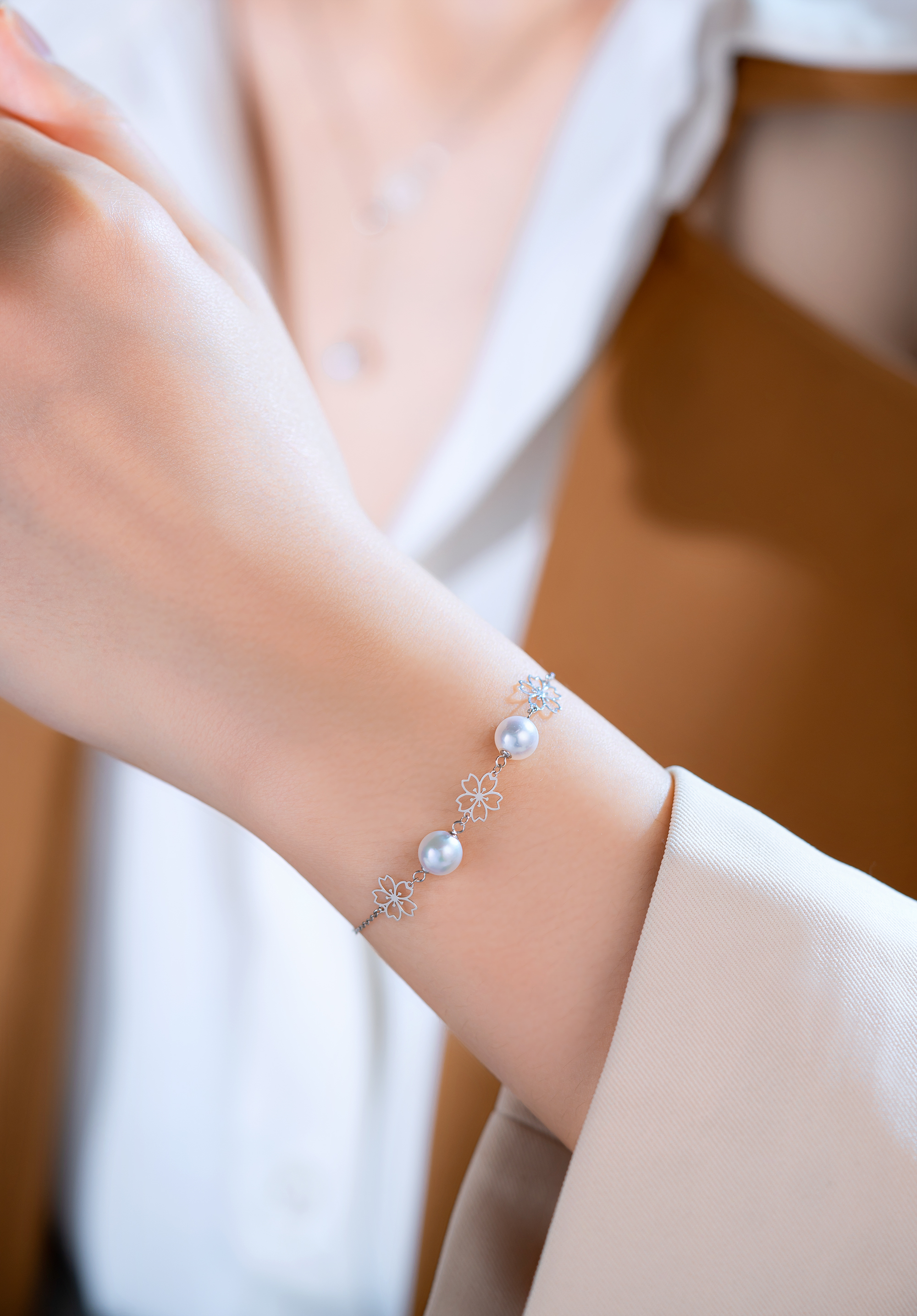This bracelet features Akoya pearls and Sakura-shaped 18K gold-plated arranged in intervals, capturing the vibrancy of spring with a romantic touch.