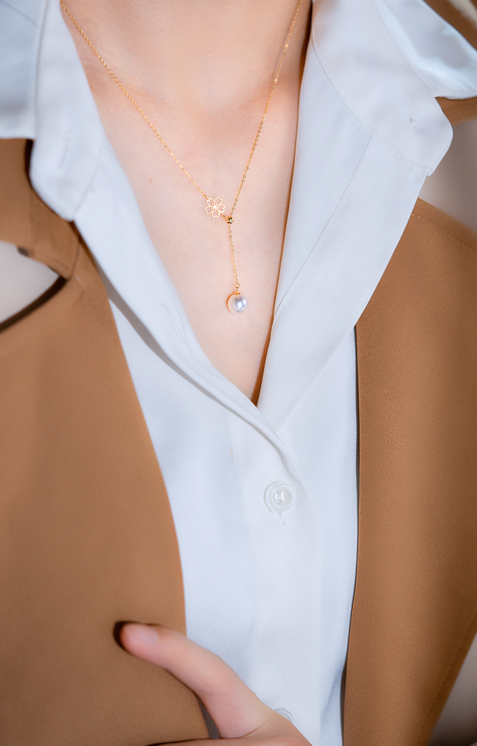 This necklace is an elegant symbol, crafted with delicate Akoya pearls and 18K gold.