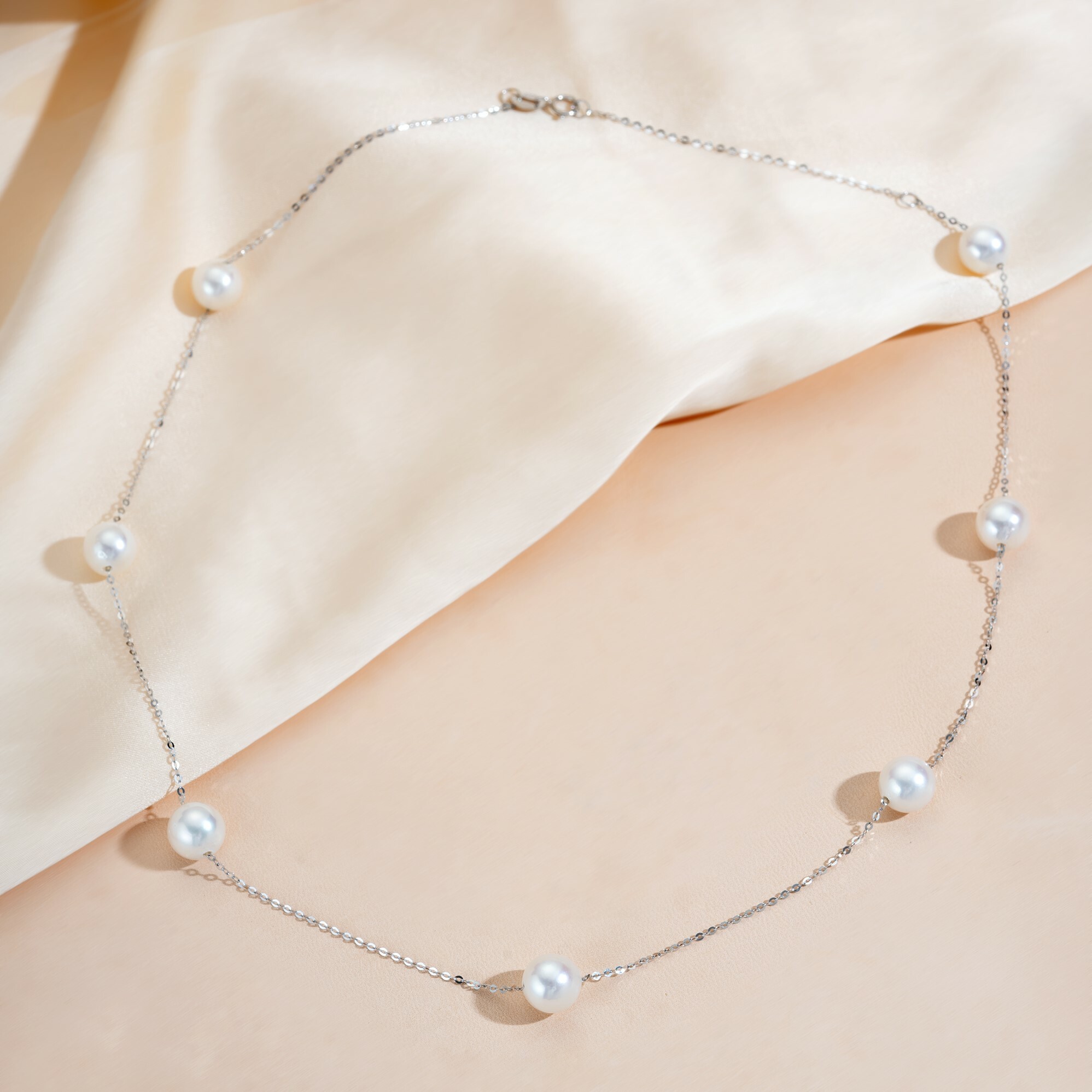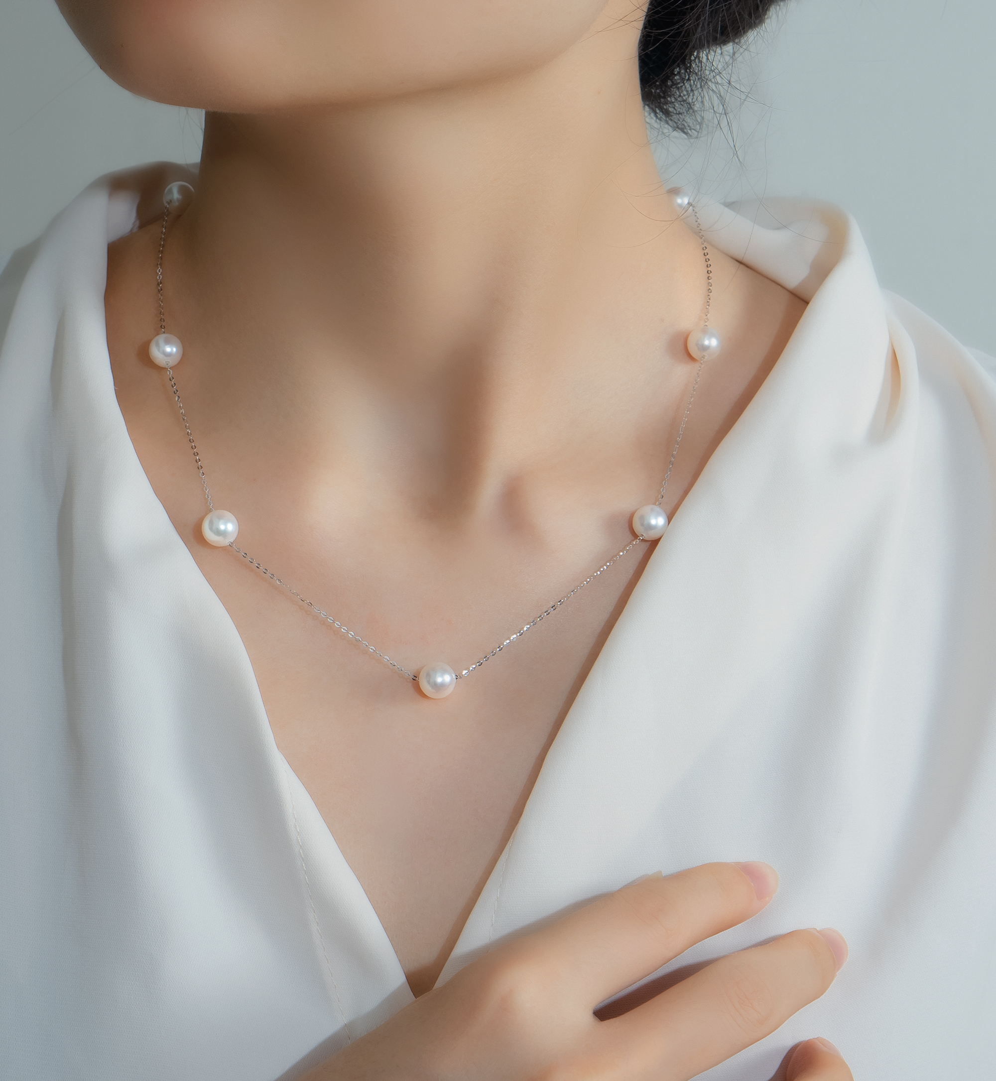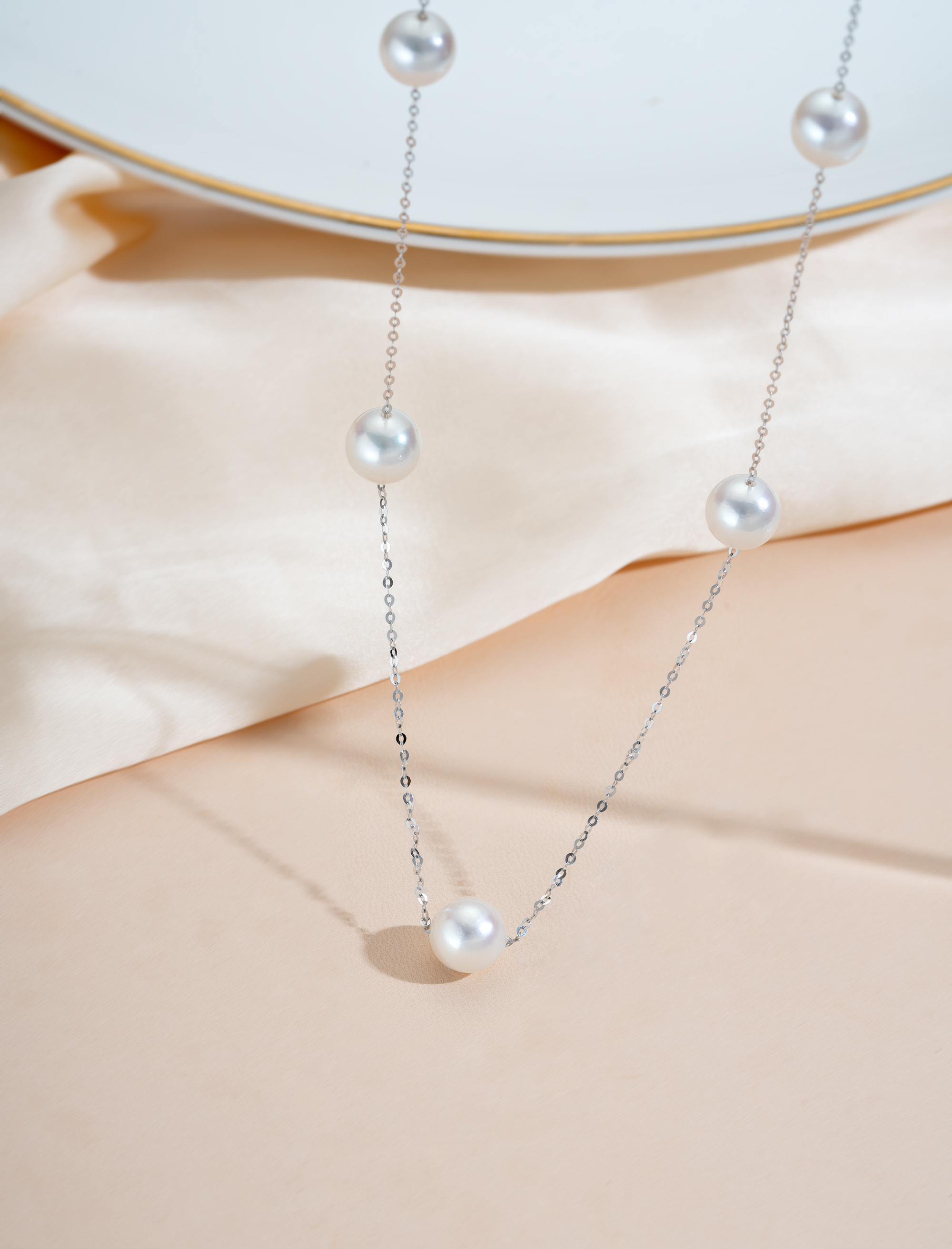 Inspired by the Starry night sky, featuring 7.5-8mm Akoya pearl and 18K gold chain and its length is 16-18". The design of this necklace is clean and simple, easy to go with your everyday outfit.