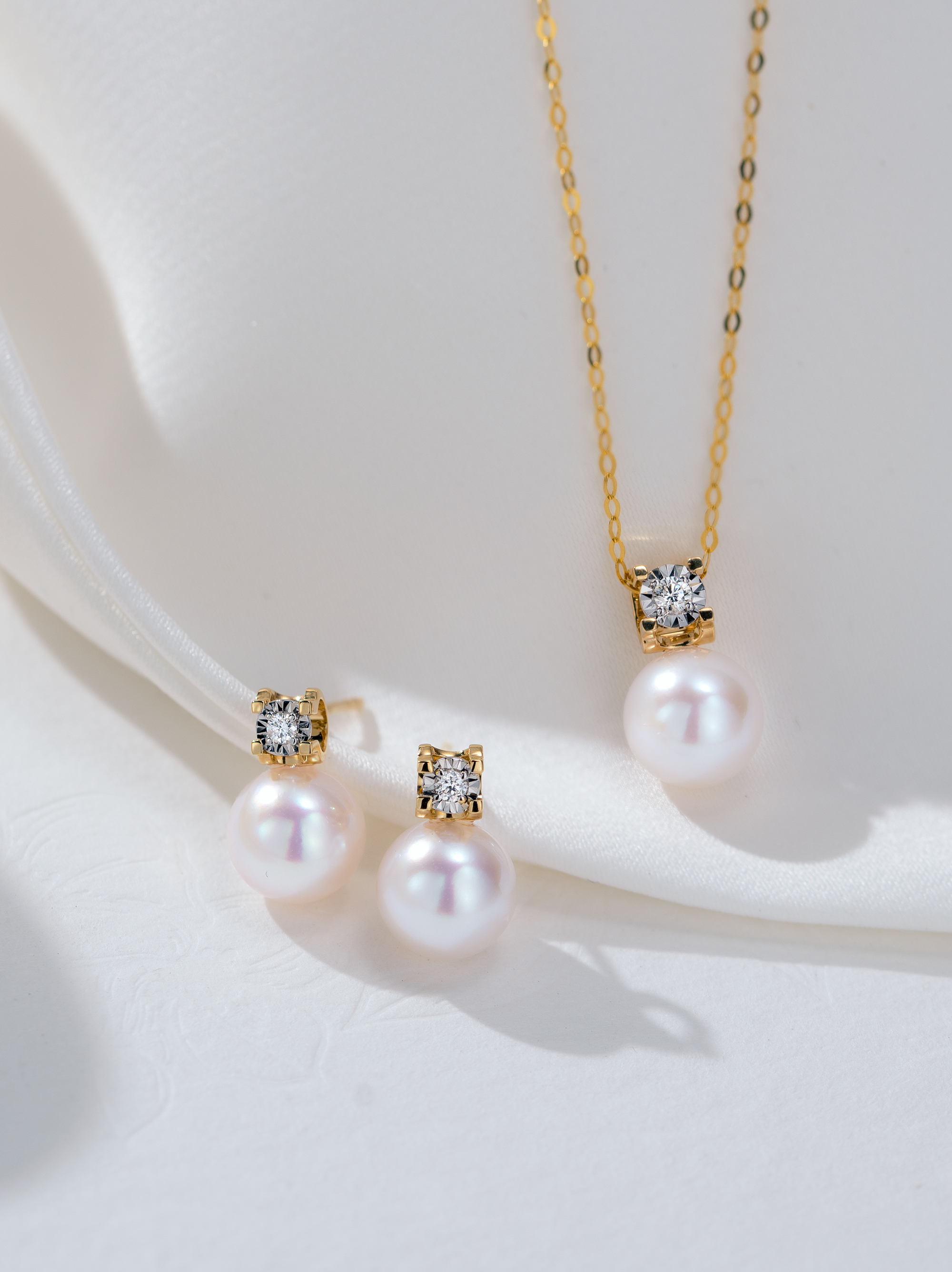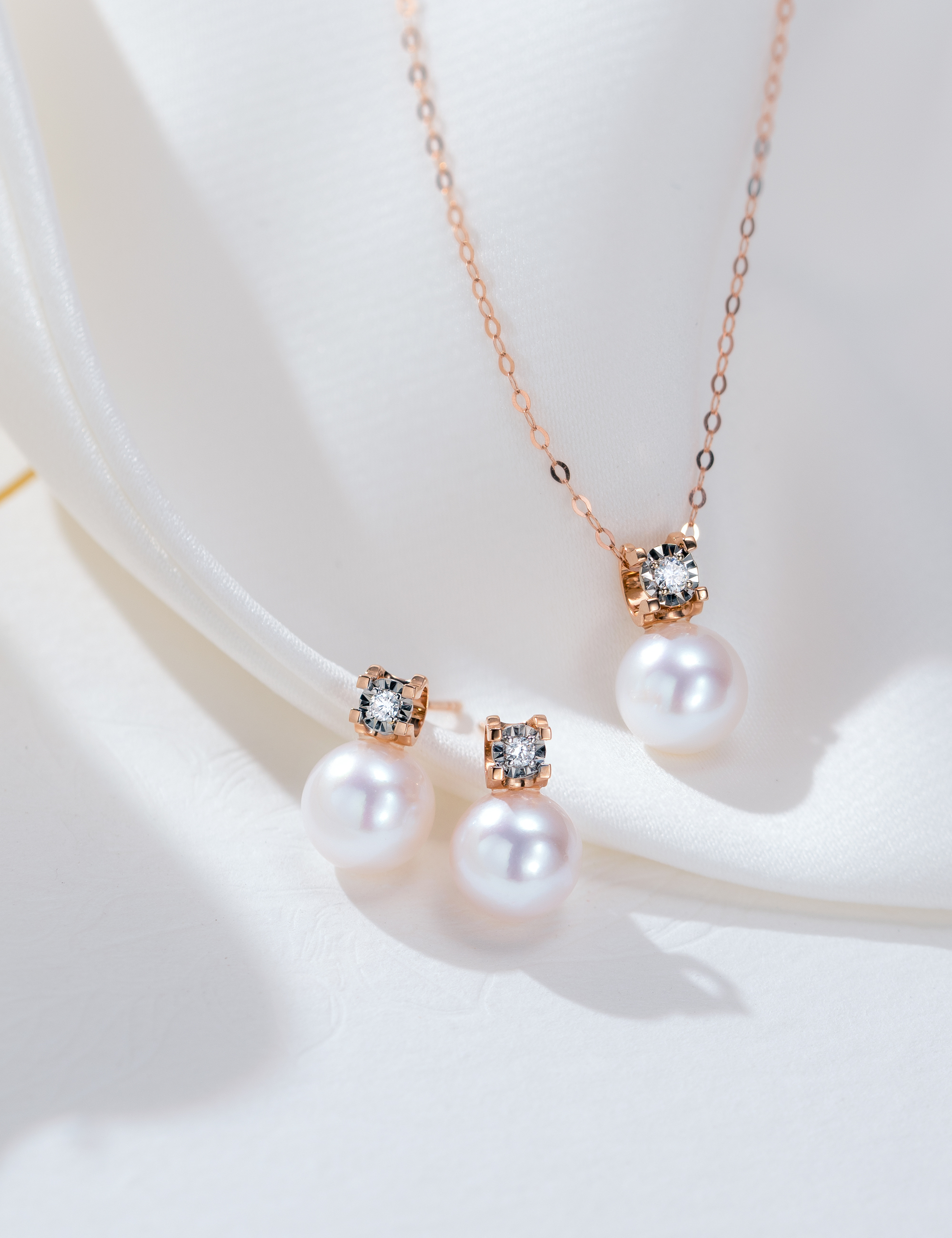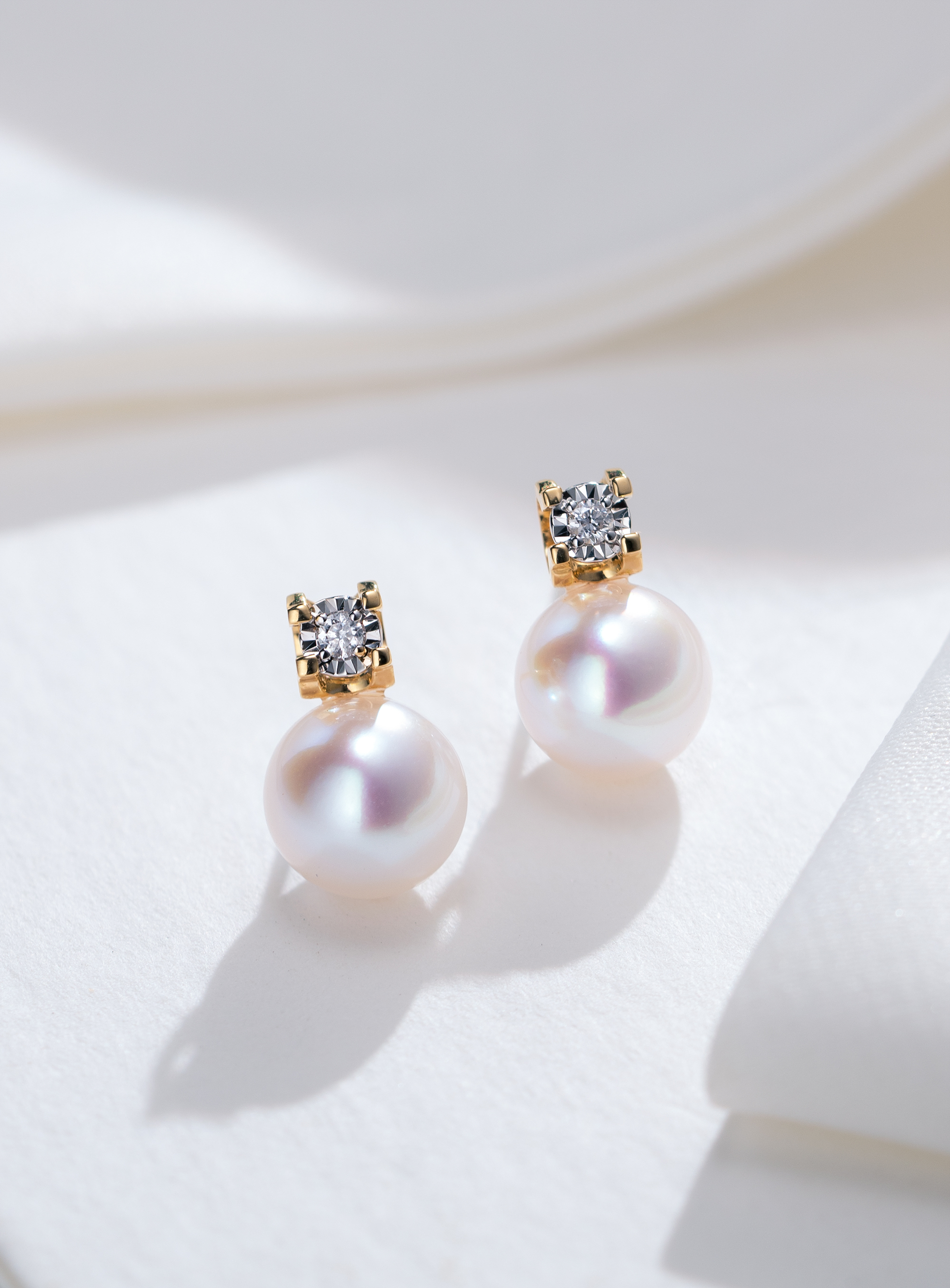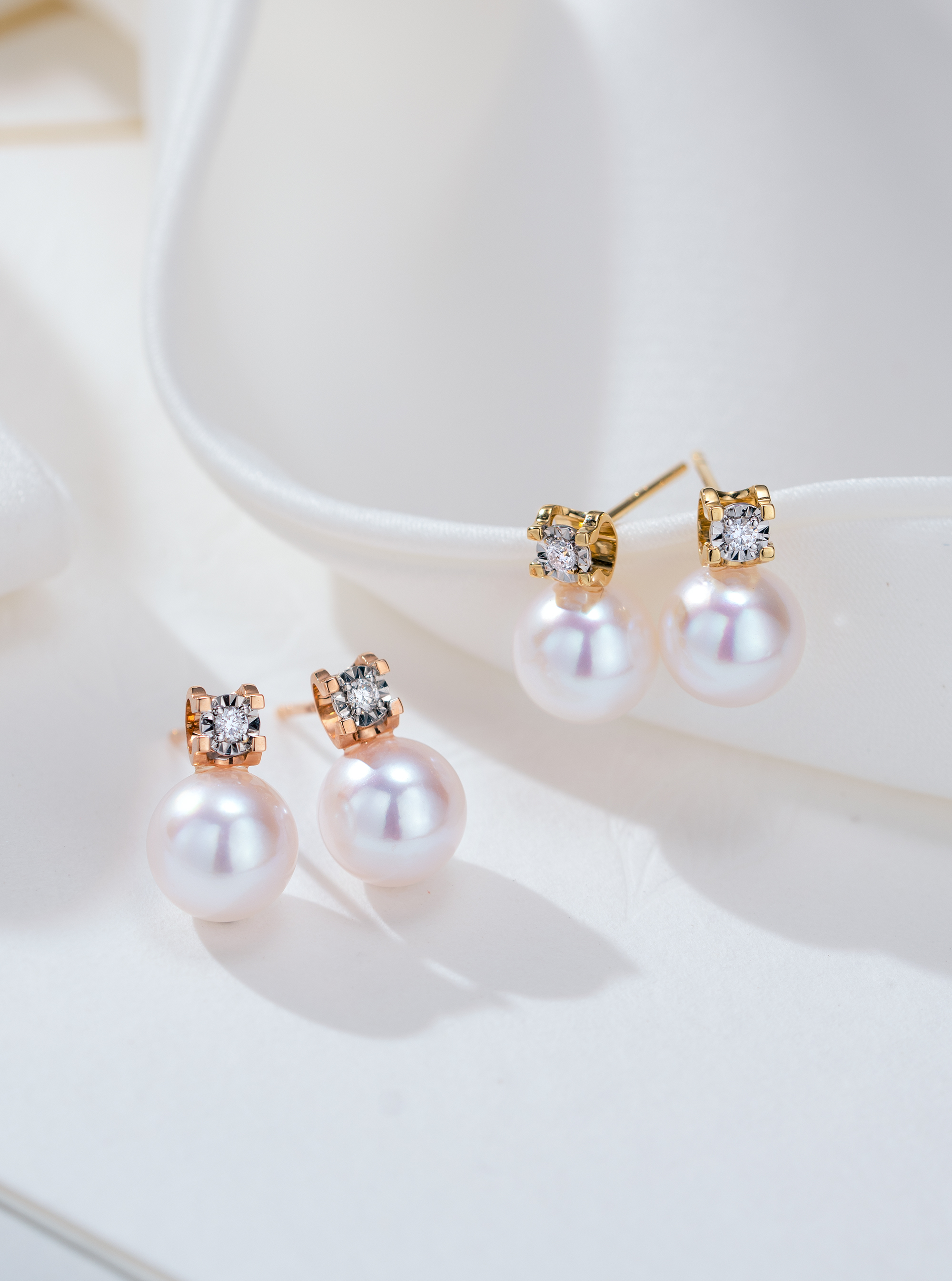 One of the bestselling earrings in Olina Pearl!! This pair features two prong-set solitaire diamonds and two peg-set rare 8-8.5mm Akoya pearl. The design of this pair of earrings is classic and can easily go with any outfit of any occasions!