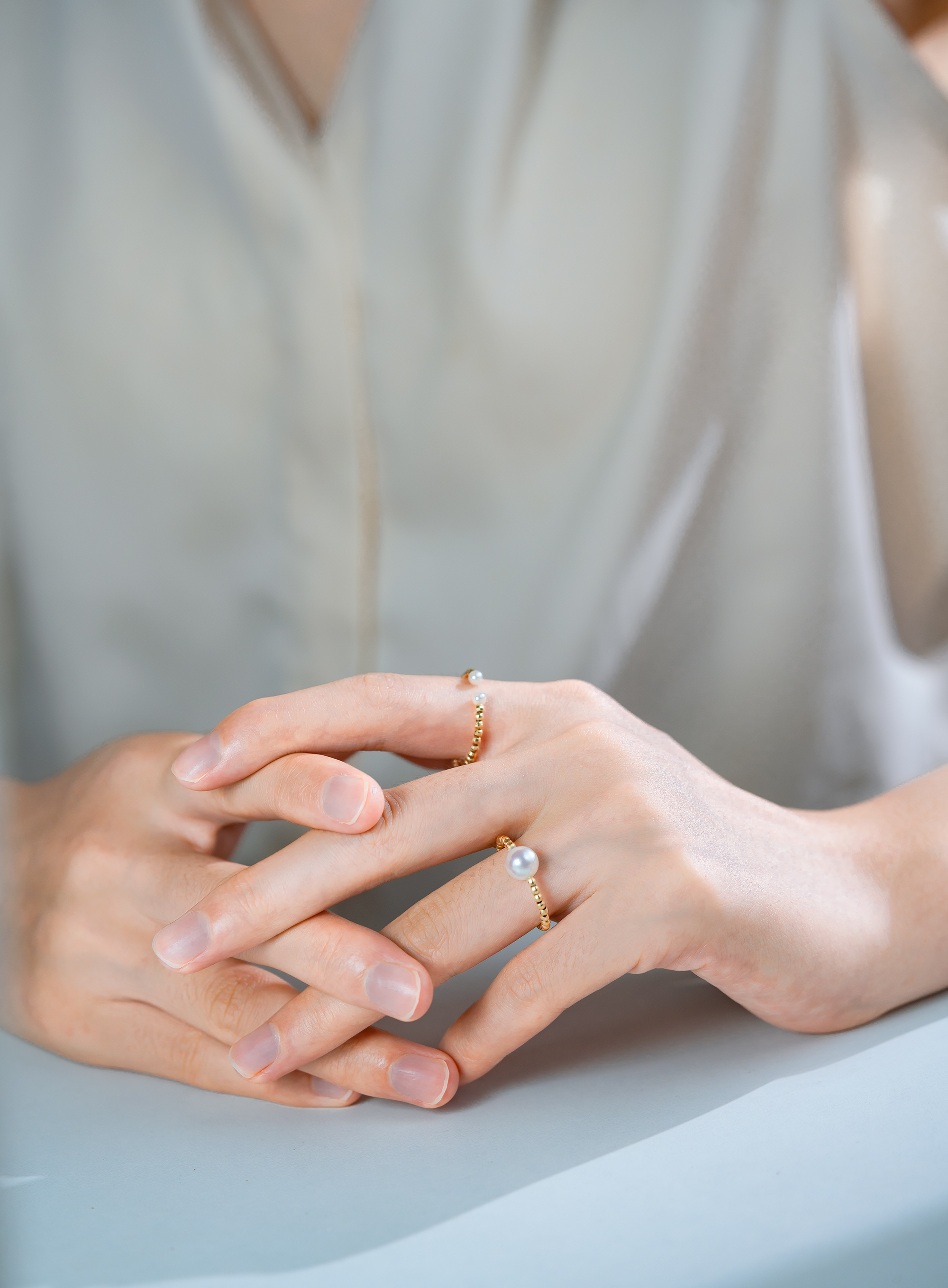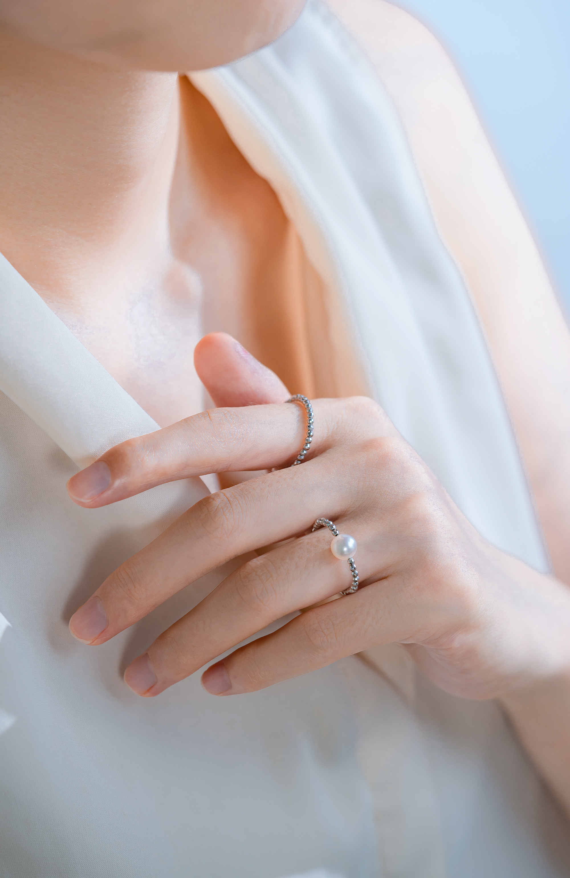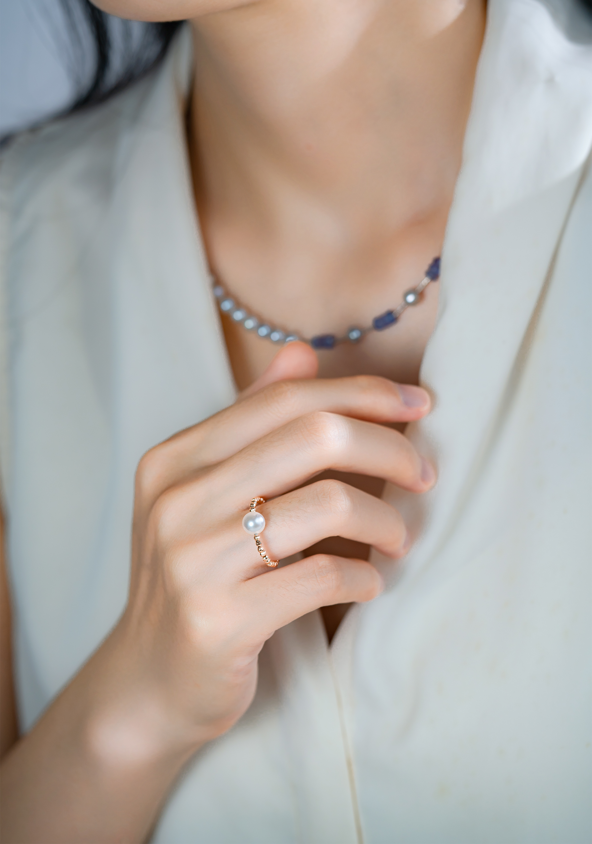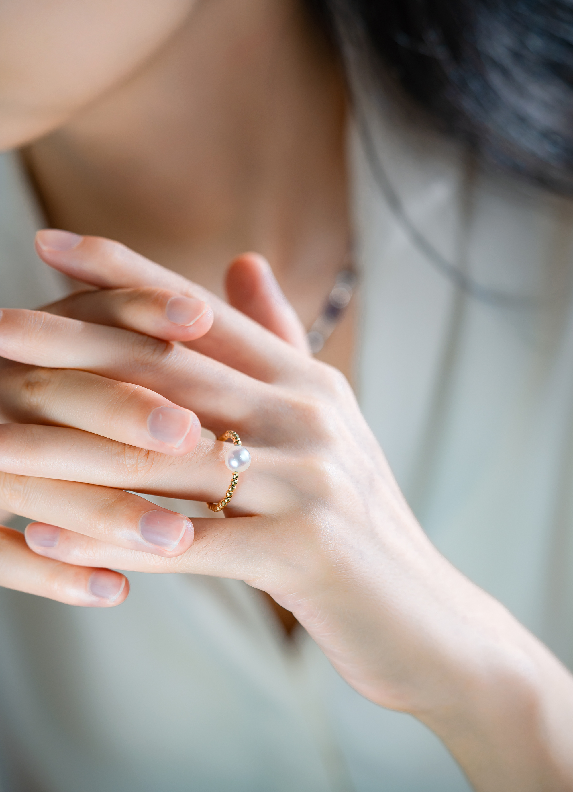 This ring features a Japan Aurora Akoya pearl set on an intricately textured band that shimmers with dreamy iridescence.