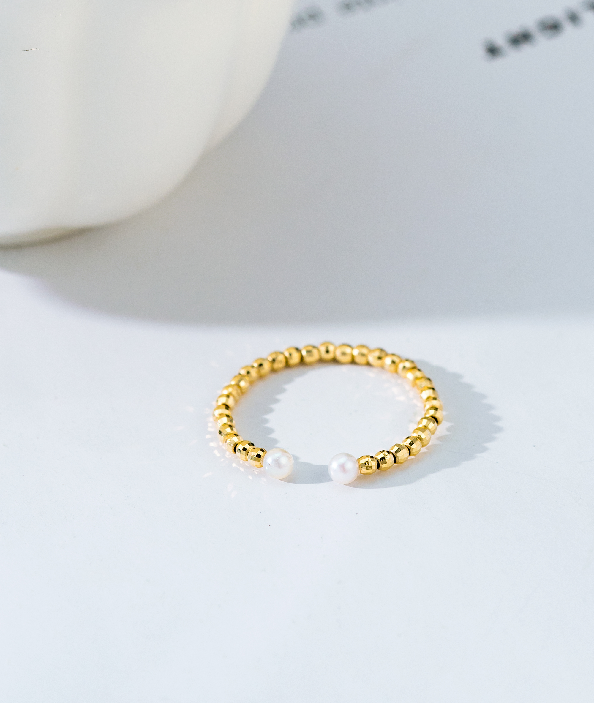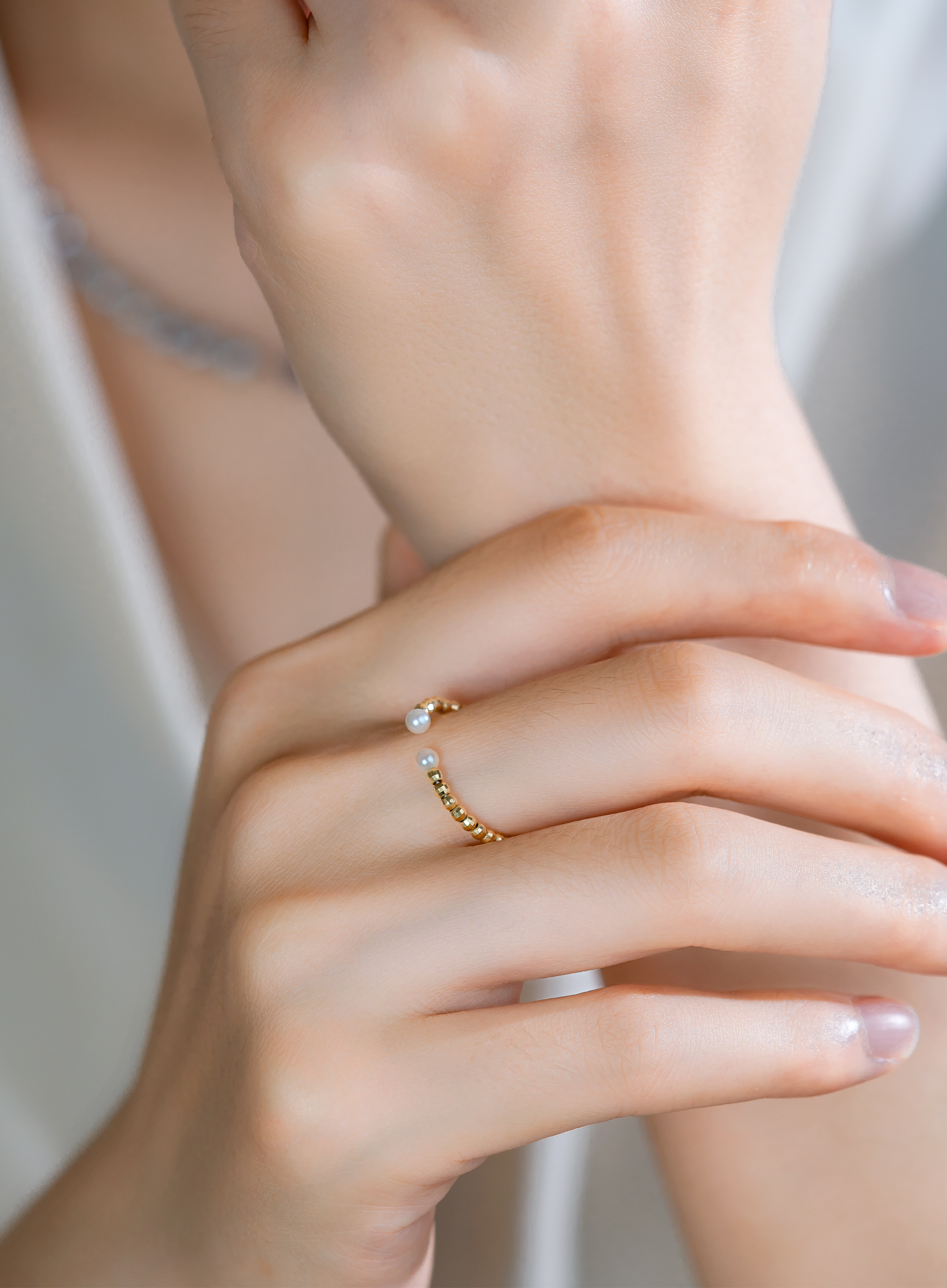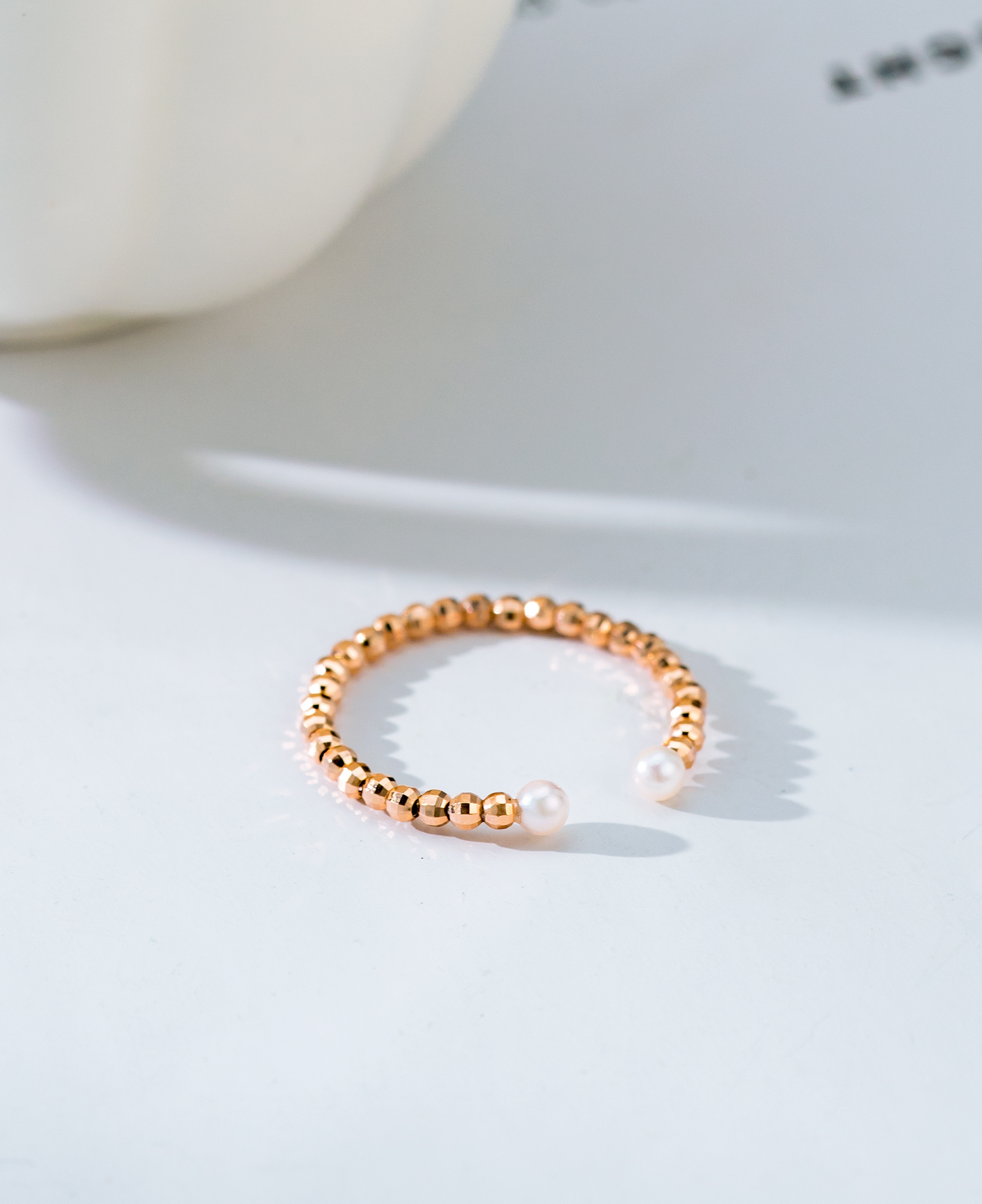 Baby Akoya Minimalist Sparkling Bead 18K Gold Open Ring