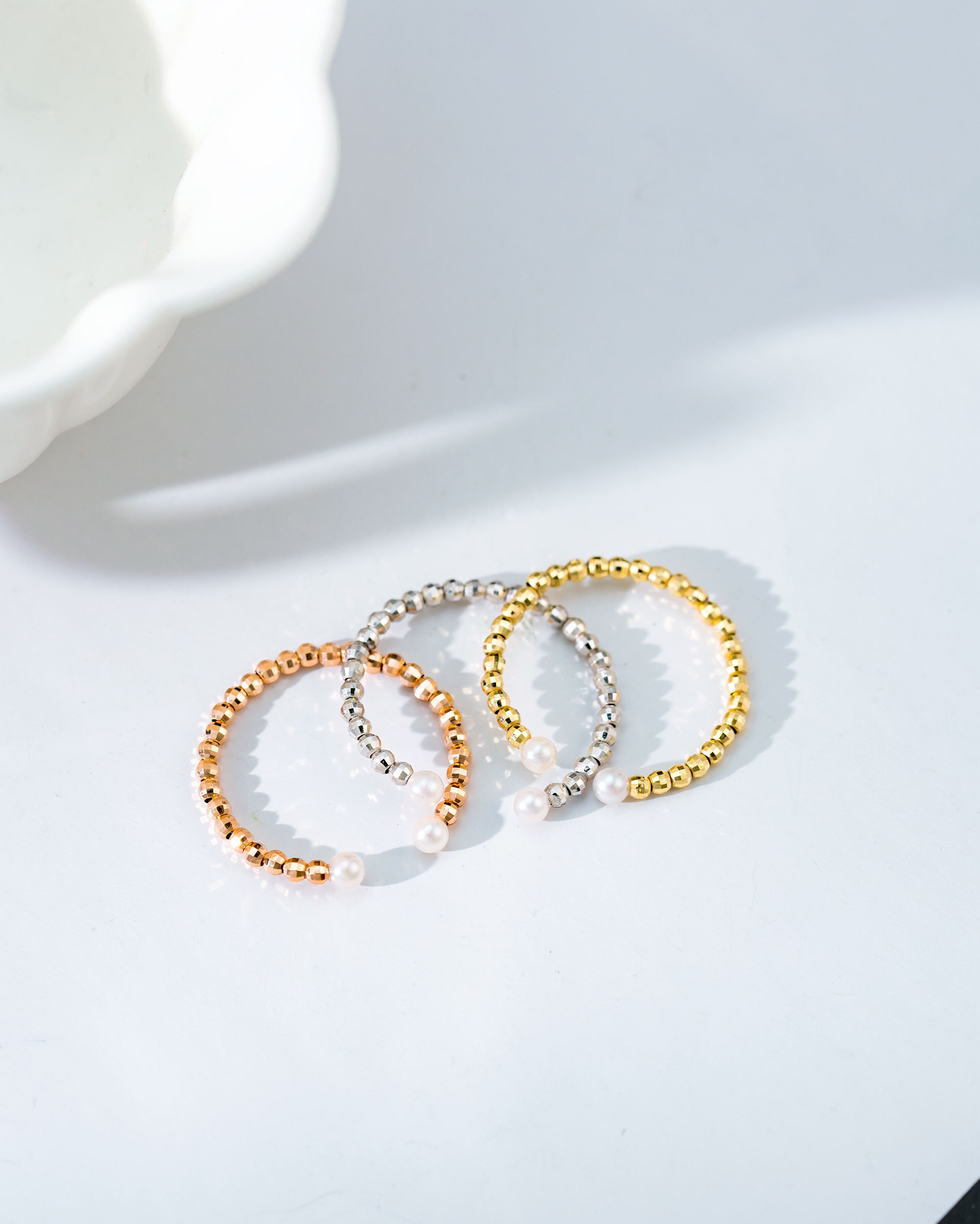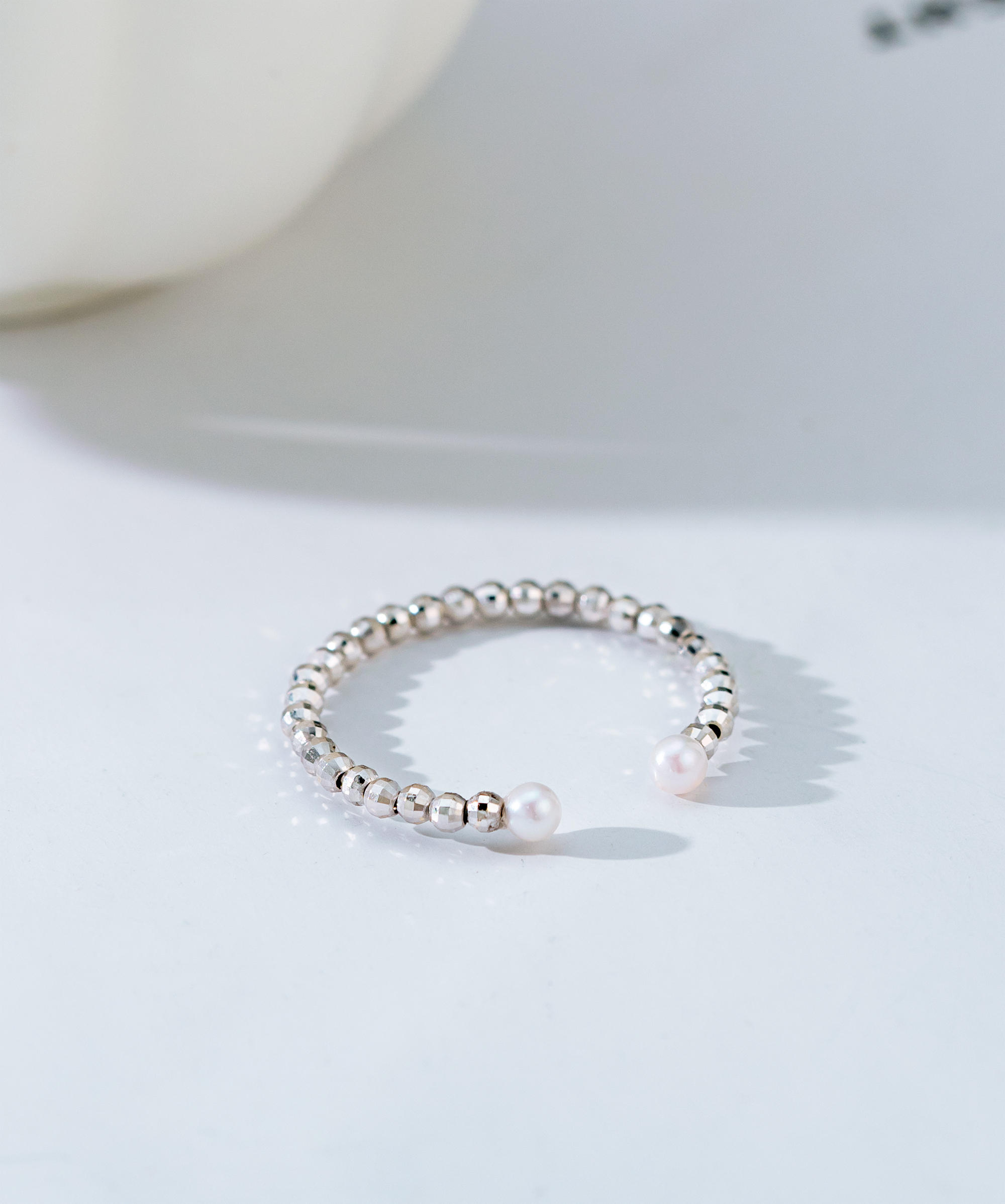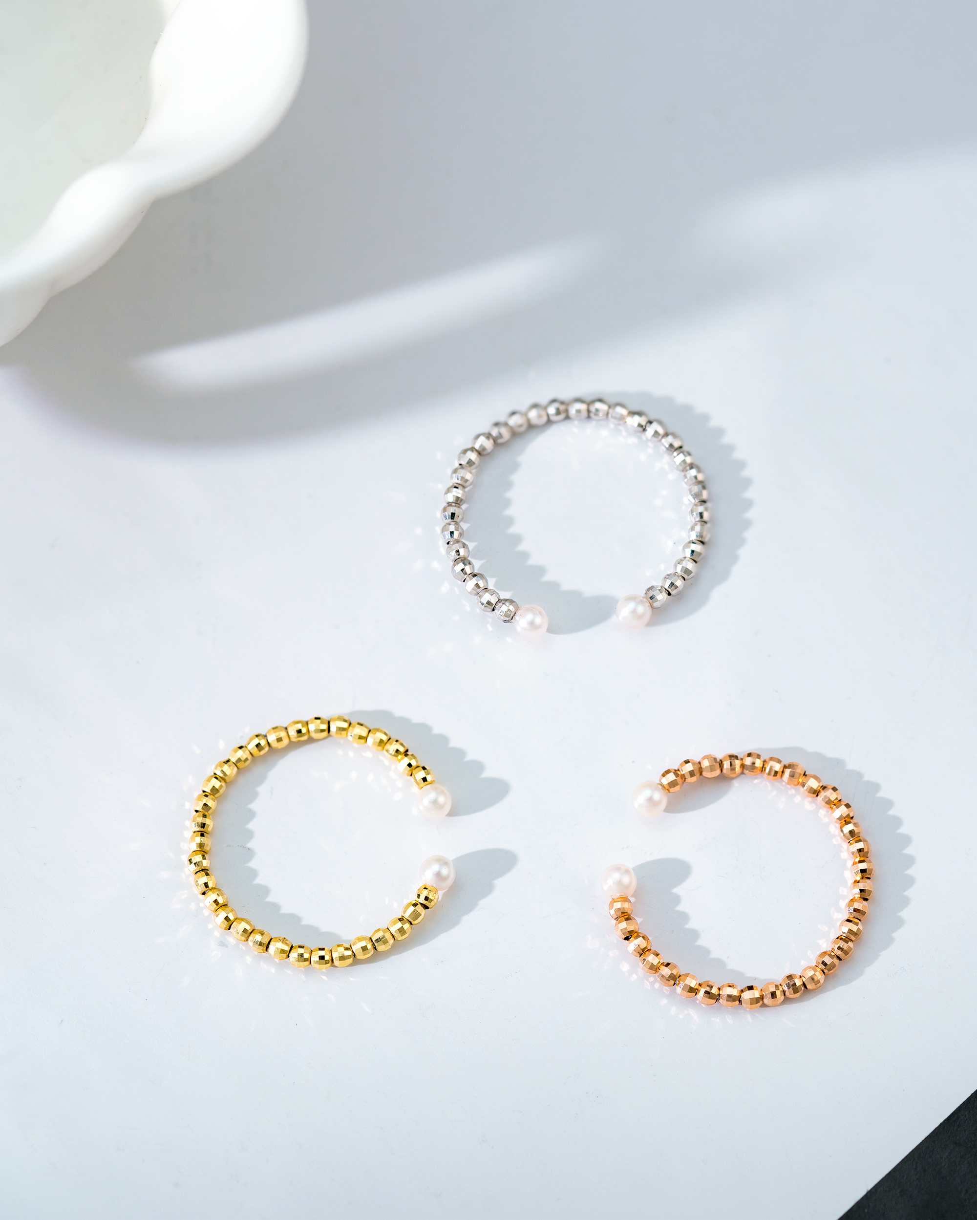 Baby Akoya Minimalist Sparkling Bead 18K Gold Open Ring