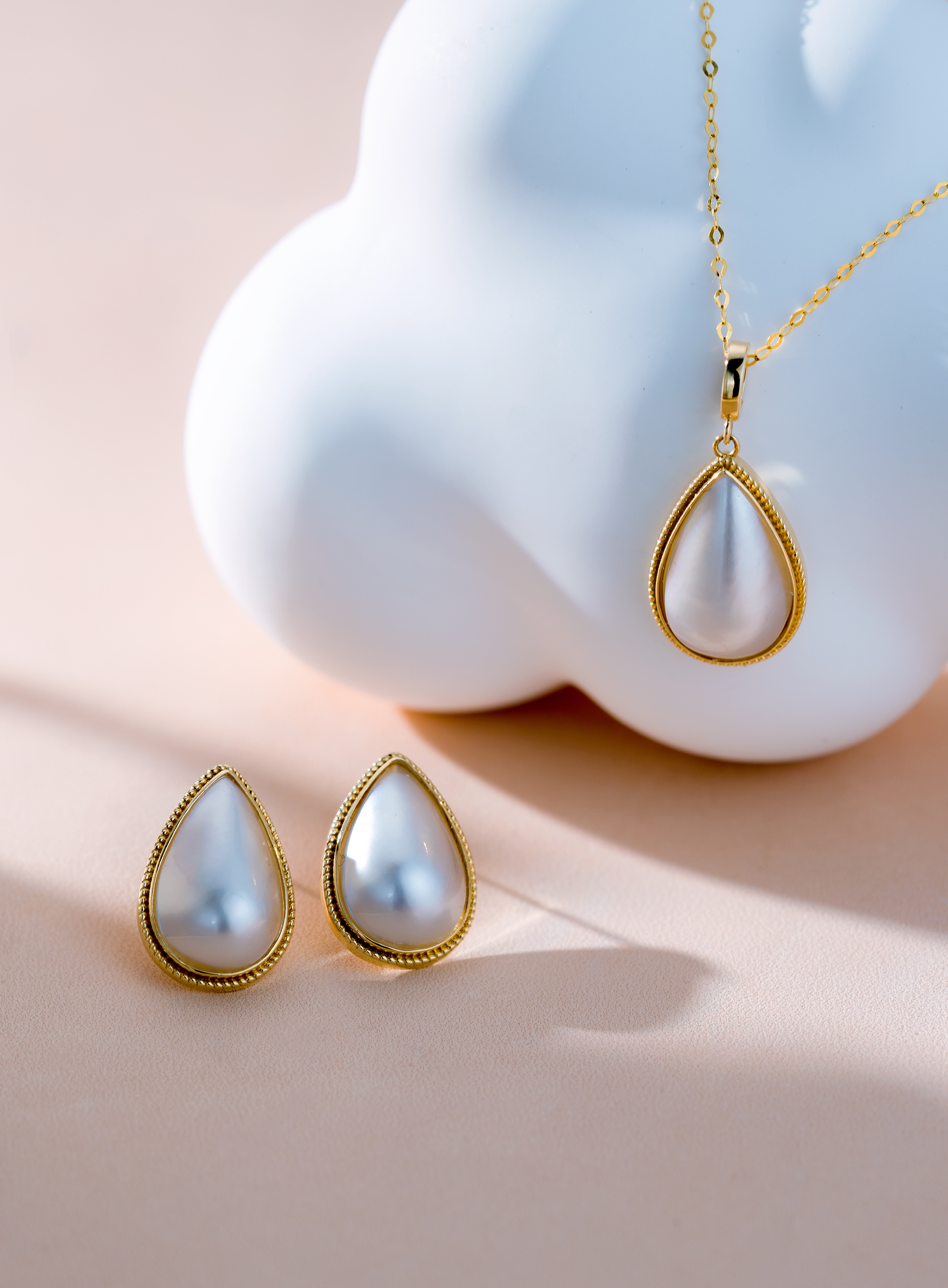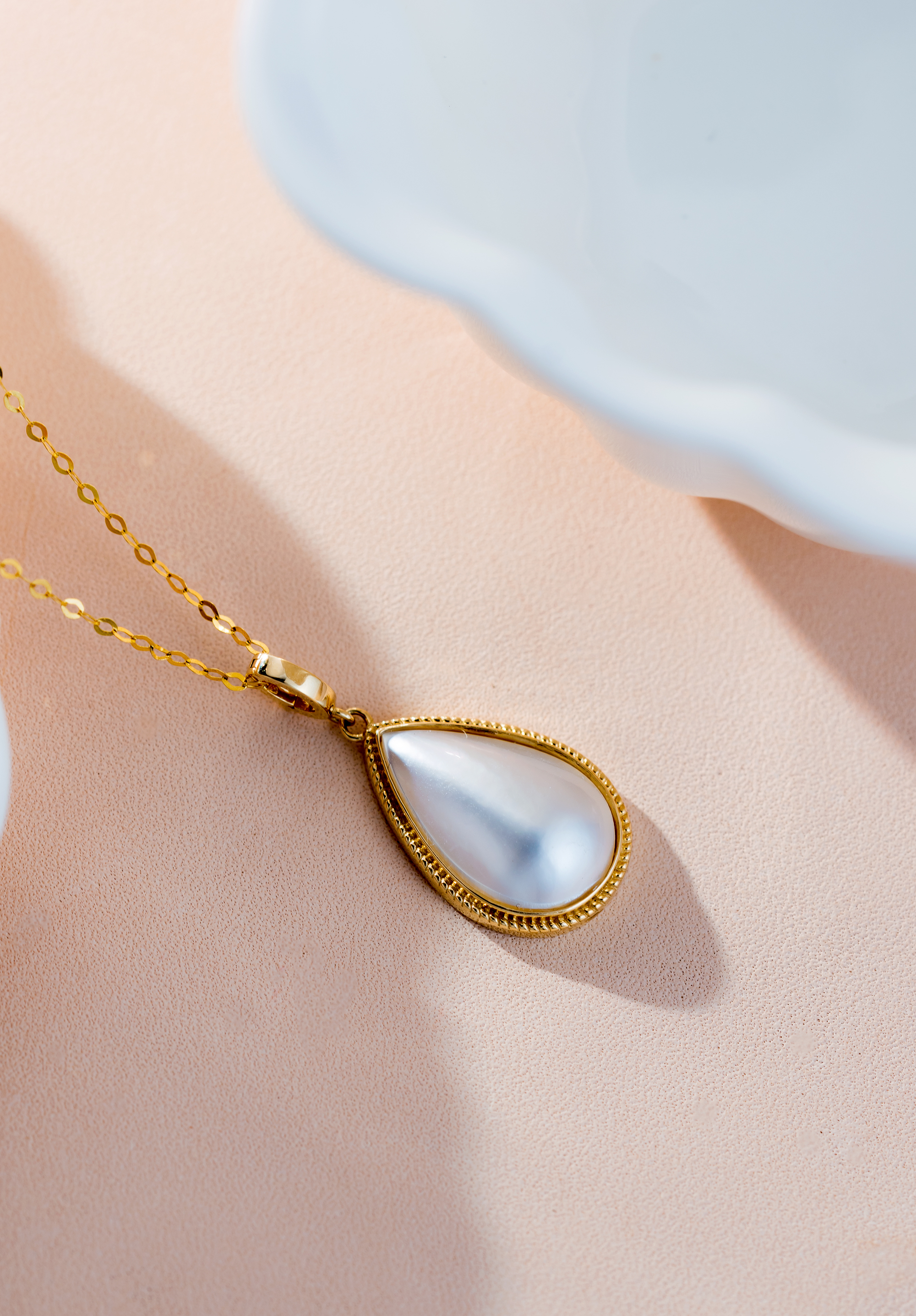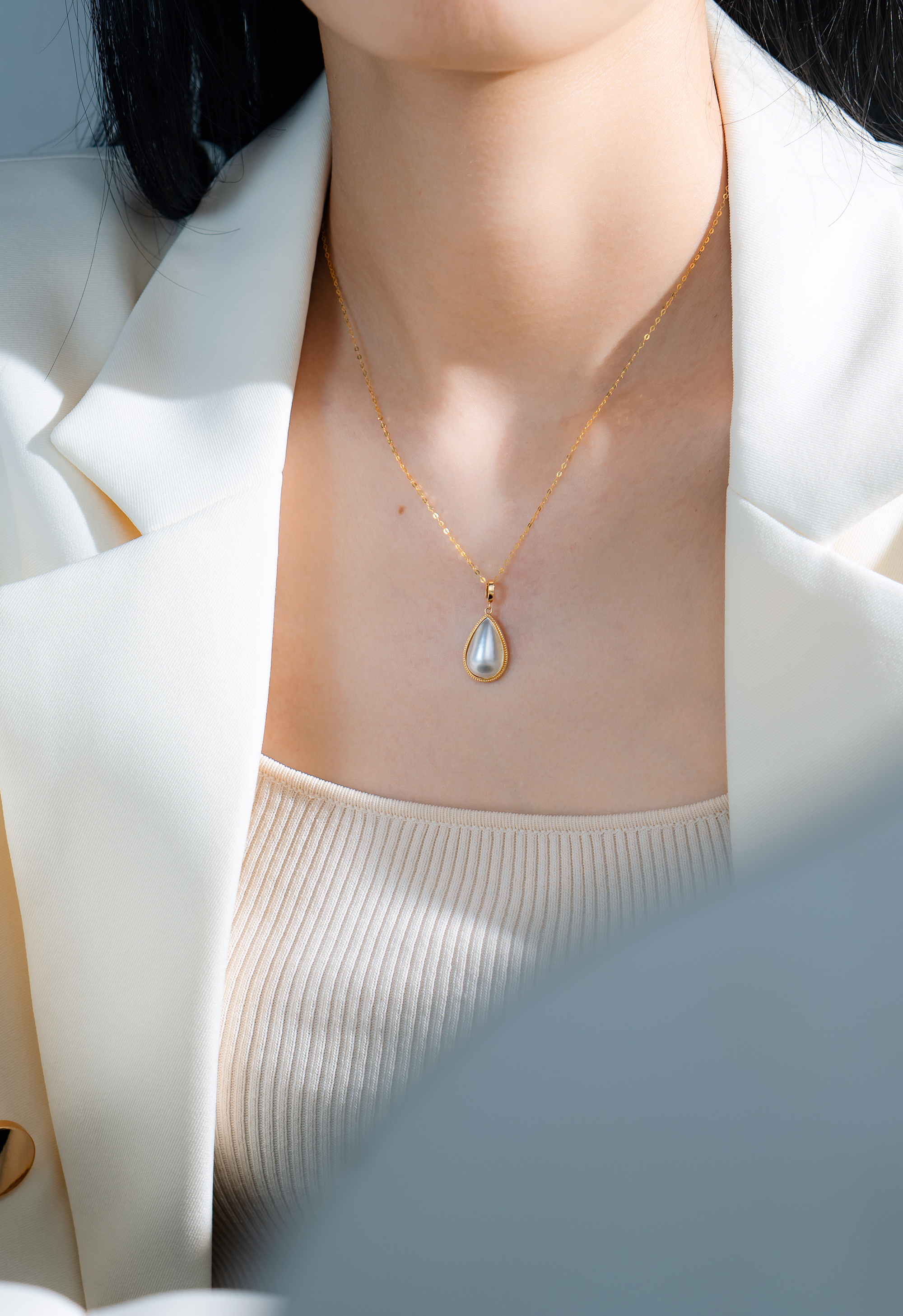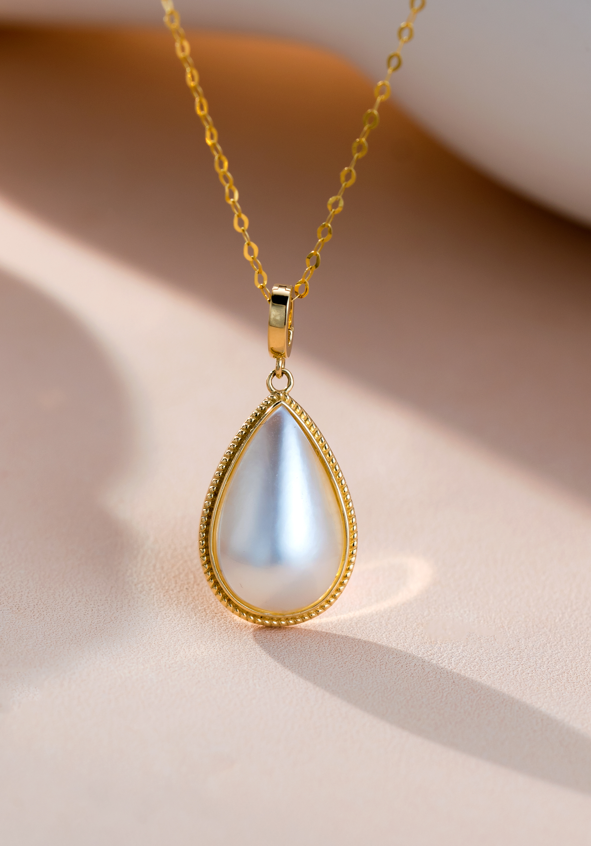 This pendant beautifully combines the natural beauty of drop-shaped South Sea Mabe pearl with luxurious 18K gold. The golden luster enhances the warm, lustrous sheen of the Mabe, creating a unique charm. With its elegant twisted edge design, this pendant is perfect for various occasions.