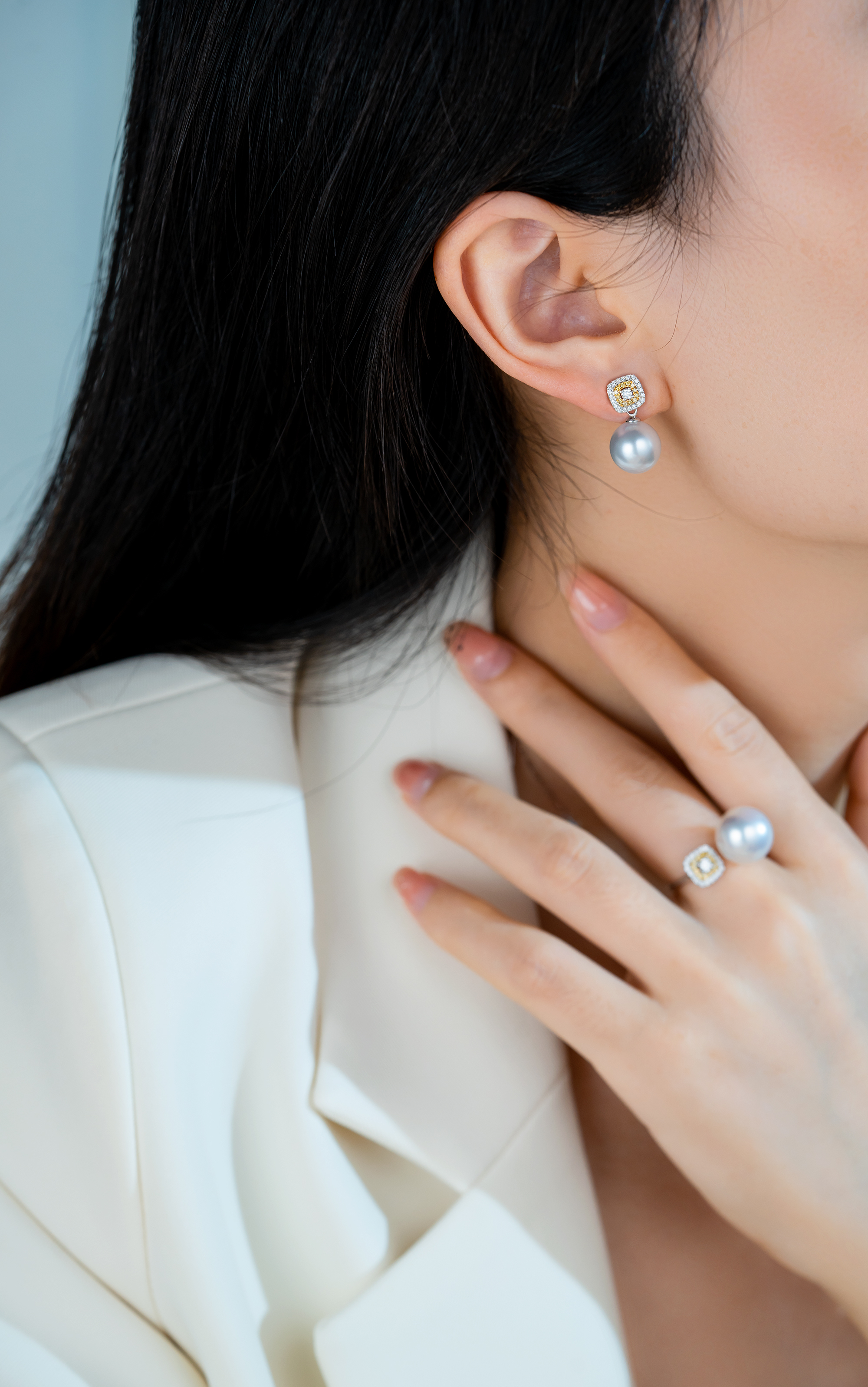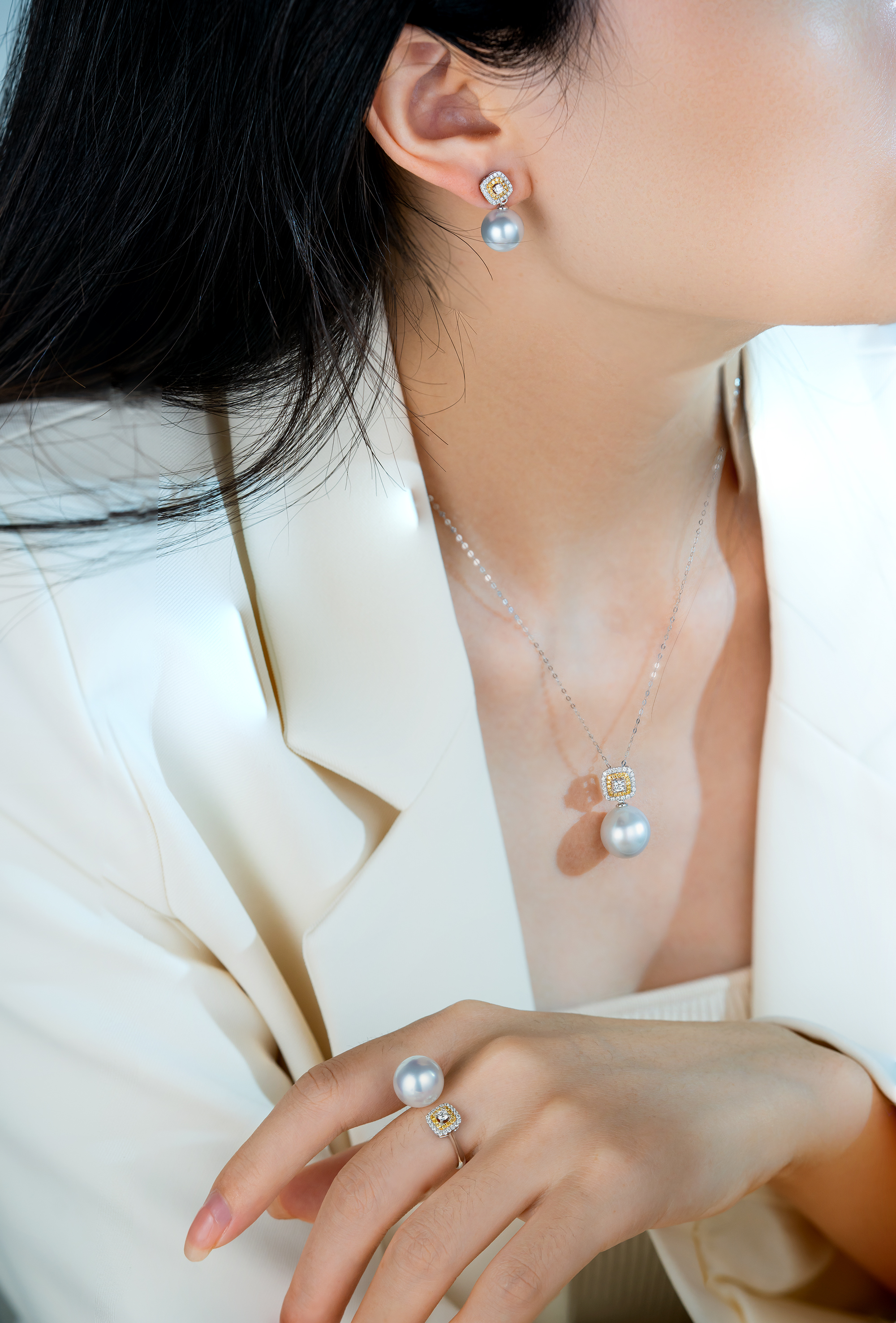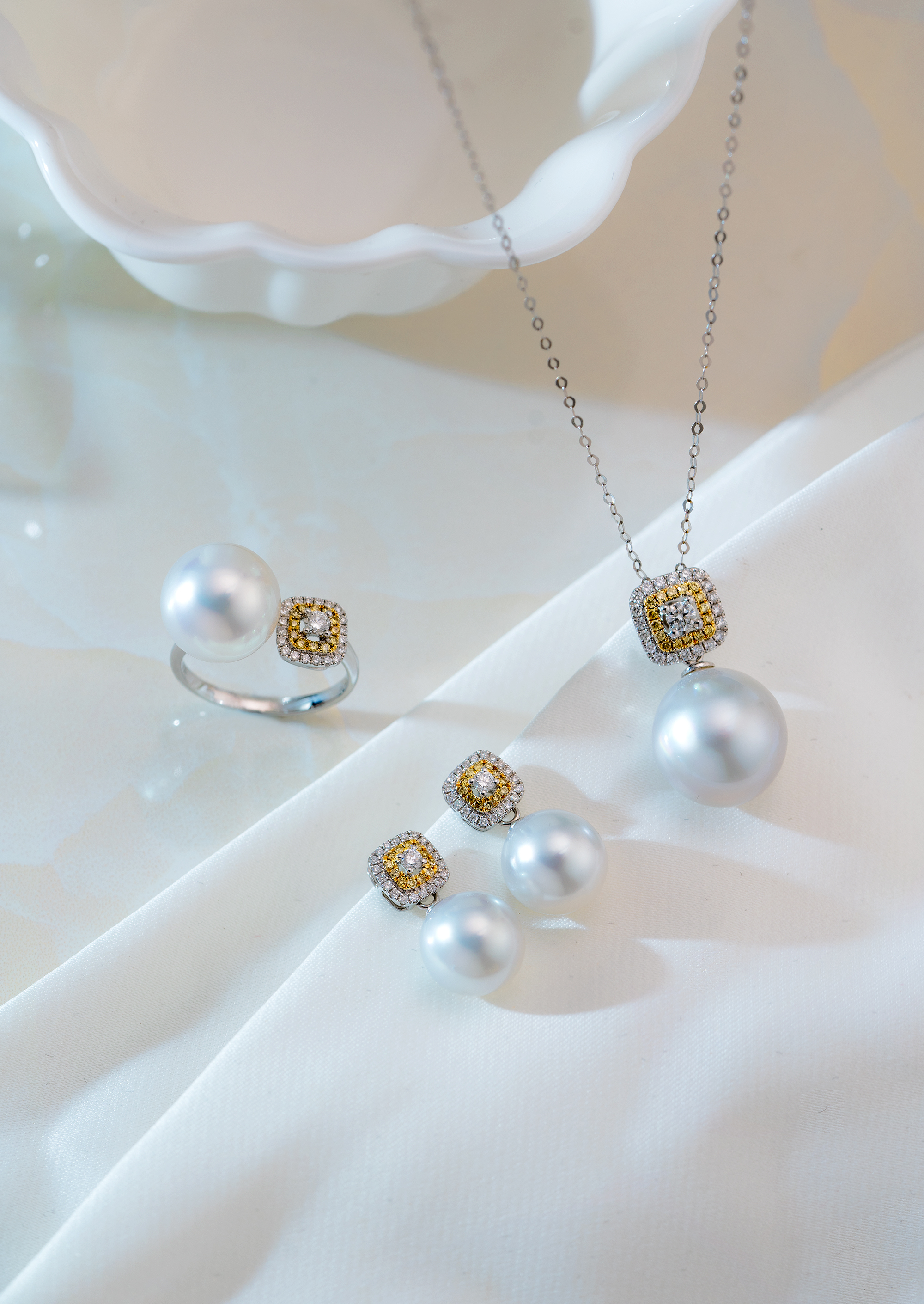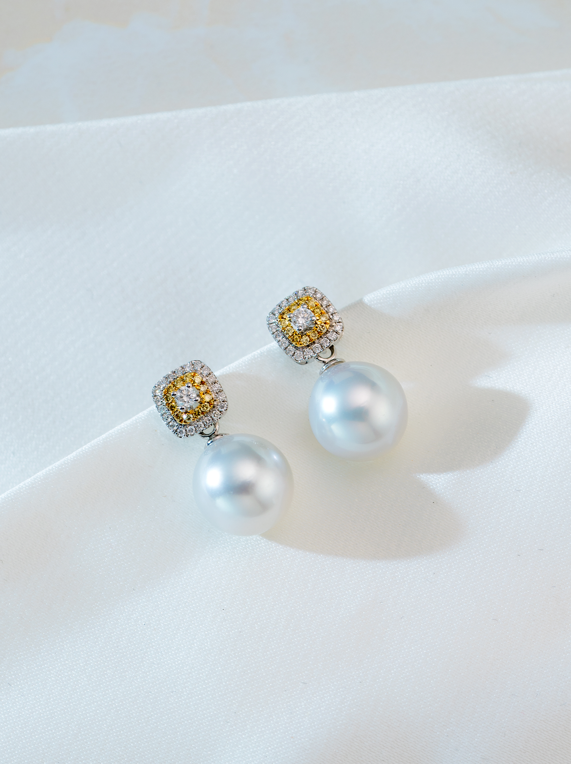 These earrings exude luxury and exquisite craftsmanship, combining southsea white pearl, diamonds, and yellow diamonds for a glamorous and stunning visual effect. They are perfect for both formal occasions and everyday wear, showcasing your impeccable taste and prestigious style.