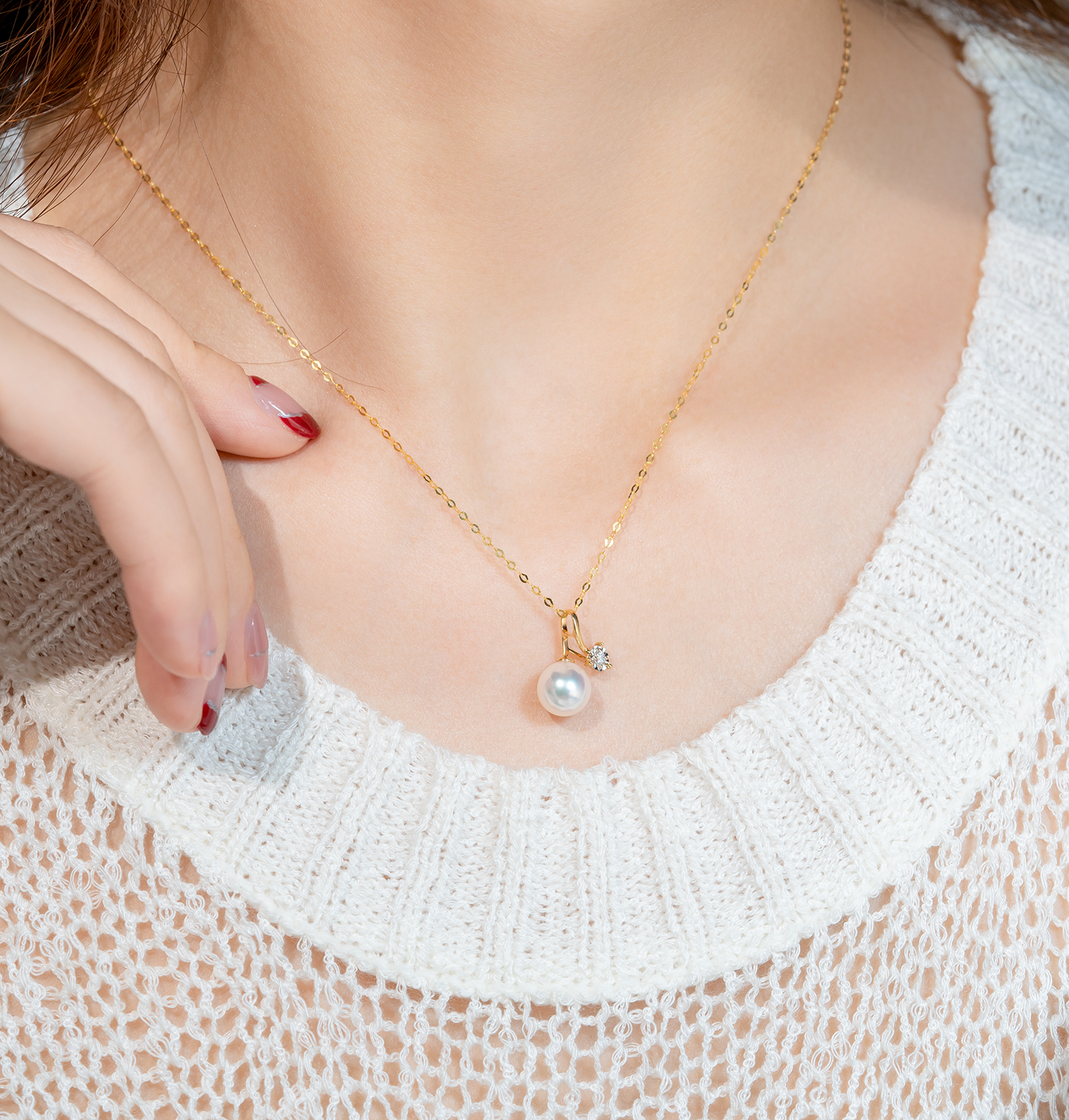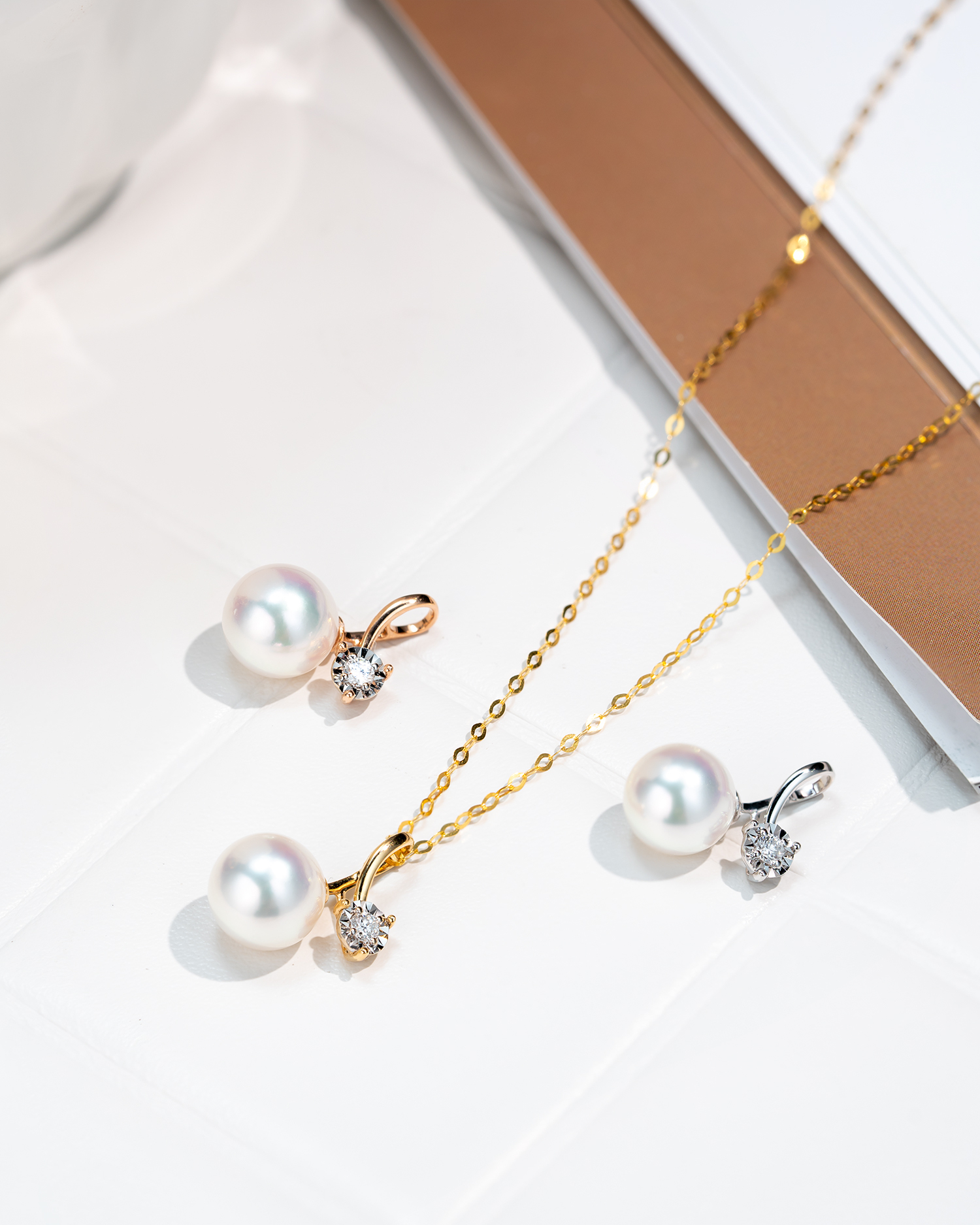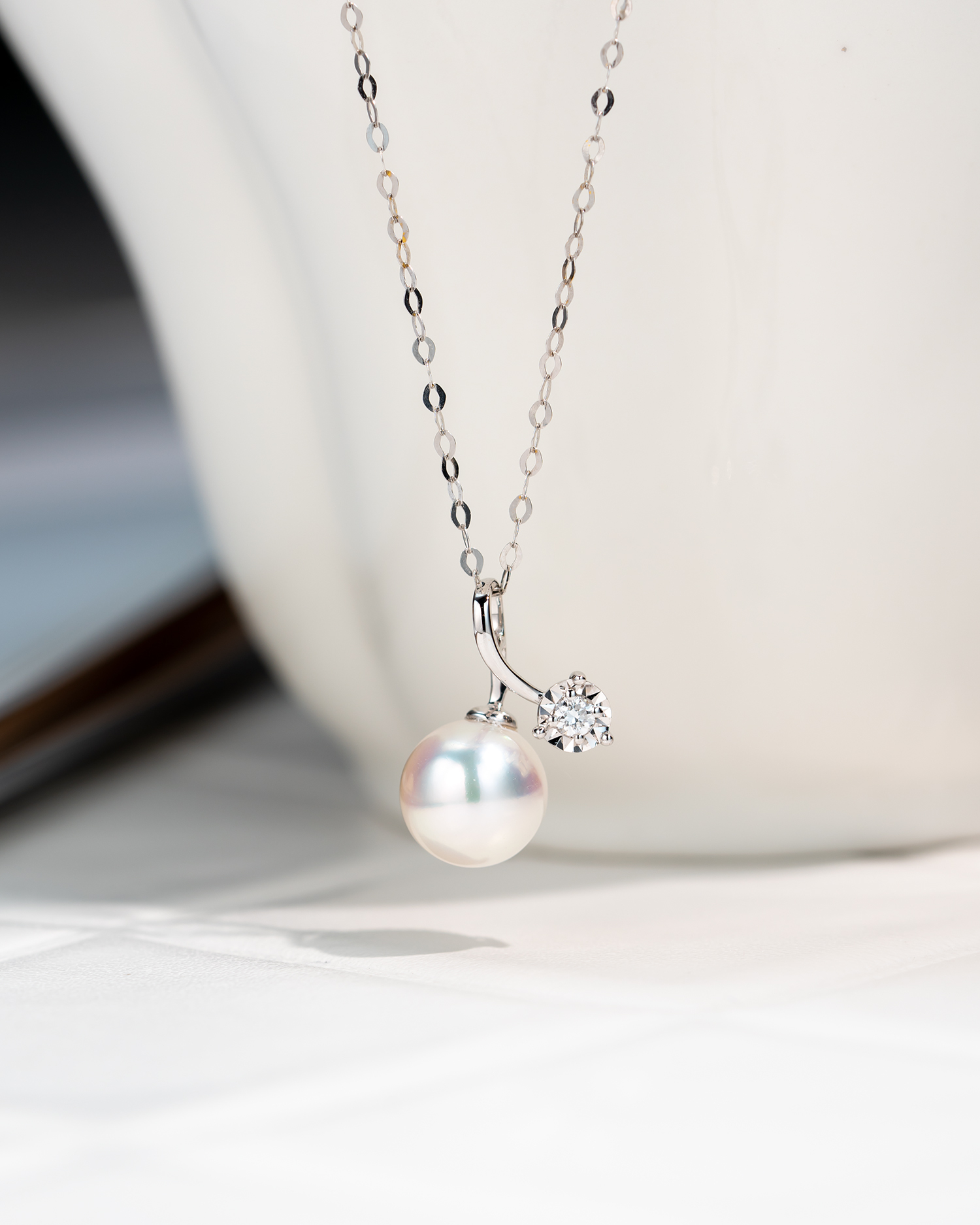 靈動的18K金線條的末端點綴著一顆閃爍無比的鑽石,兩者互相輝映,完美地勾勒出星星划過的軌跡,扣人心弦。18K線條的另一端則是光澤耀眼的Akoya珍珠,讓整體像是成就出了一個浪漫的愛情故事。