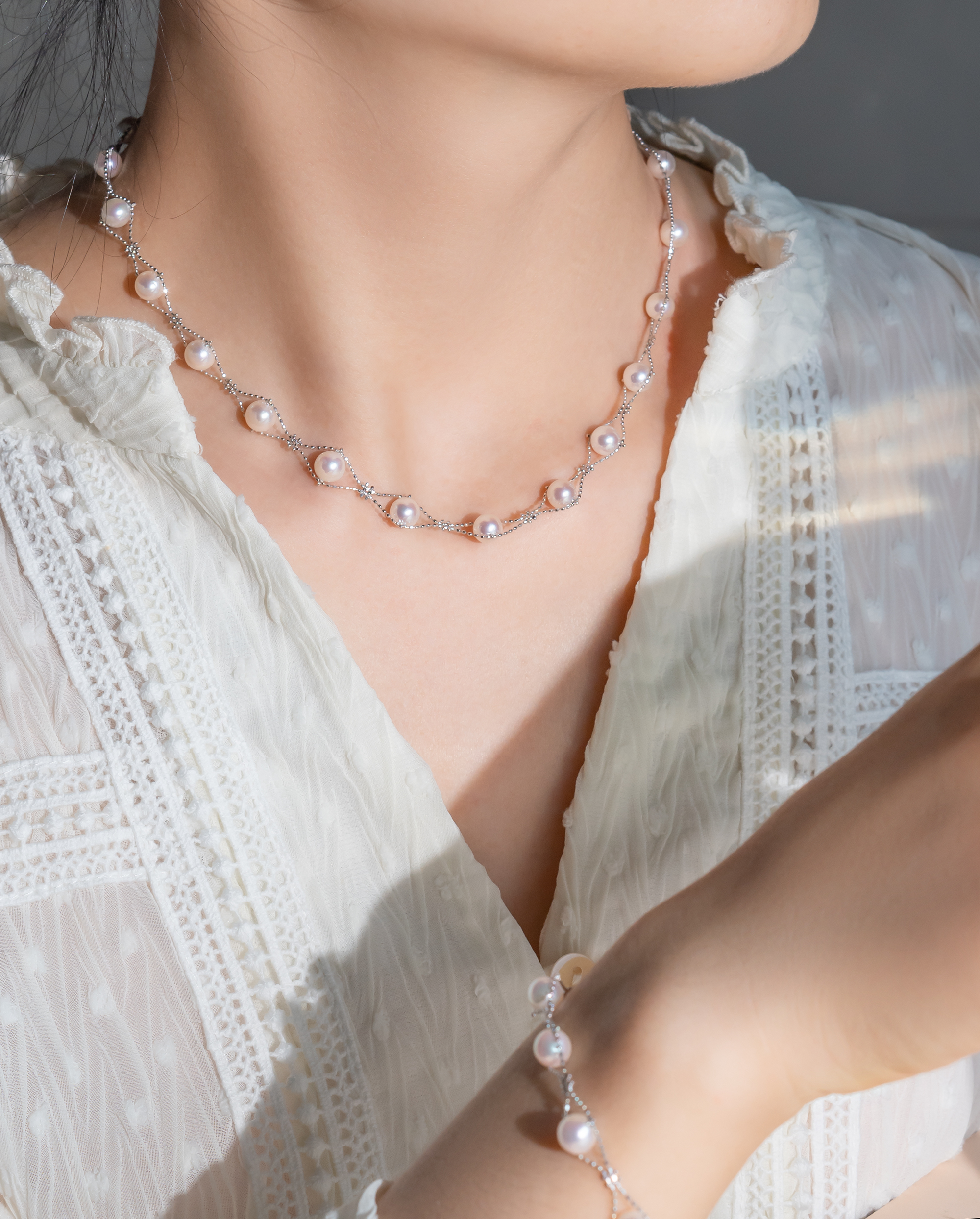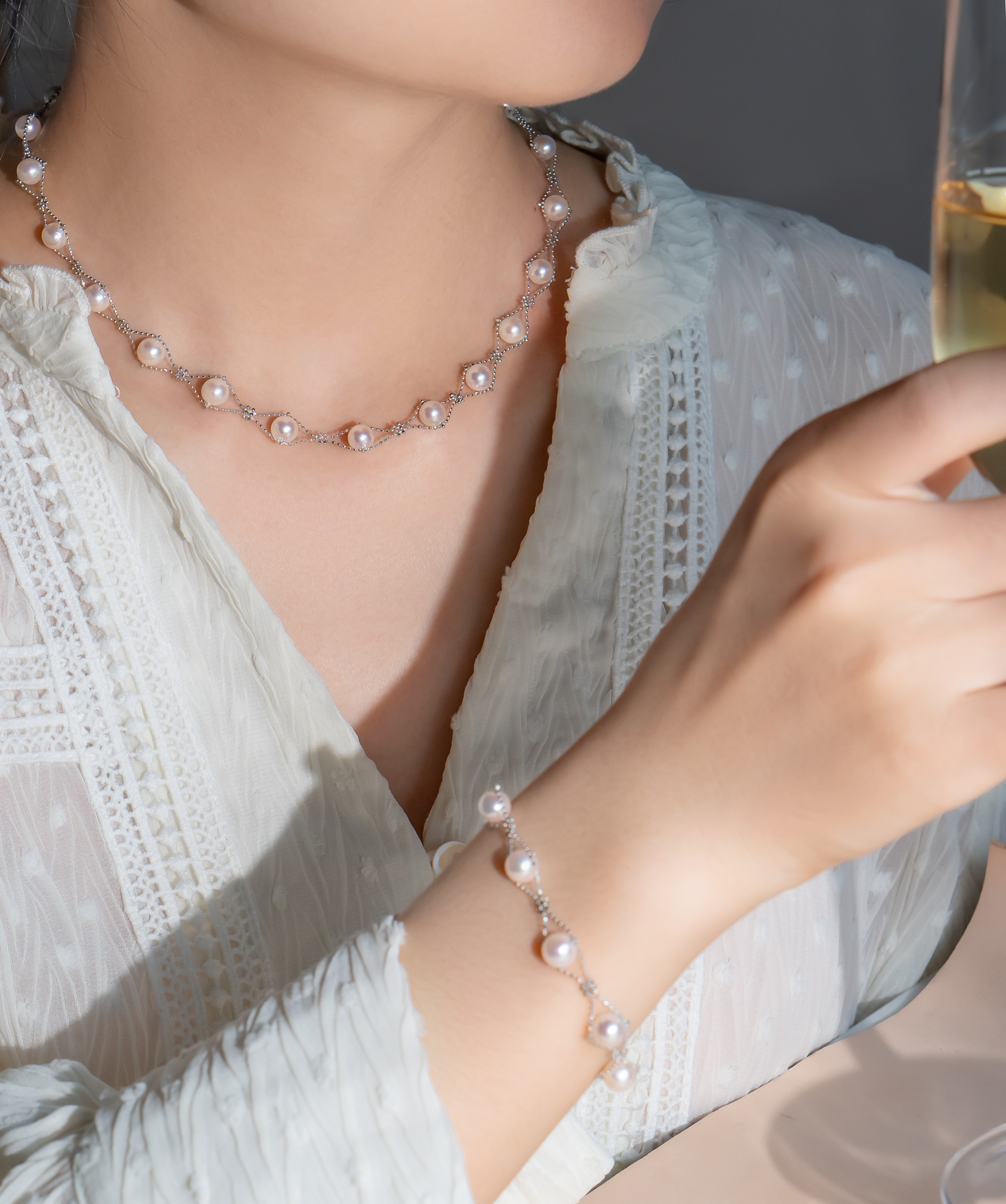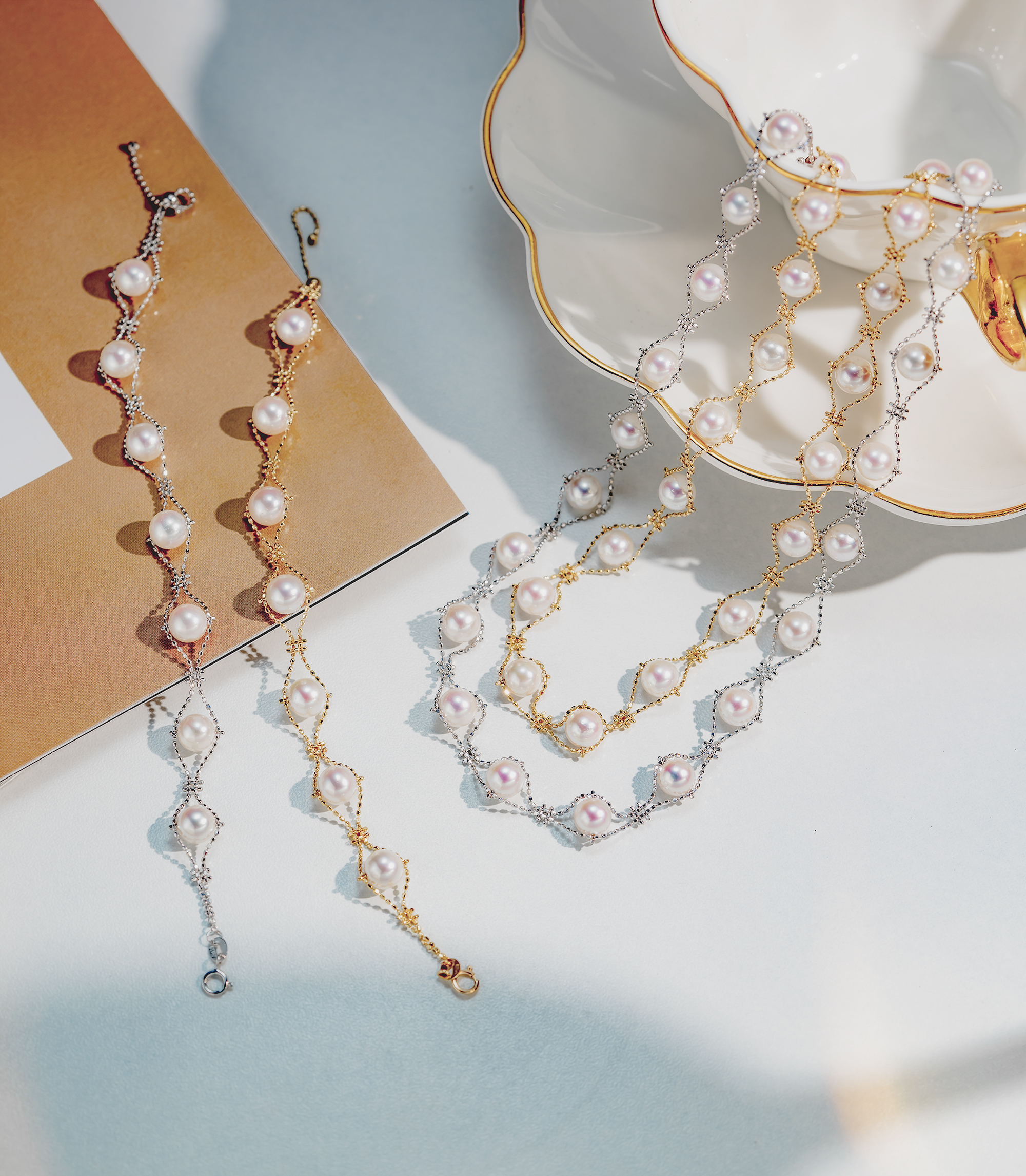 This piece offers variety to your daily outfit and designed to be worn on its own as a statement or matched with the bracelet in the collection for a more detailed look. This bracelet features 6.5 - 7mm Akoya pearls set in 18K Gold/White Gold.
