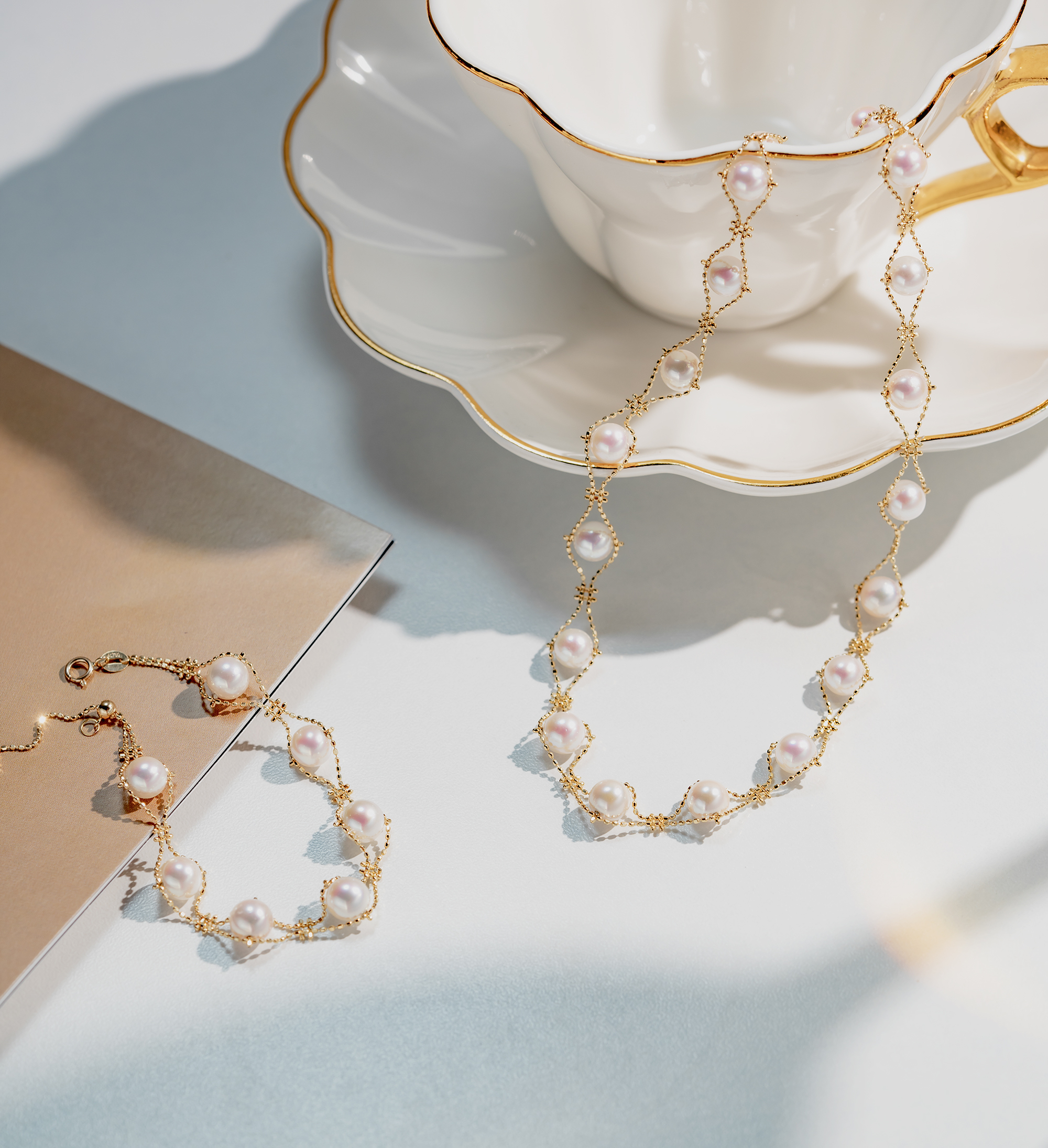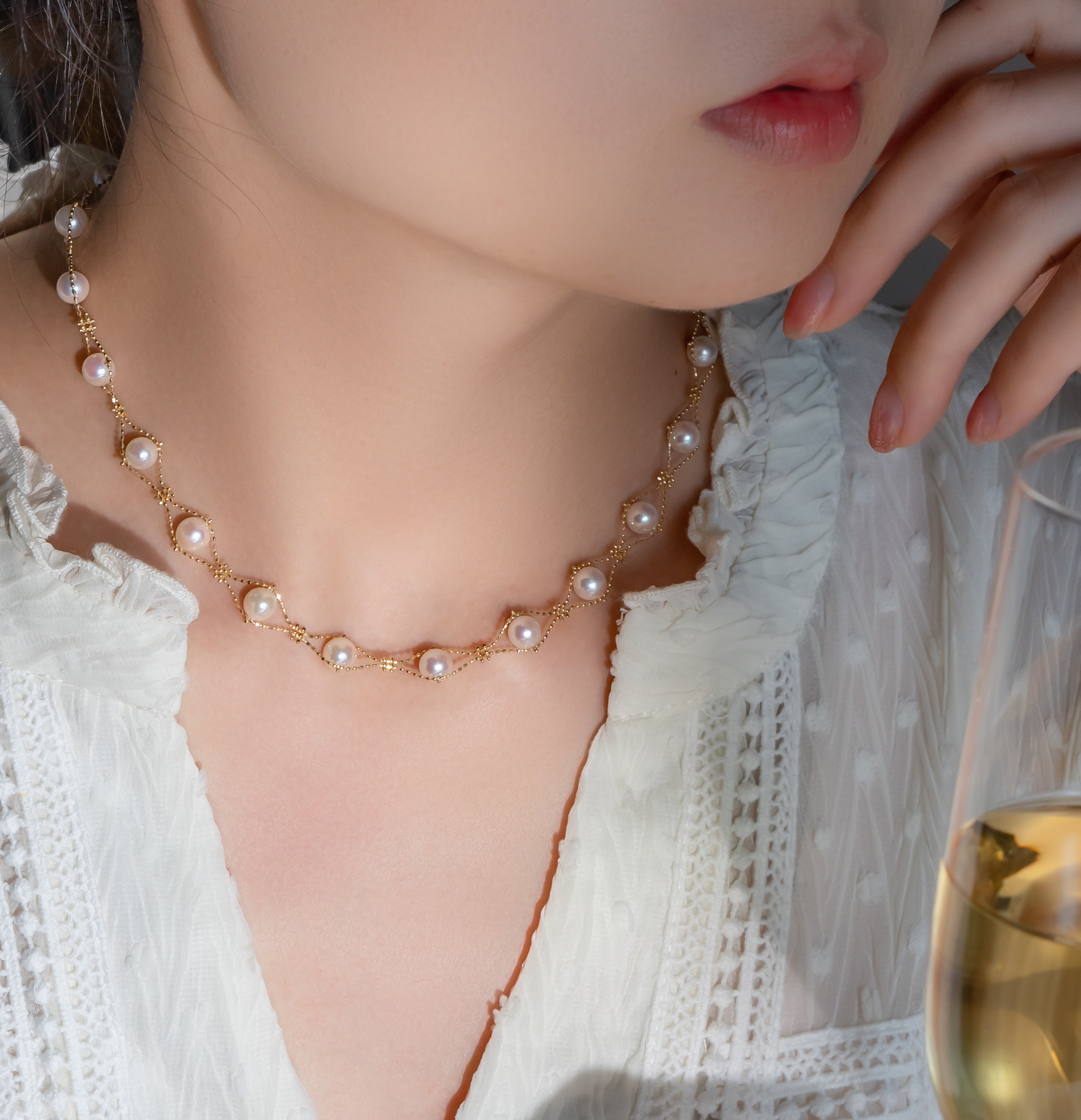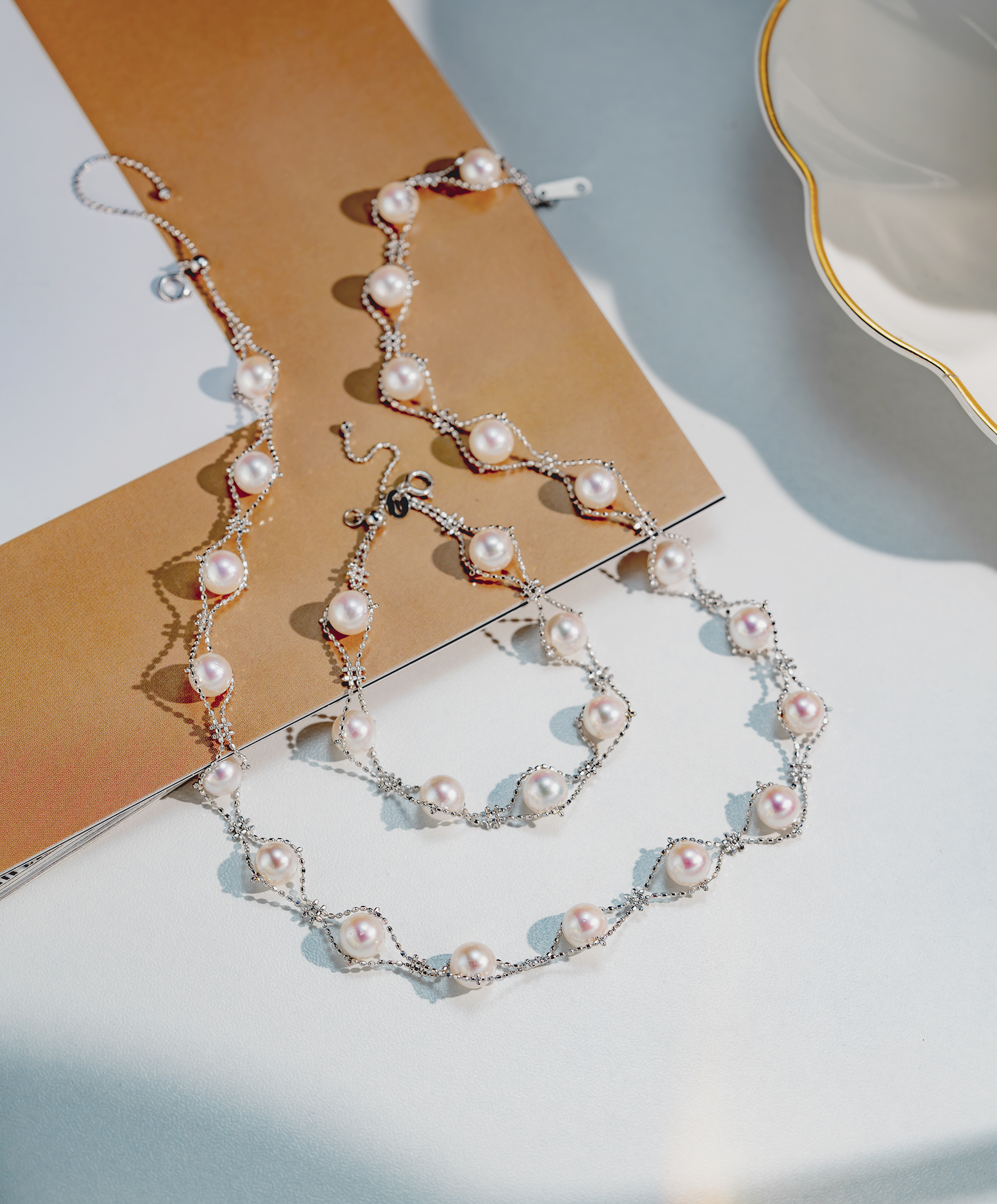 This piece offers variety to your daily outfit and designed to be worn on its own as a statement or matched with the bracelet in the collection for a more detailed look. This bracelet features 6.5 - 7mm Akoya pearls set in 18K Gold/White Gold.