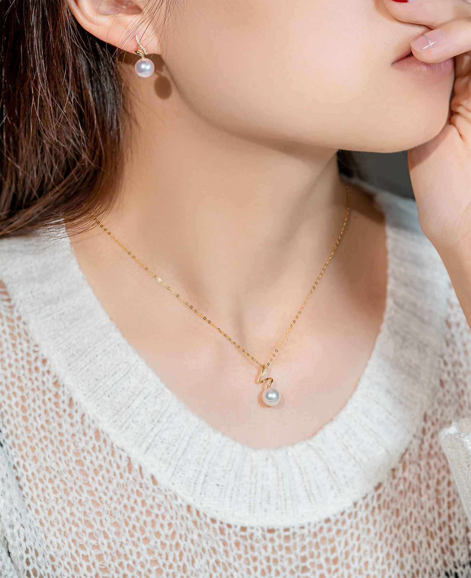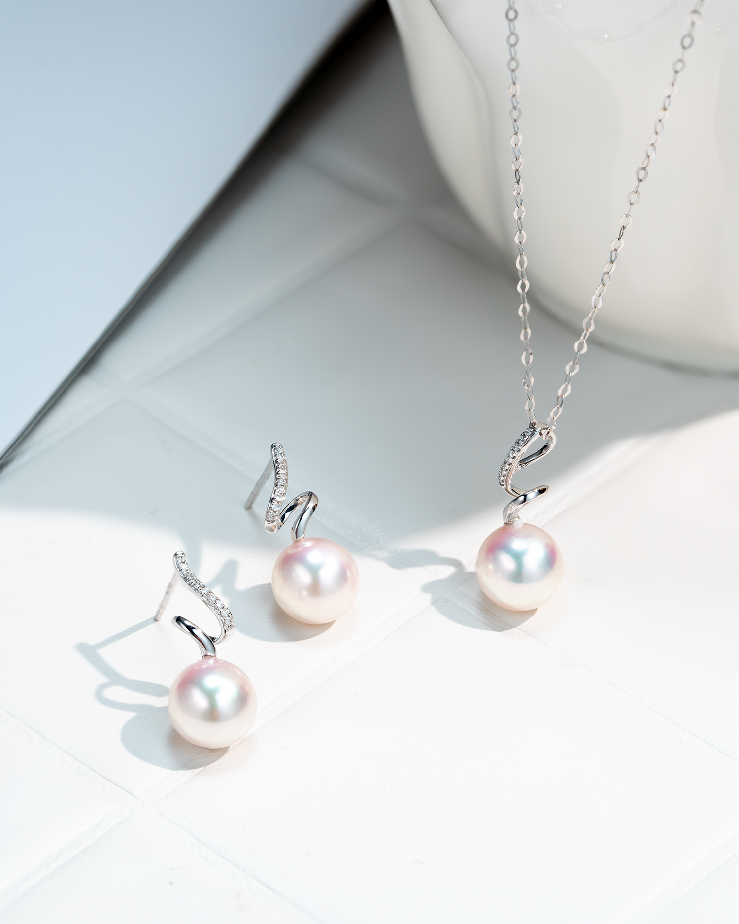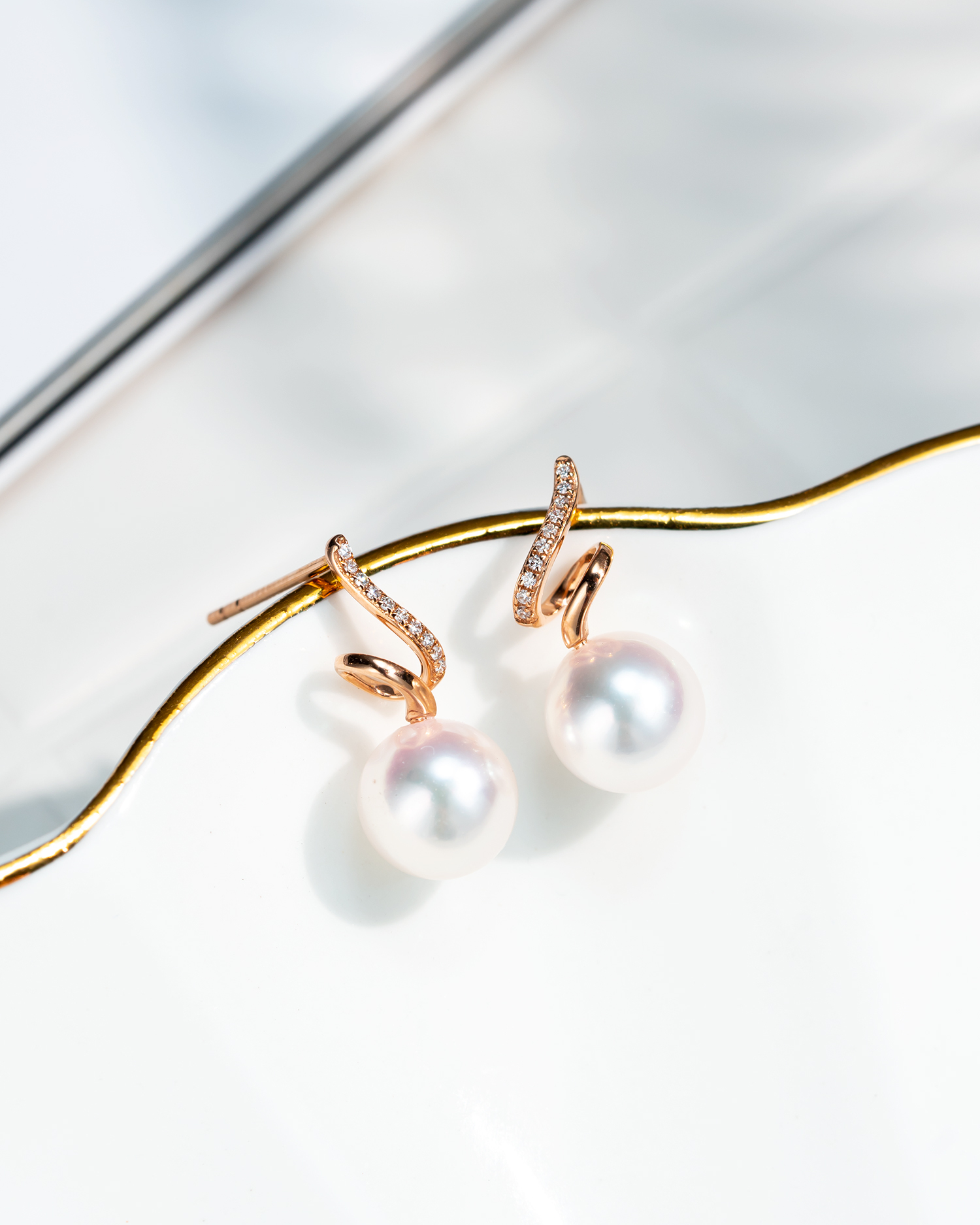 清脆簡約的18K金線條,鑲嵌著端莊大方的鑽石,配上粉光十足的Akoya珍珠,宛如在配戴者身上上演了一齣又一齣優雅的絲帶舞表演。這款設計斯文嫻雅,能輕鬆把配戴者的氣質帶出。