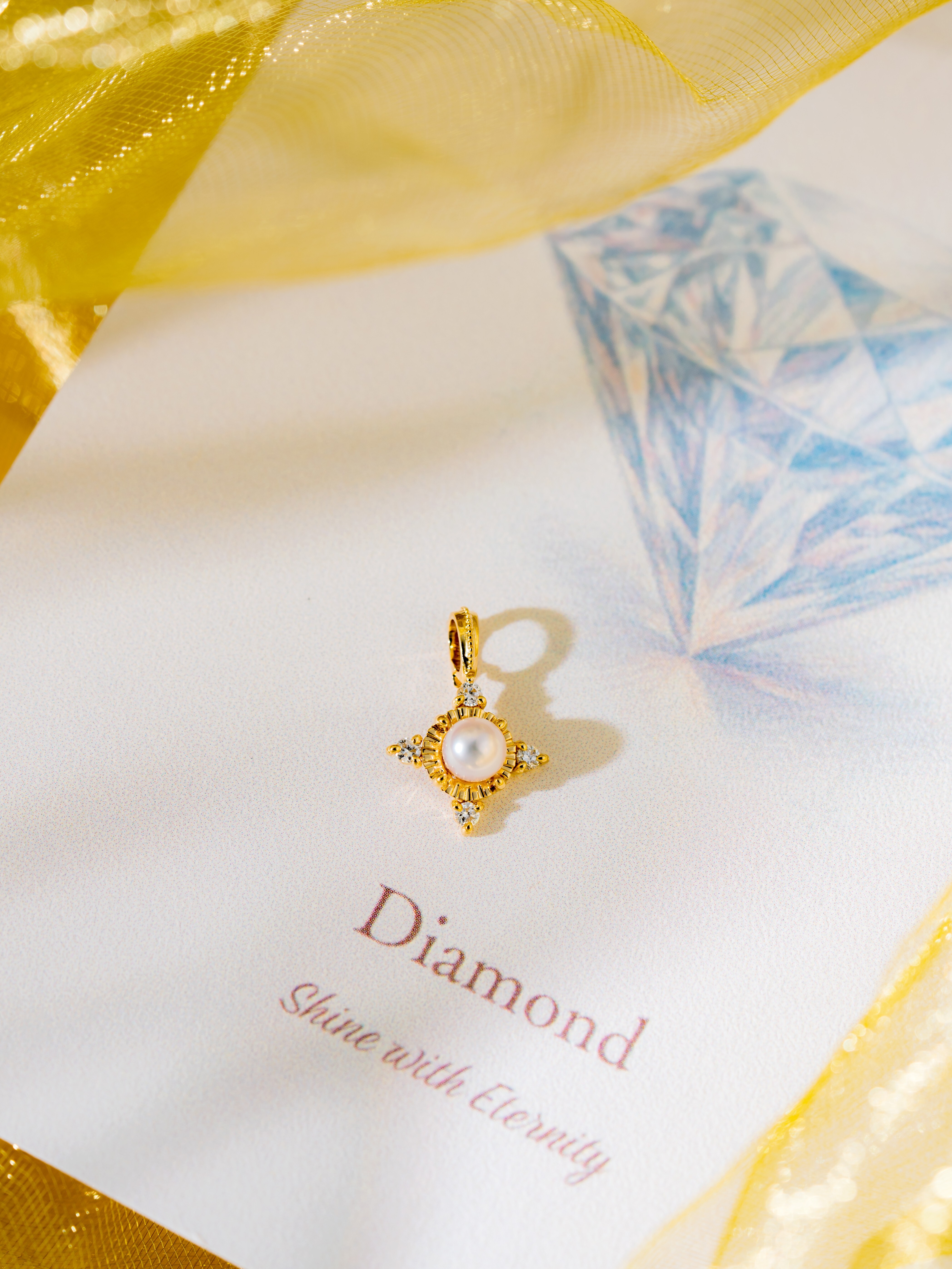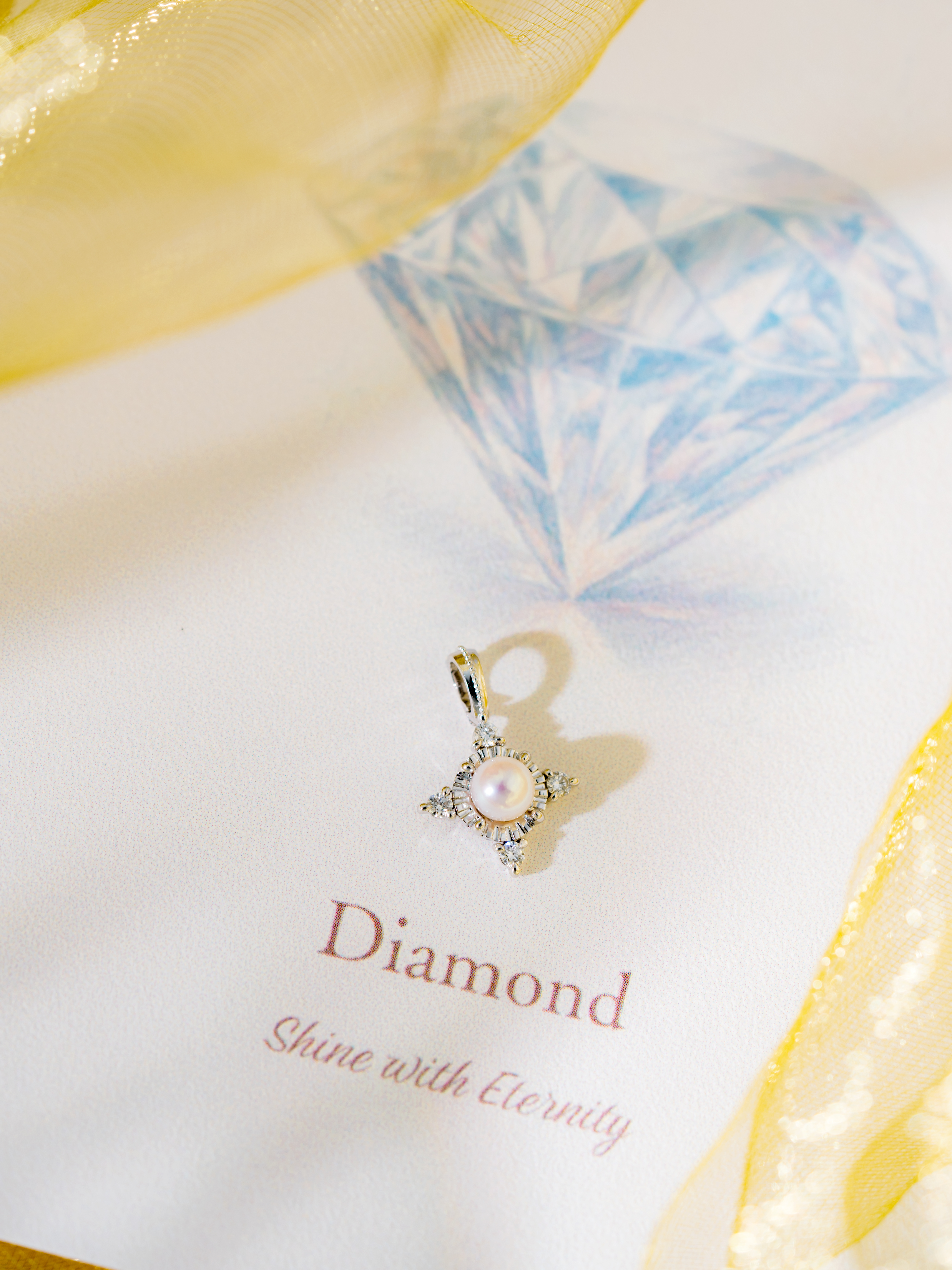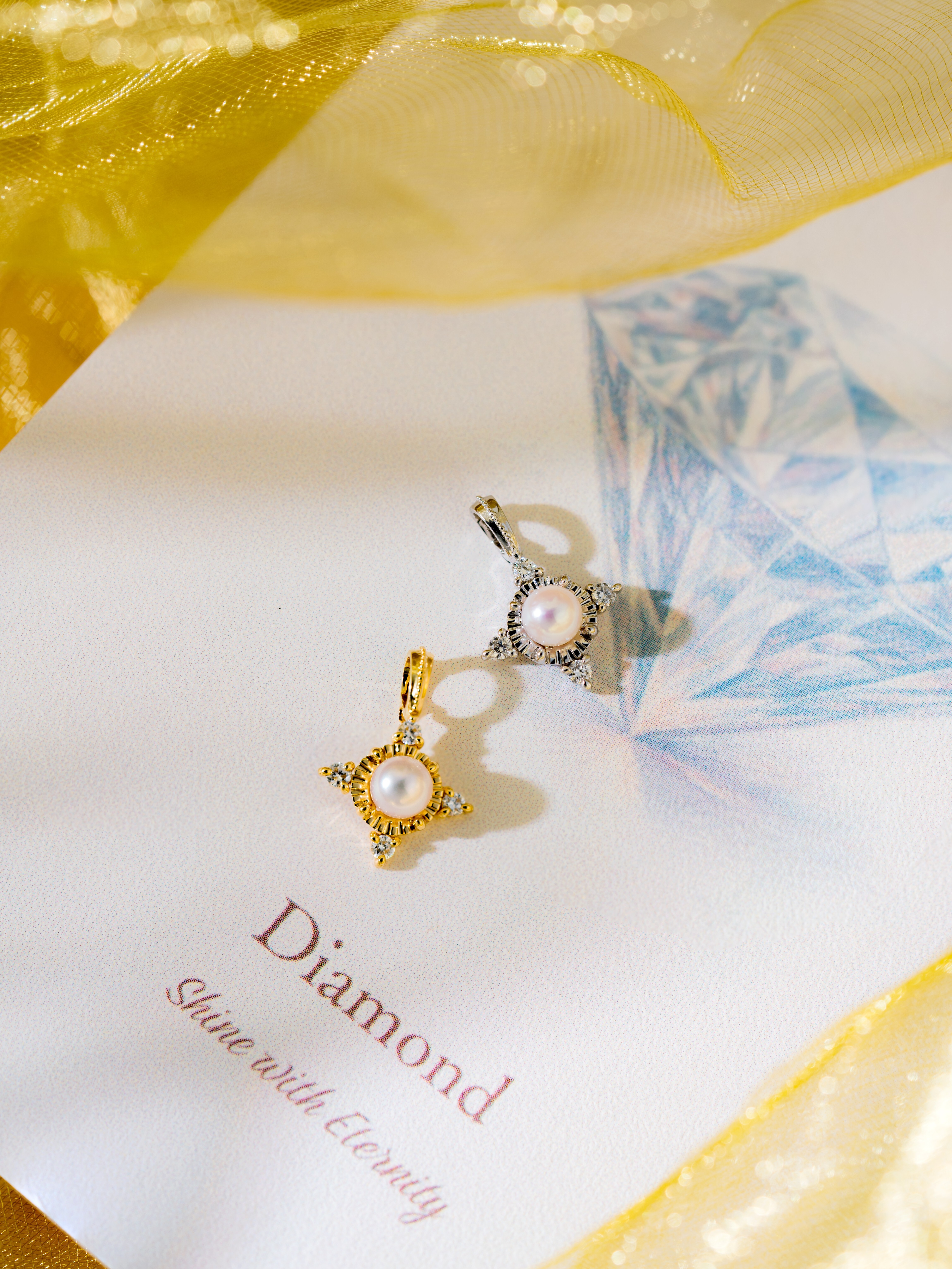 閃耀恆久的鑽石,與頂級日本Akoya珍珠的溫潤珠光完美契合,18K金的星辰輪廓,藏著專屬於你的忠誠與永恆。