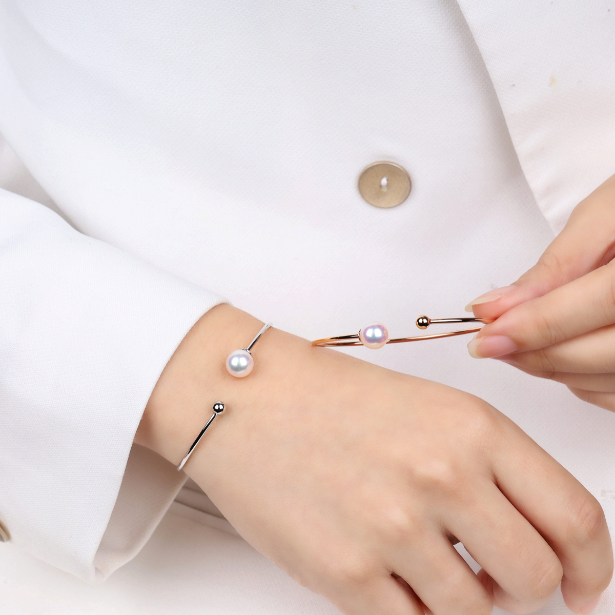 Akoya珍珠與K金小珠的簡約設計,特顯Akoya的靈動閃耀。