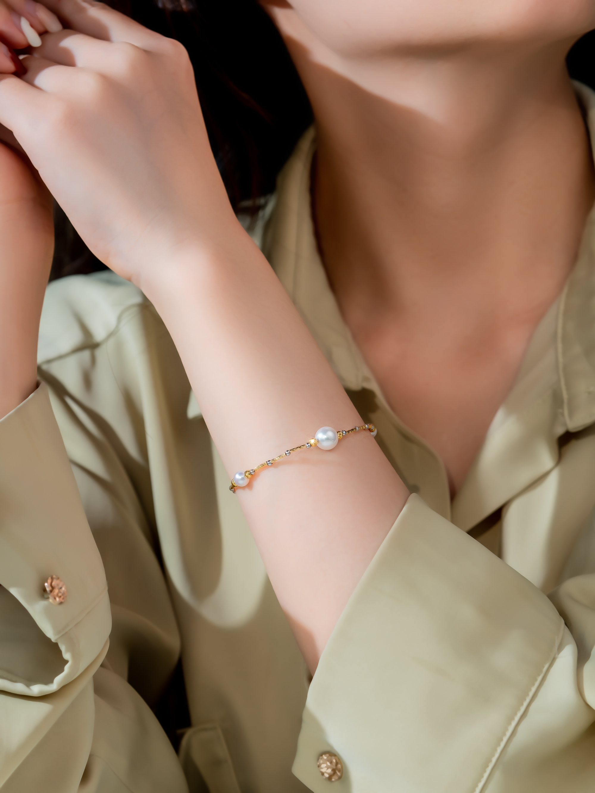 Inspired by the sophisticated Japanese handicraft, crafted into a cuff bracelet with delicate pattern in 18K memory wire. Matching with the beautiful Akoya pearl with "Sakura Pink" lustre to emphasize its elegance and flair.