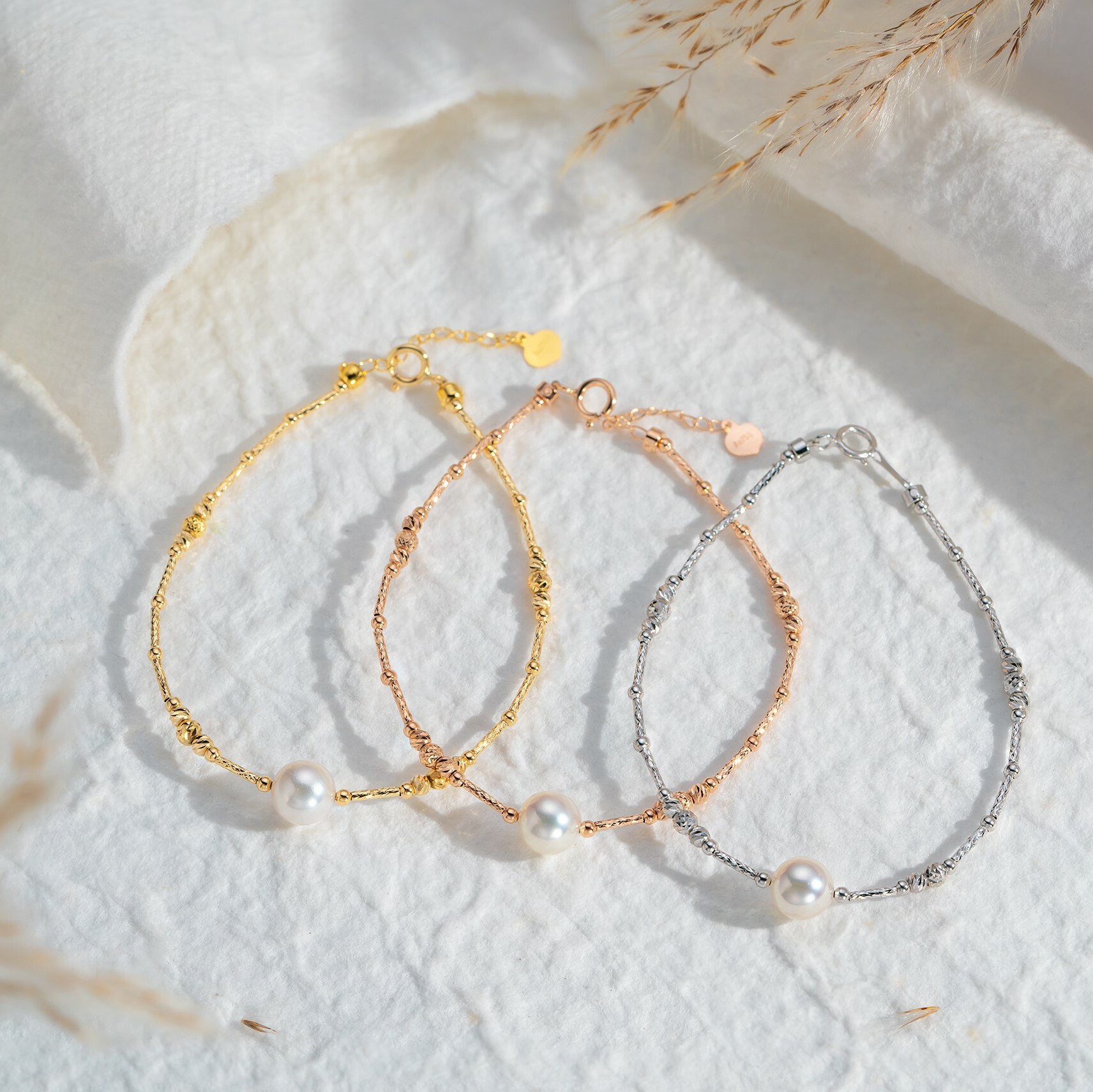 近年極受日韓女生歡迎的款式,意大利工藝的獨有技術打造的18K金手圈,具有豐富彈性,圈身輕巧,上手零負擔感。圓澤頂級珠光的 Akoya 日本珍珠,旁邊配有兩顆18K金調節珠子,固定珍珠位置,設計增加了一份簡約唯美,不論單戴或疊戴也輕鬆配襯。