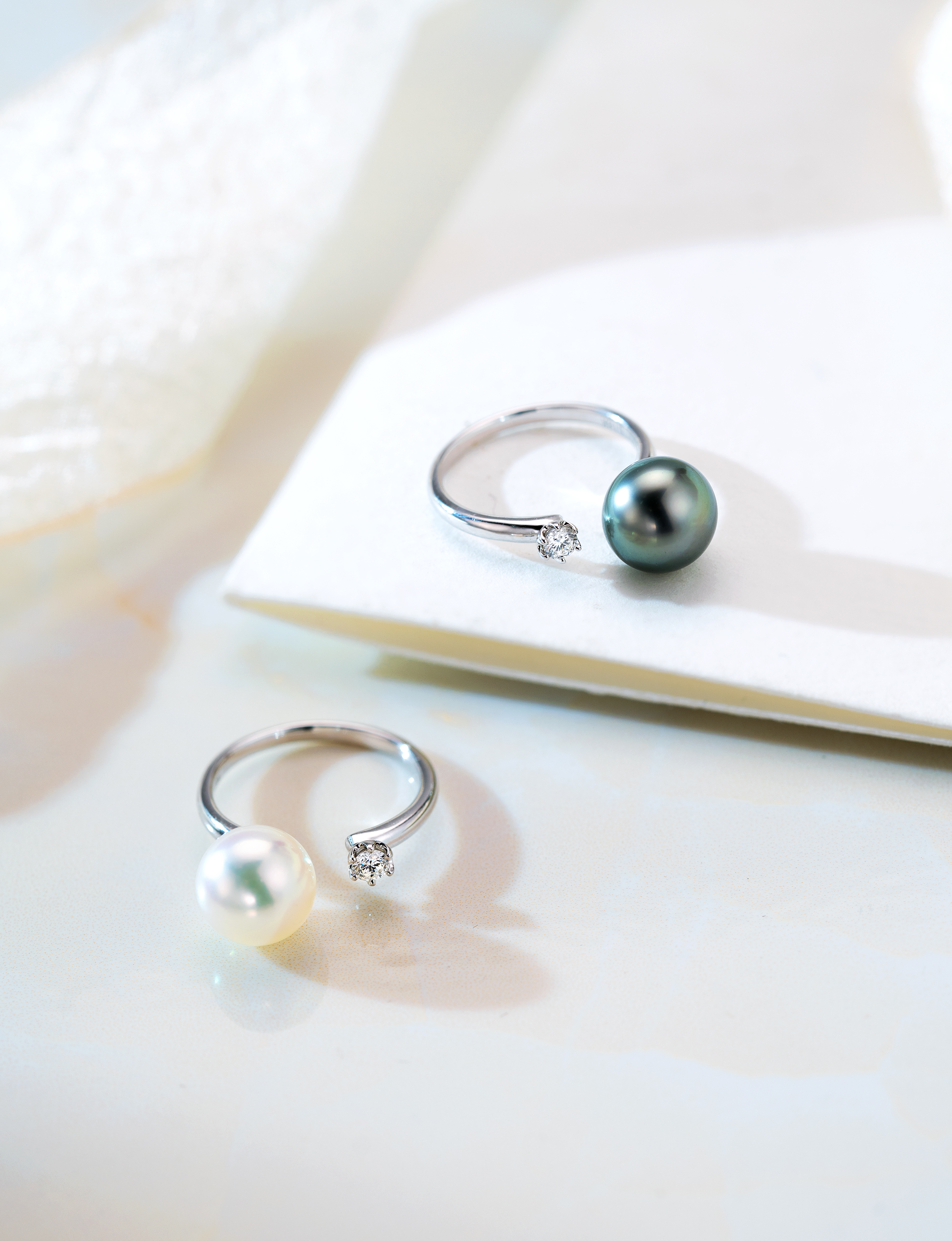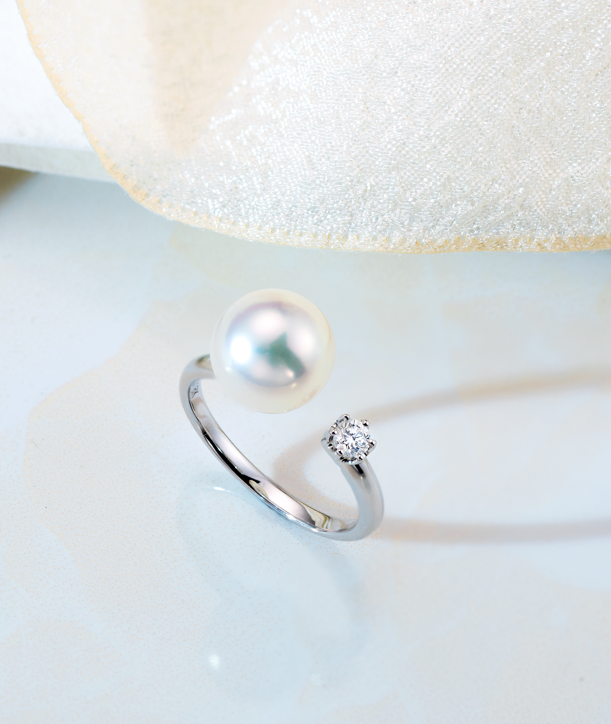 Adorned with a single diamond, it beautifully complements the gentle glow of the Akoya pearl, combining delicate radiance and dazzling brilliance.