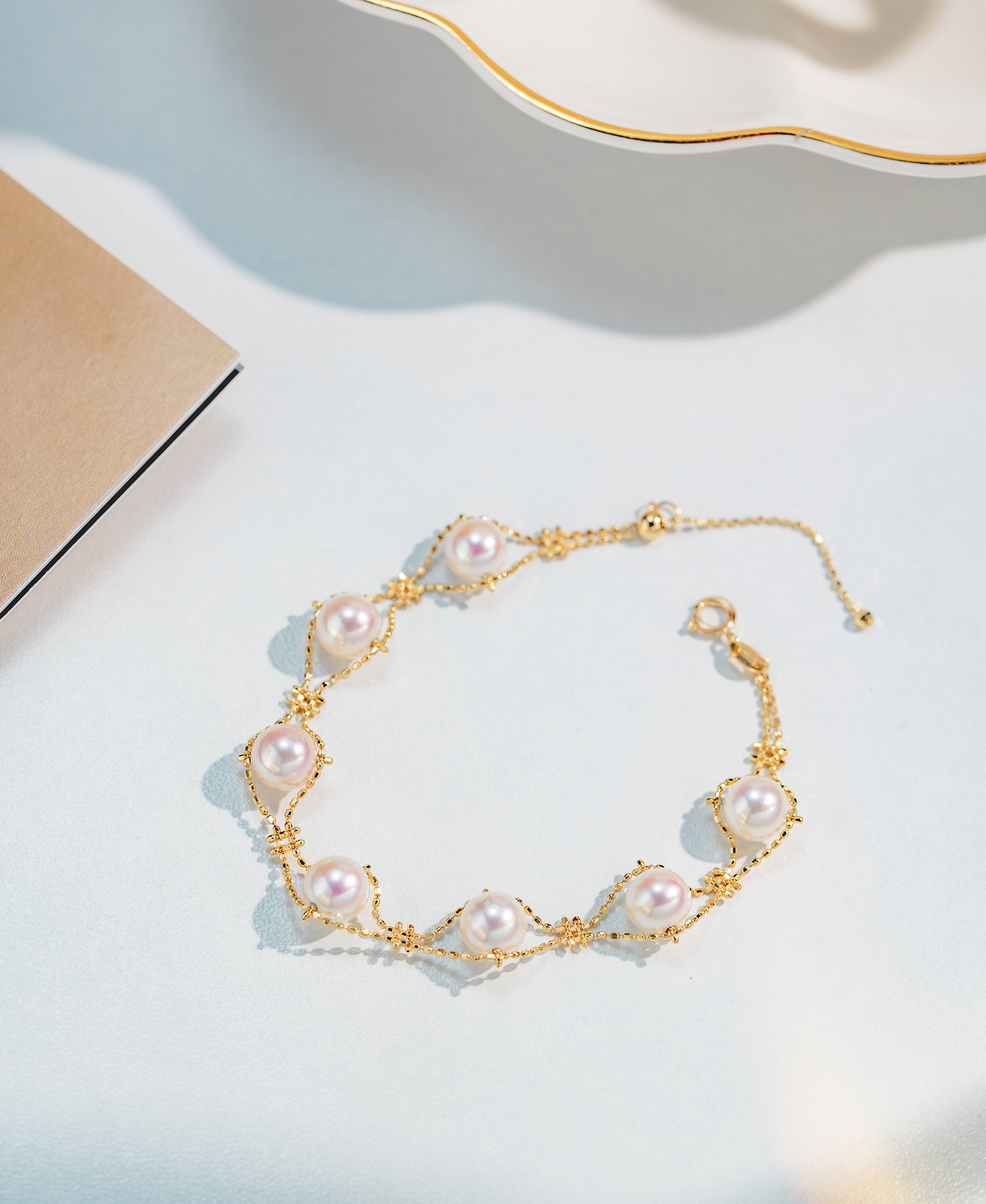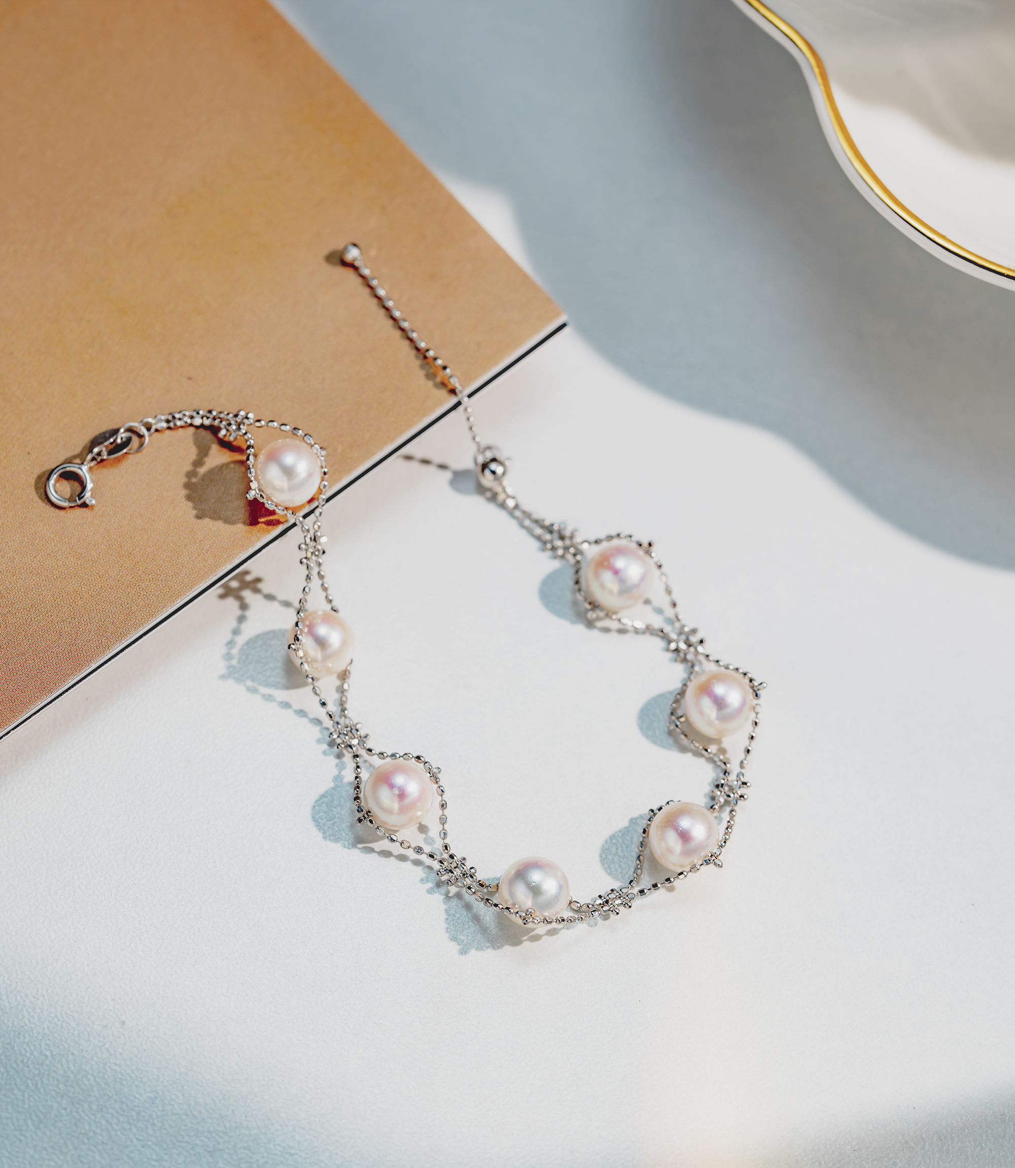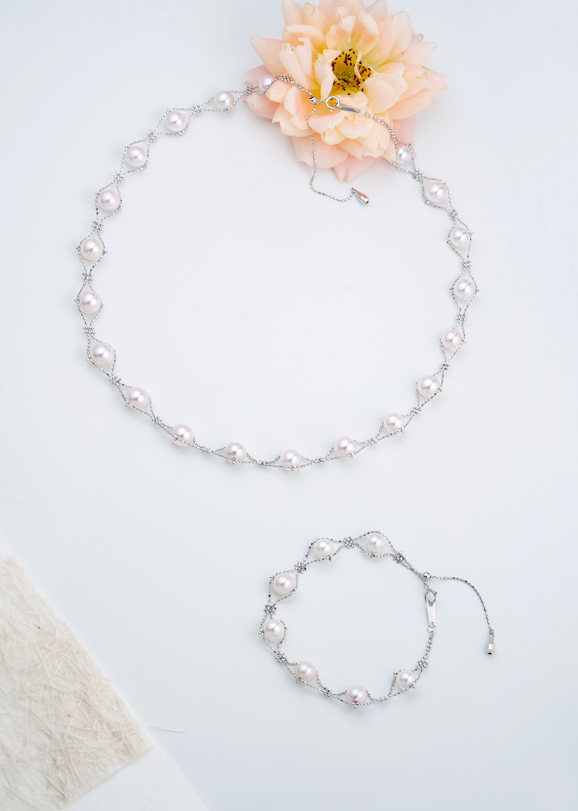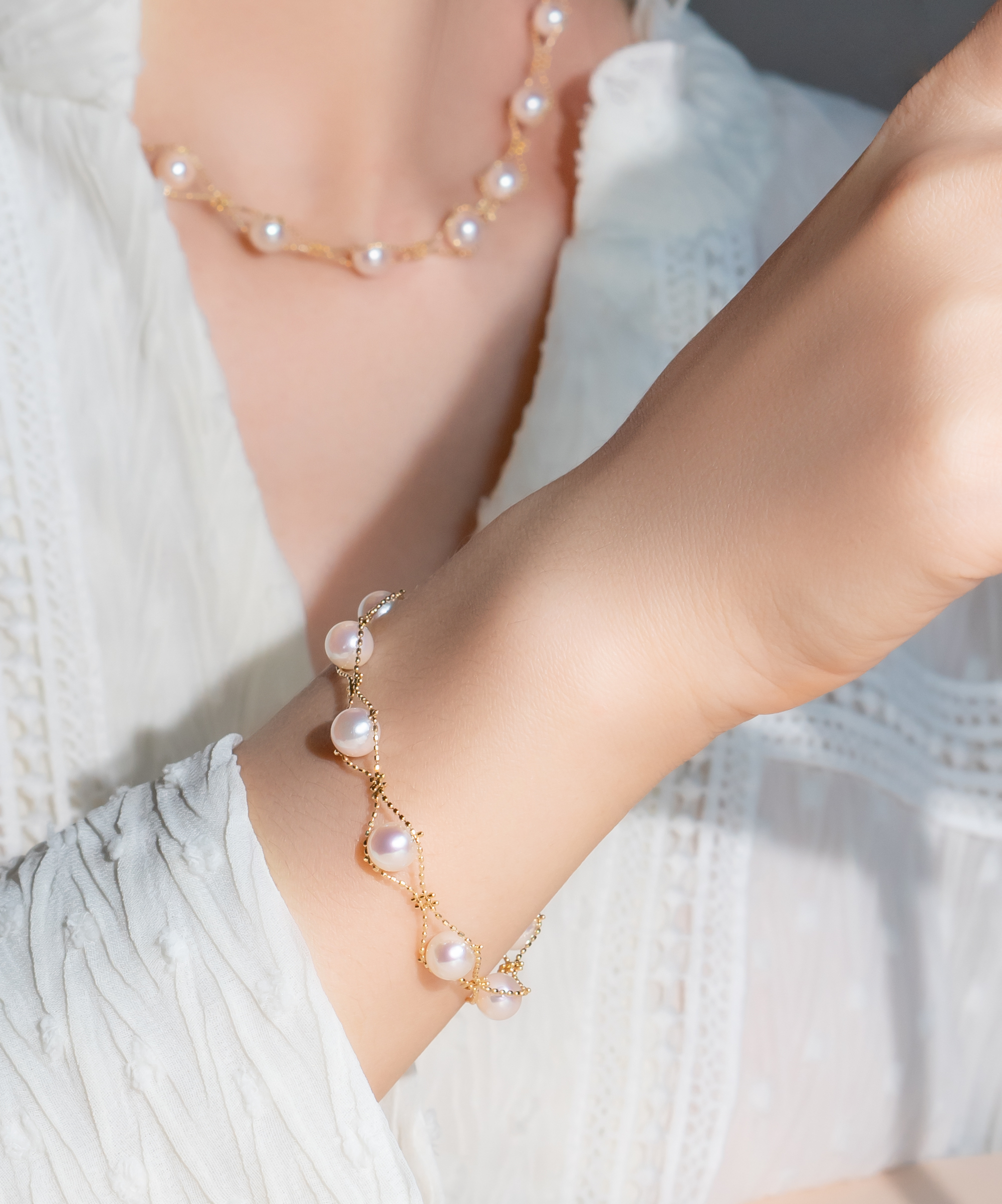 都說珍珠就是人間的白月光,氣質百分百,天然海水Akoya珍珠晶瑩透亮。 18k白金圍繞每粒珍珠,環環相扣,串聯起剛與柔的兩種個性,堅韌篤定,優雅從容。 18k黃金讓項鍊成色亮麗,每個角度都擁有悅目流光,光芒隨身體動態起伏流動。同款項鍊,雙色可選,整套搭配溫潤、大氣。