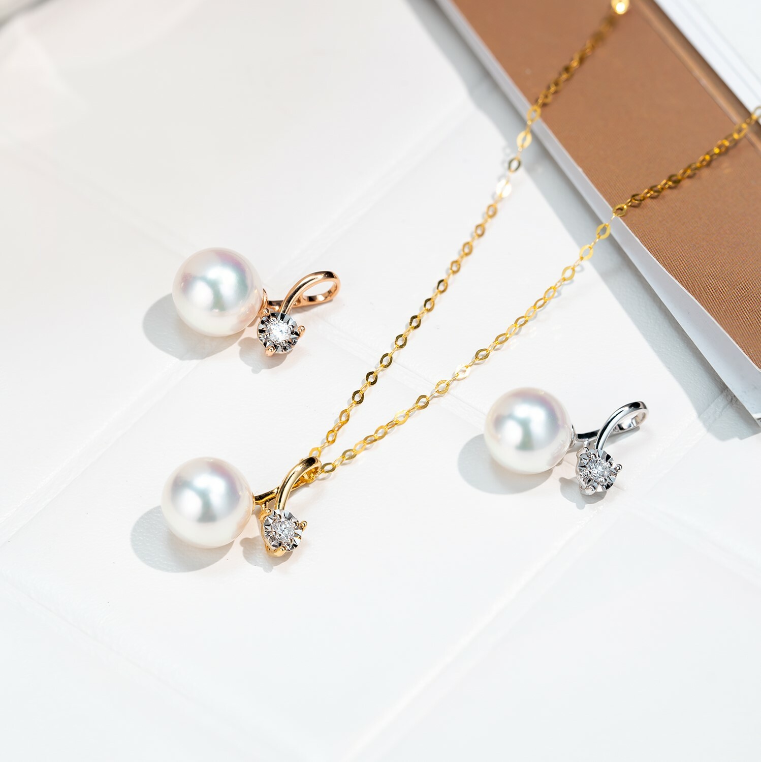 靈動的18K金線條的末端點綴著一顆閃爍無比的鑽石,兩者互相輝映,完美地勾勒出星星划過的軌跡,扣人心弦。18K線條的另一端則是光澤耀眼的Akoya珍珠,讓整體像是成就出了一個浪漫的愛情故事。