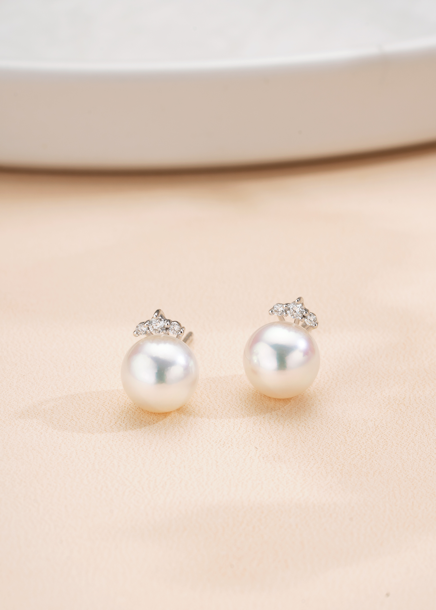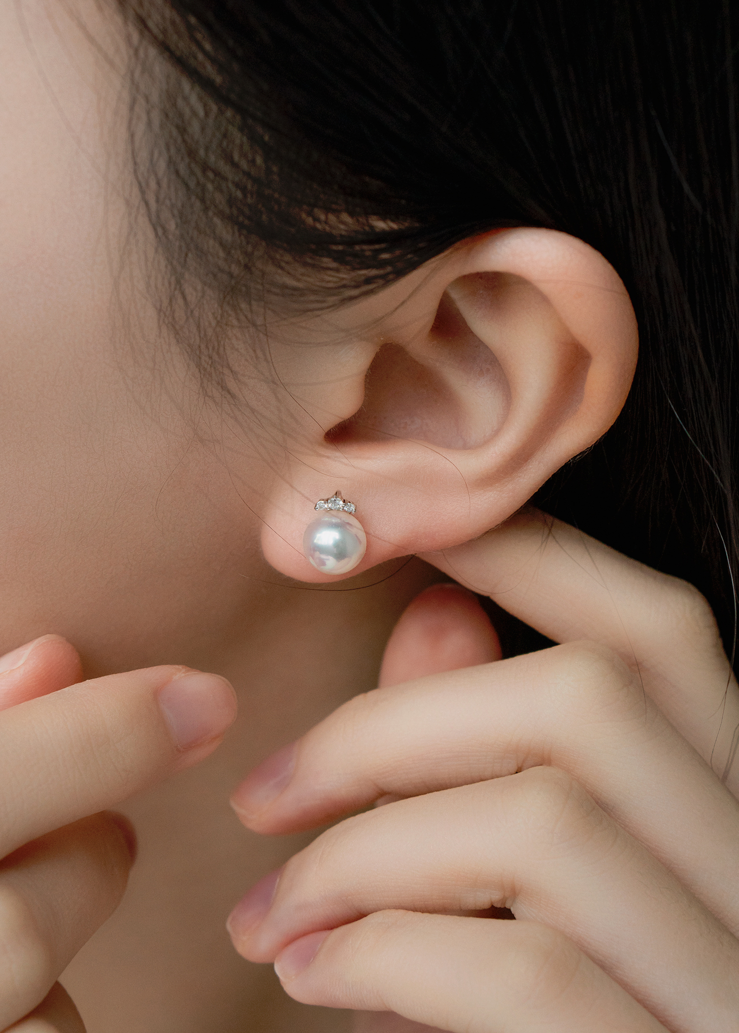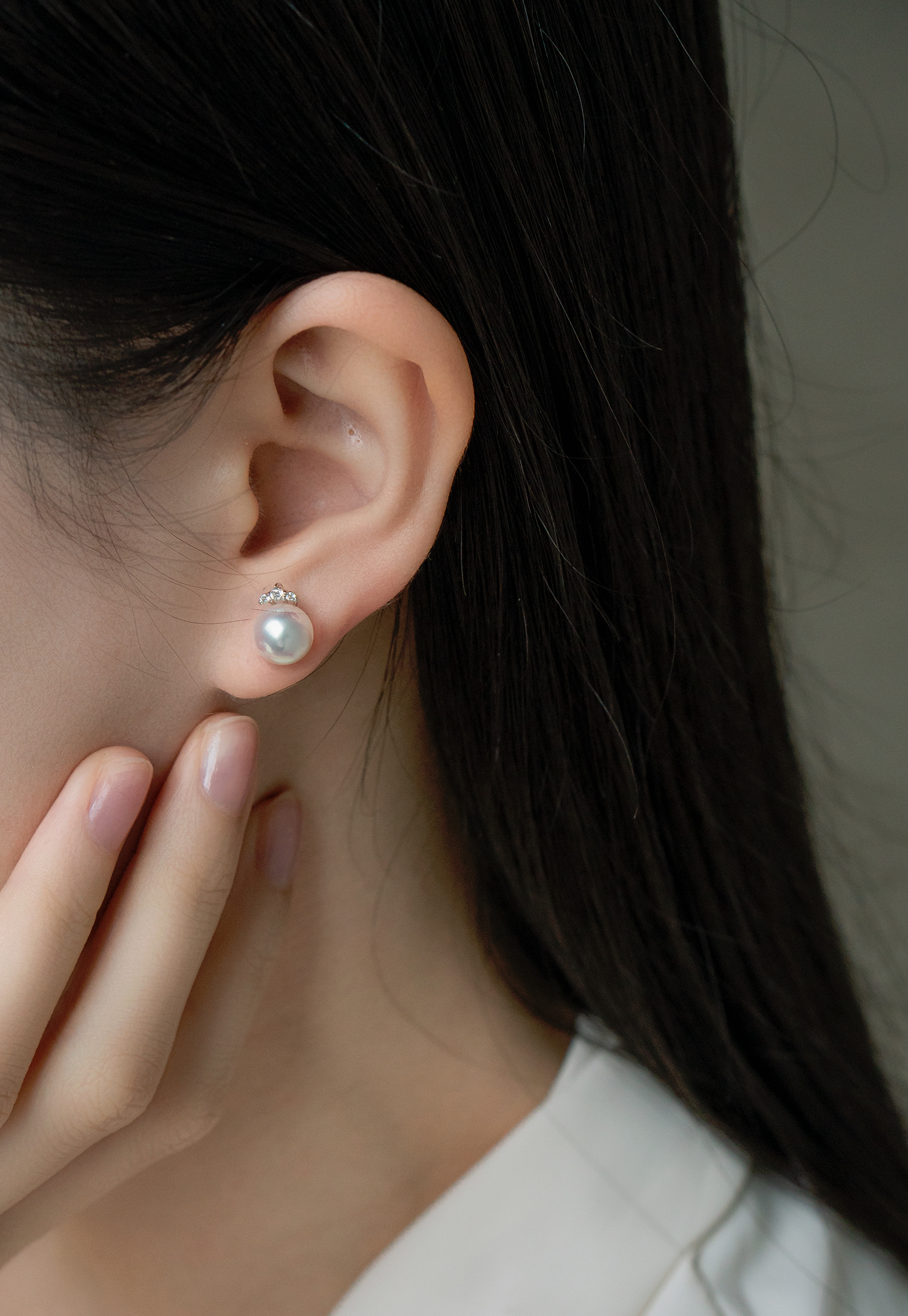 一次過滿足2個願望的簡約清新款式,溫婉的Akoya珍珠光澤,有如絲質一般的幼滑而通透, 令人難以抗拒,加上3顆圓形鑽石的相輔相成,兩樣最原生的大自然瑰寶不需要添加額外修飾,自然流露的精細又耐看,造就一趟珍珠與鑽石最美妙的相遇,使得配戴者散發靈動氣質之美。