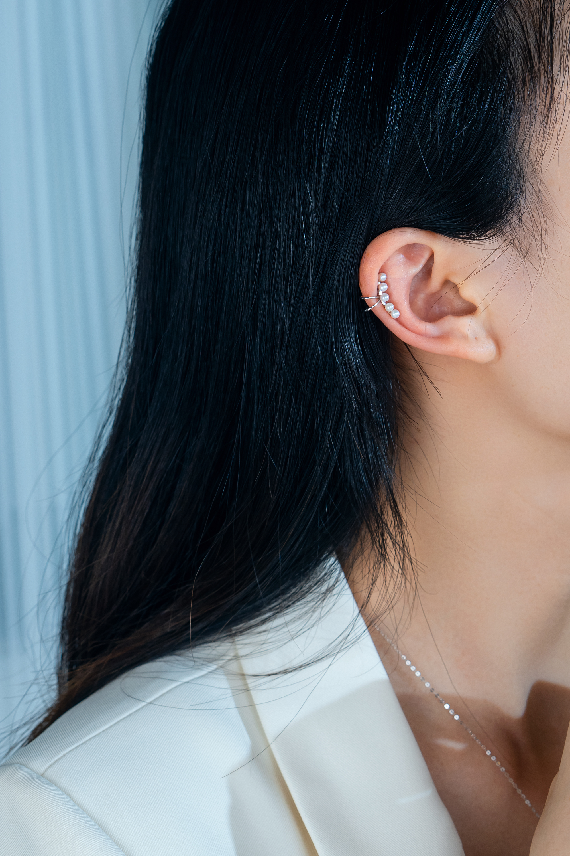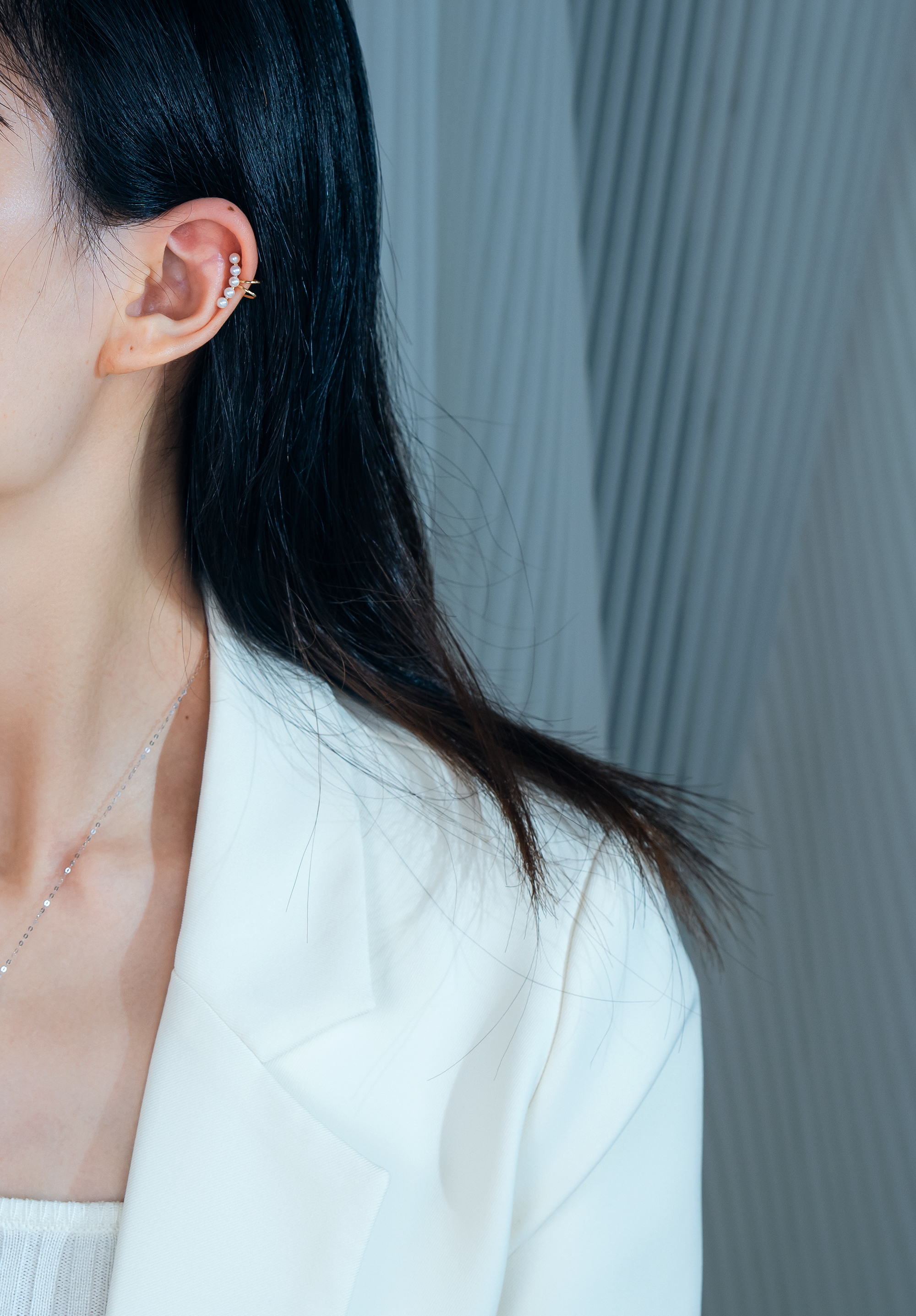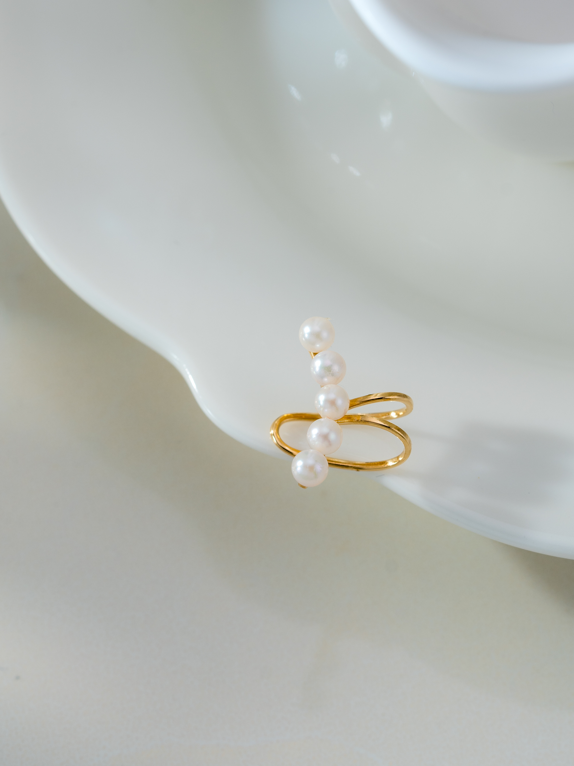 These stunning cuff earrings combine convenience and comfort, showcasing a brilliant arrangement of five sparkling Baby Akoya pearls. They add an exquisite touch of elegance to your style, effortlessly capturing attention.