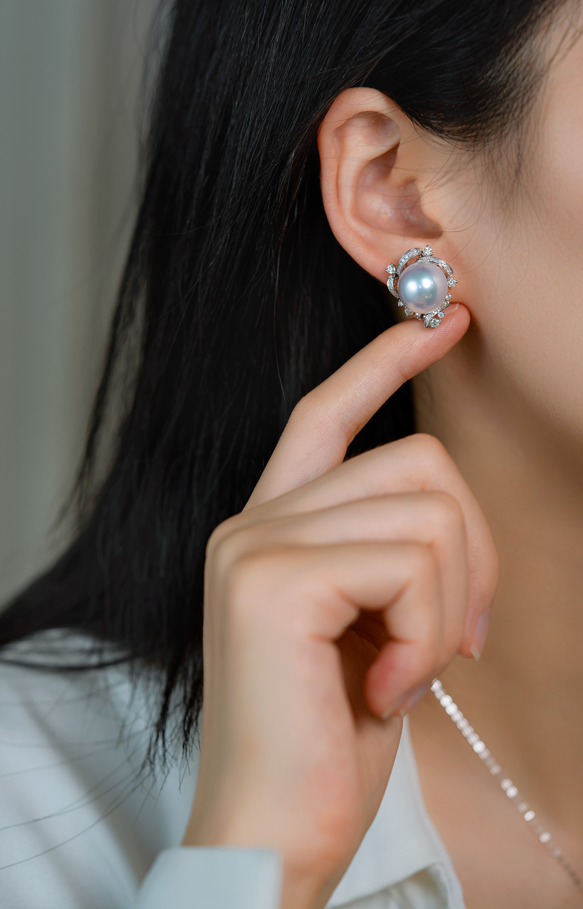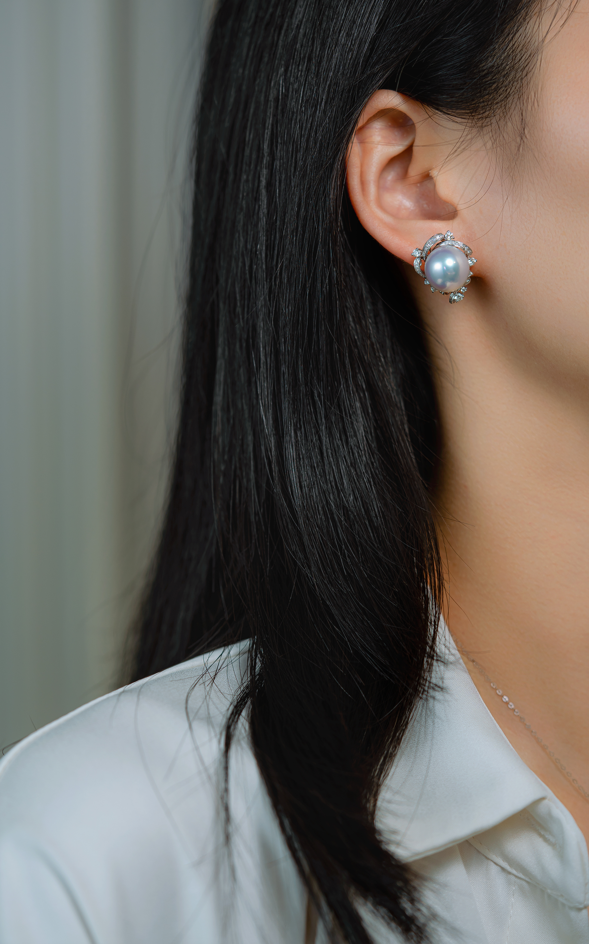 耳環的亮點是12-13mm的極光澳洲白珠,呈現出絕美的光澤和色彩。