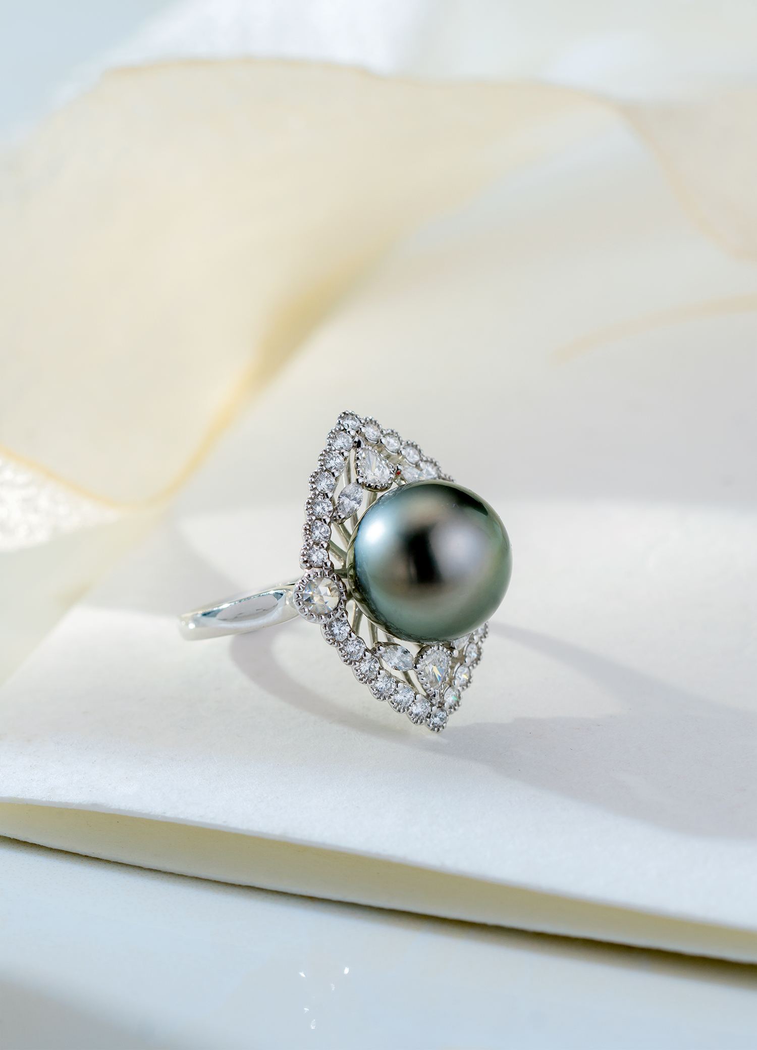 這款戒指精心展現了黑珍珠的神奇魅力,每一處都彷彿在低語著它的神秘故事。