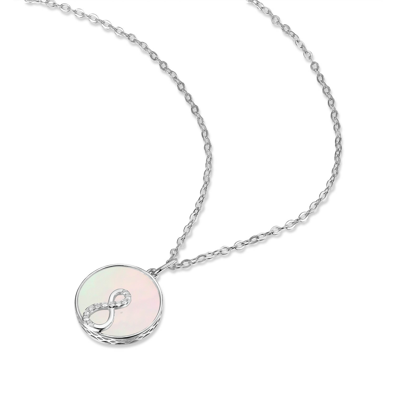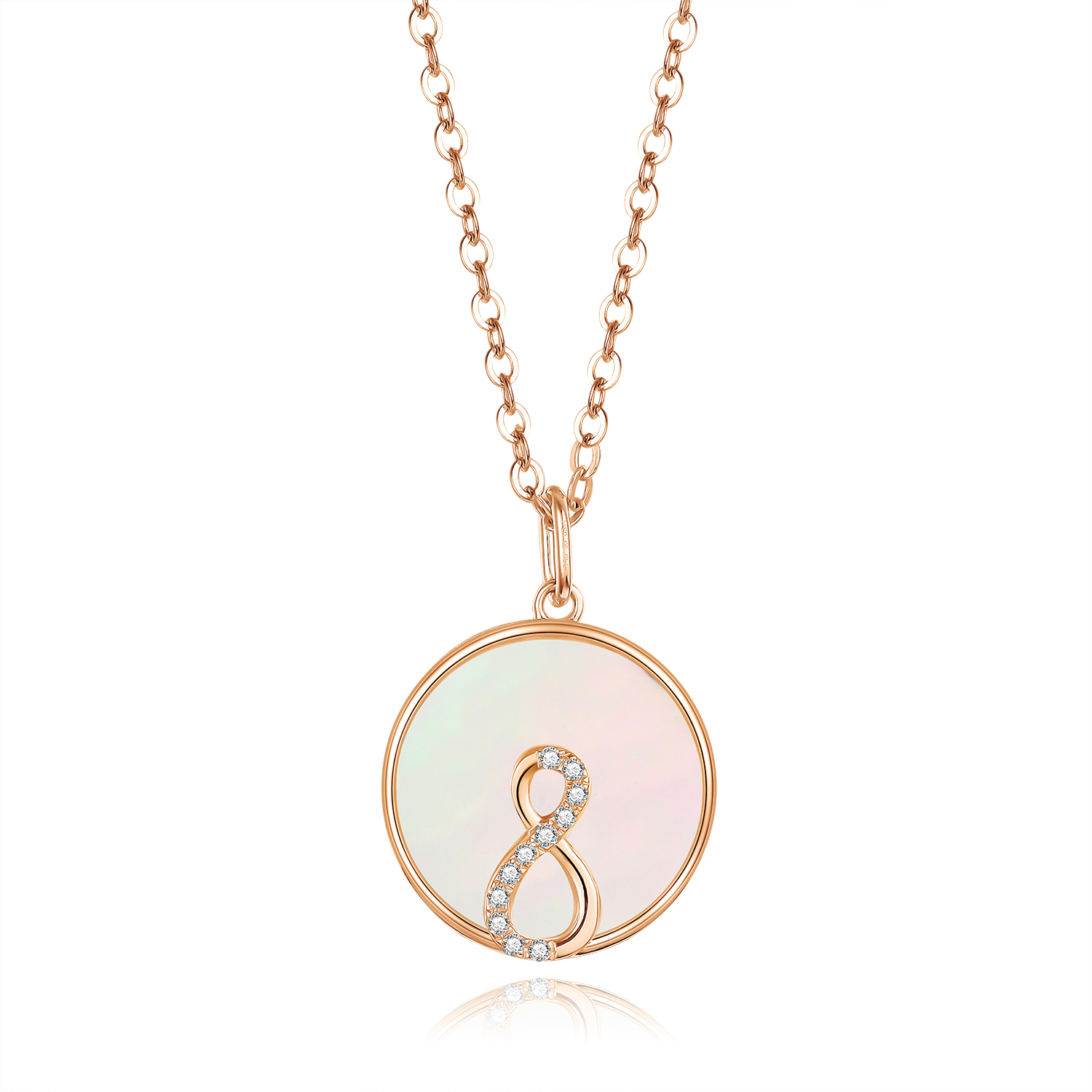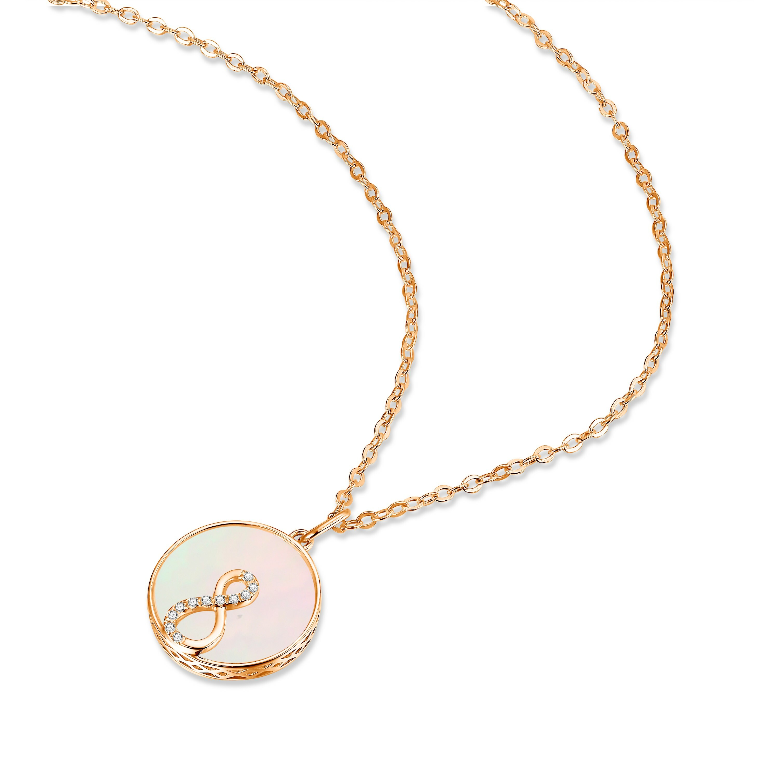 以「無限」為靈感設計,結合天然貝母與18K金材質,打造出典雅不凡的Infinity吊墜。閃耀的18K金線條勾勒出無窮迴圈,象徵無限希望與恆久愛意;中央貝母天然細緻光澤,柔和映襯金屬光暈,展現低調奢華的氣質。