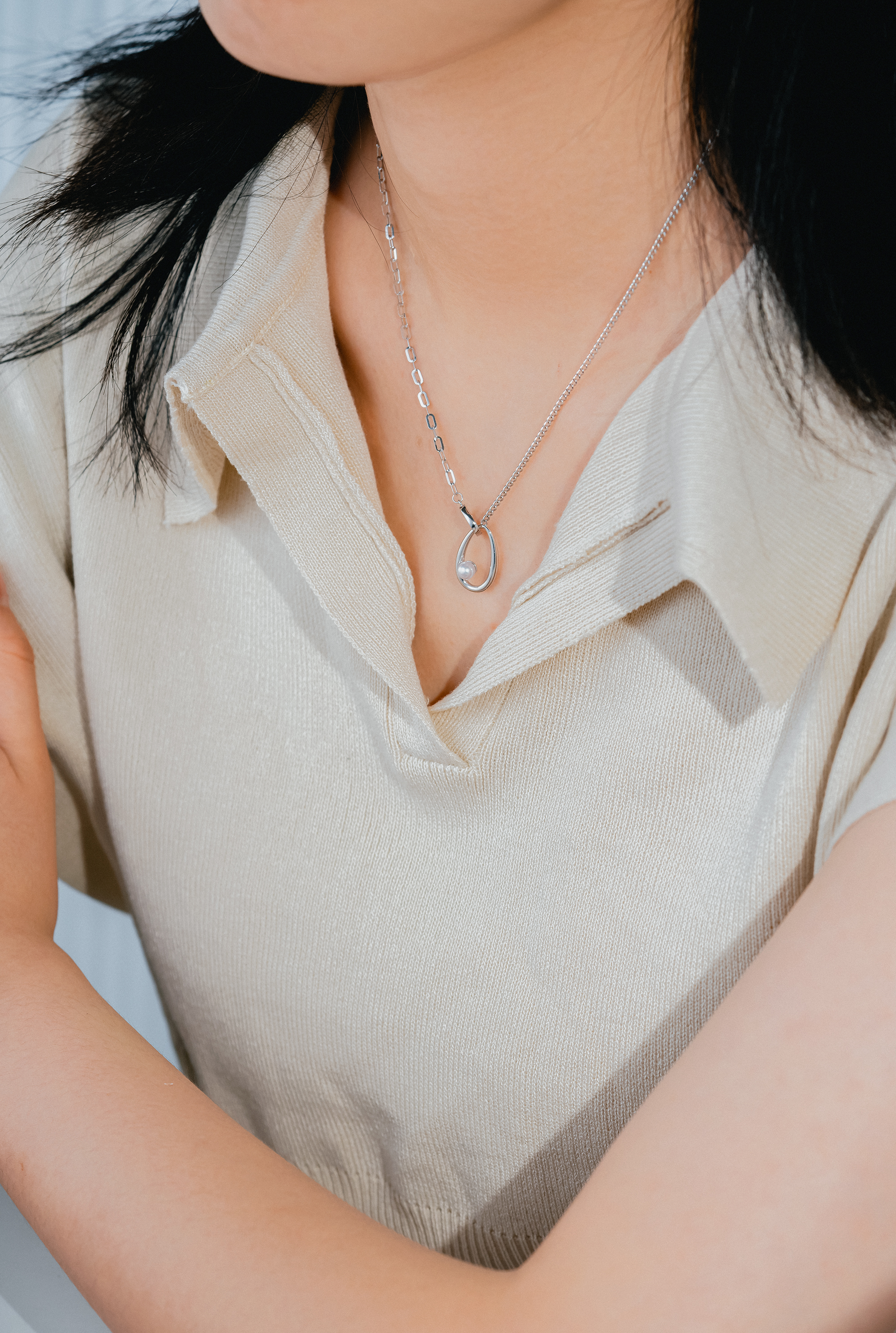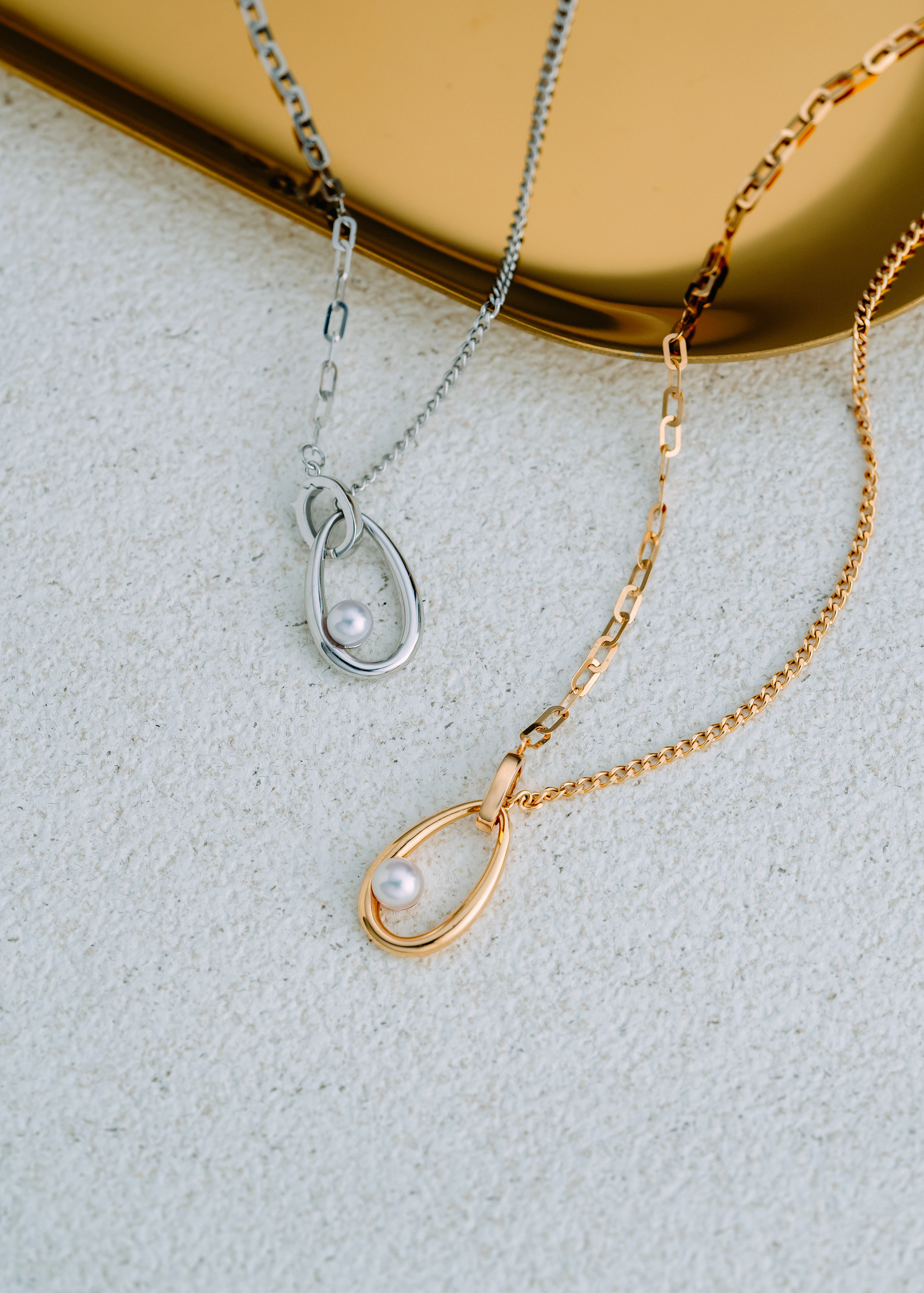 這條百變流線頸鏈獨具匠心,能隨著你的心情找出不一樣的戴法。精緻小巧的 Baby Akoya珍珠鑲嵌在18K金鵝蛋形線條上,營造出優雅而時尚的氛圍。這款頸鏈從簡單的日常穿搭到較正式的場合都能展現出獨特的魅力,成為你時尚造型的完美點綴。高品質的材料和精湛的工藝讓這款頸鏈成為絕佳的投資。