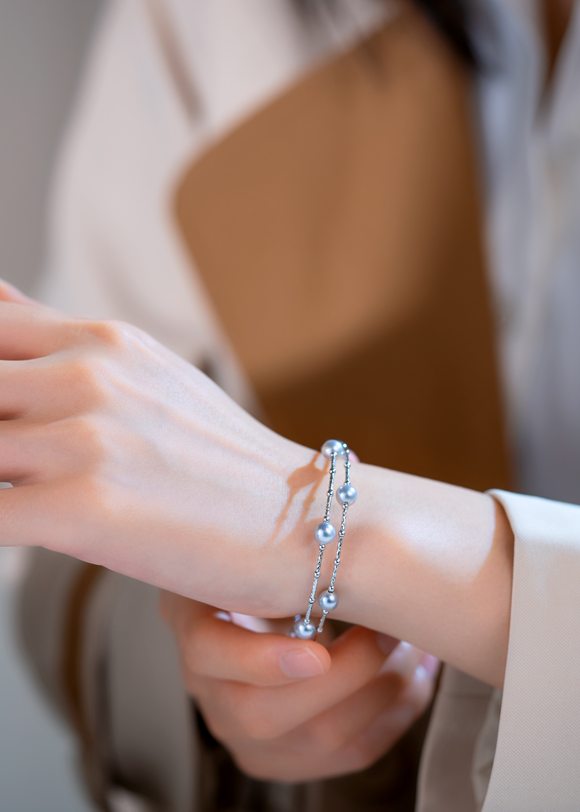 Akoya 選用極光神秘 "銀藍" 色系,款式優雅冷艷、容易穿戴,日常上班或約會都可輕鬆配襯。