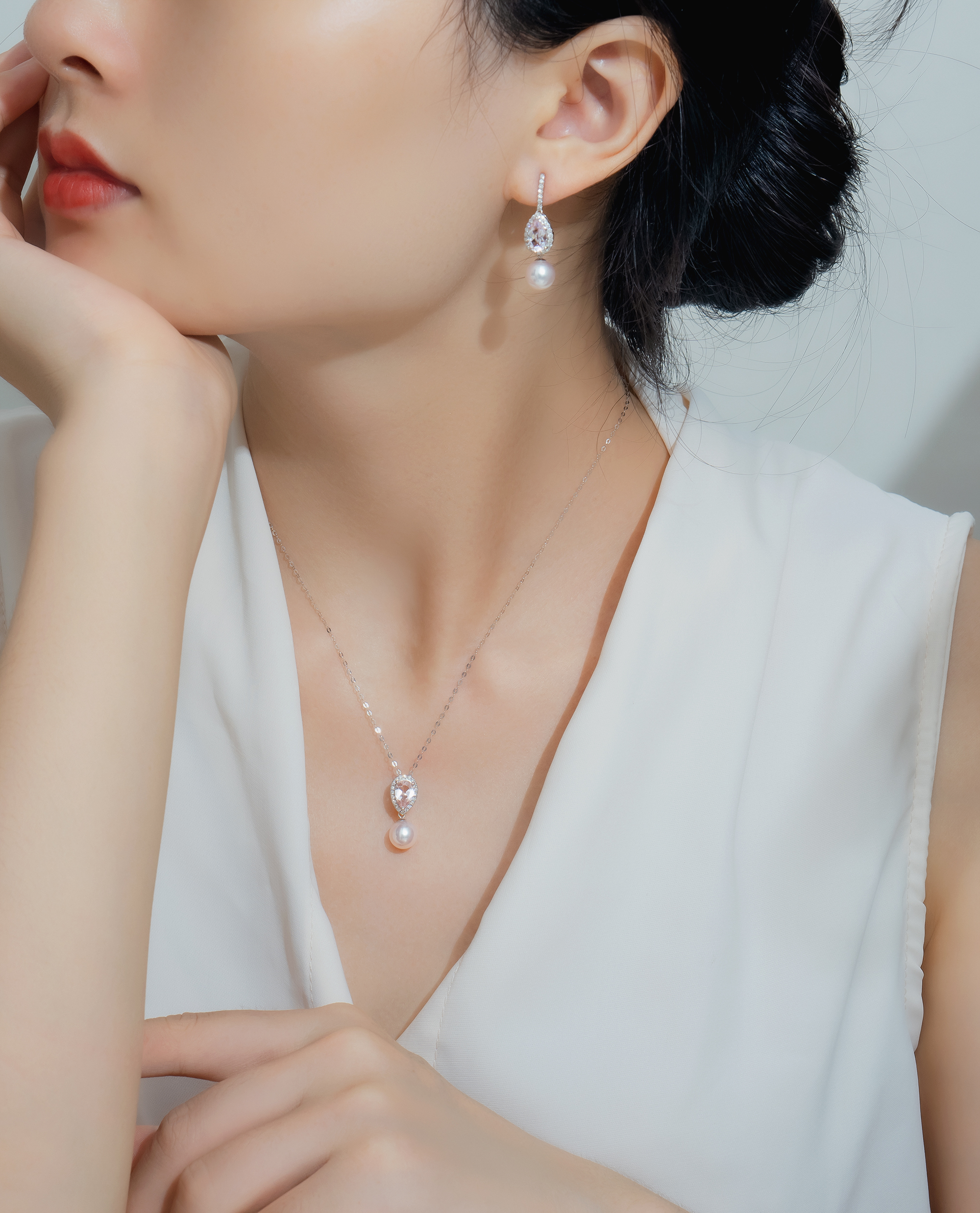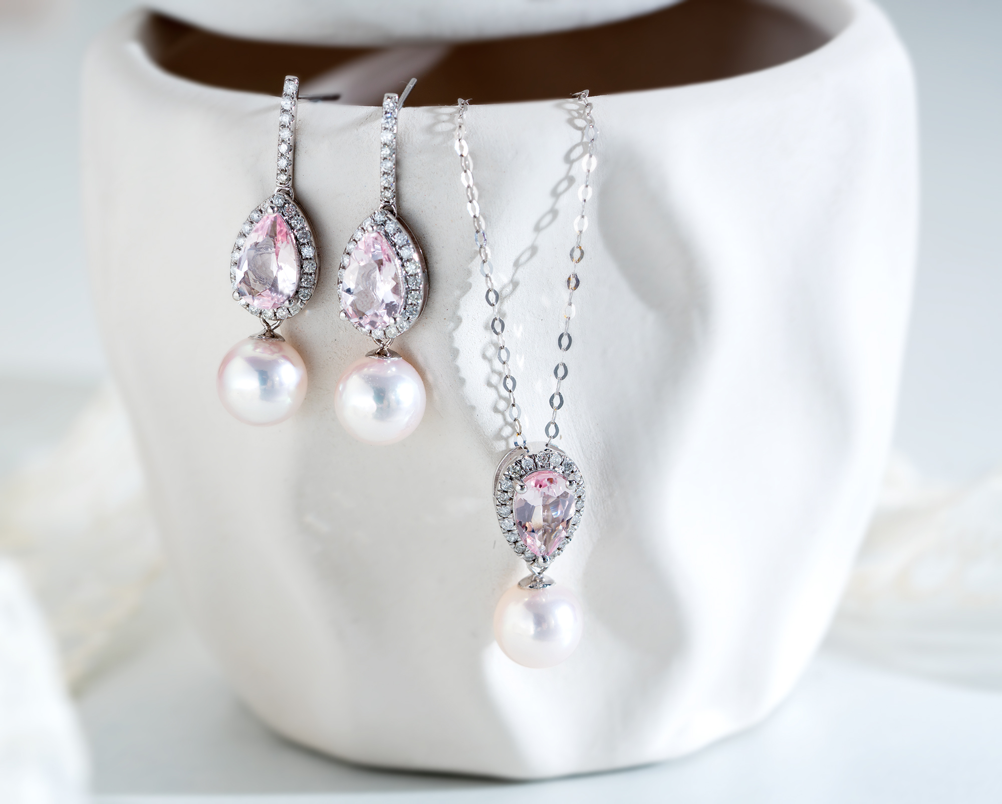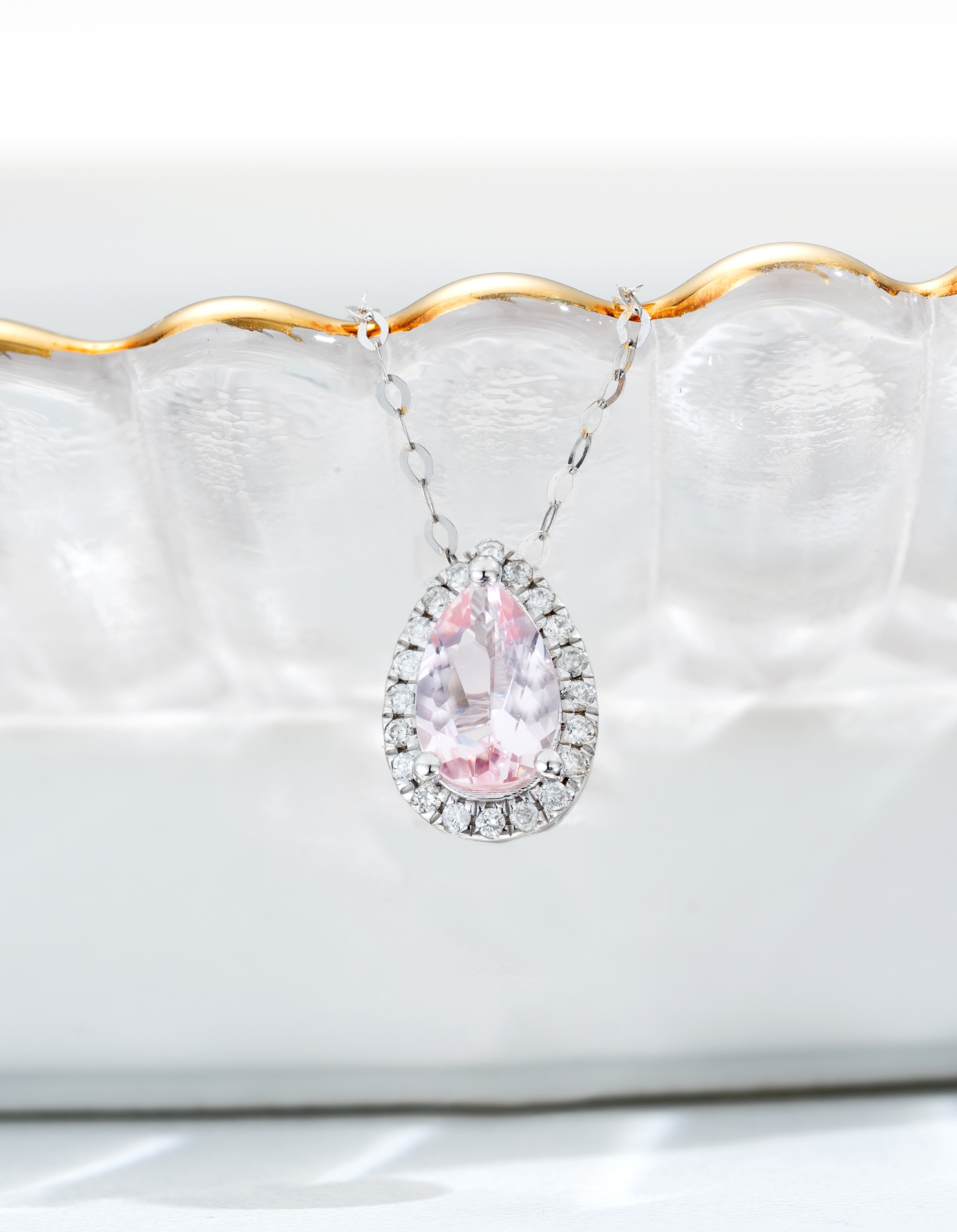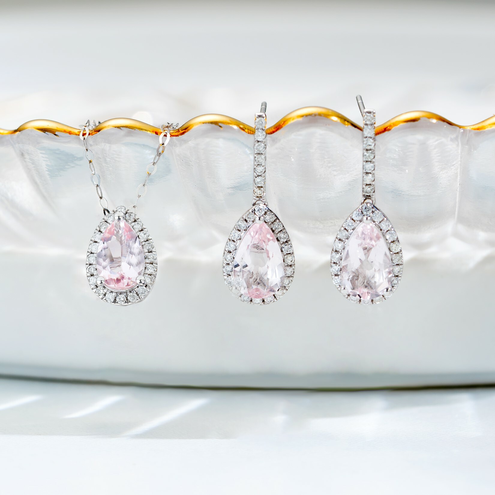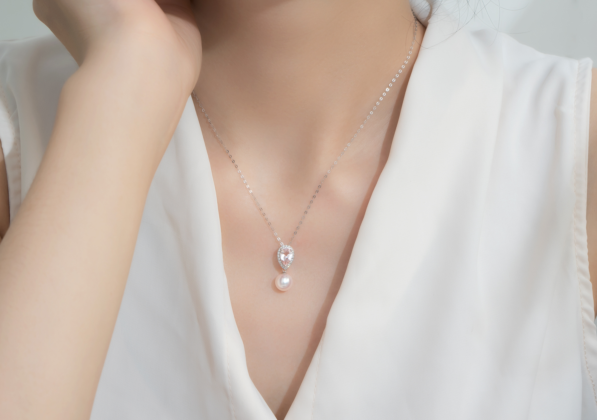 份量感十足的水滴摩根石就像一顆露珠晶瑩剔透,淡淡的粉紅色映襯著同樣粉嫩的Akoya,再加上一整圈璀璨鑽石環繞粉紅摩根石,華麗感滿分,陽光下盈盈閃耀,楚楚迷人;設計加入兩戴的小巧思,可隨需要取下或繫上Akoya珍珠,無論哪種戴法都肯定能讓你成為目光焦點,必須收藏的吸睛利器。