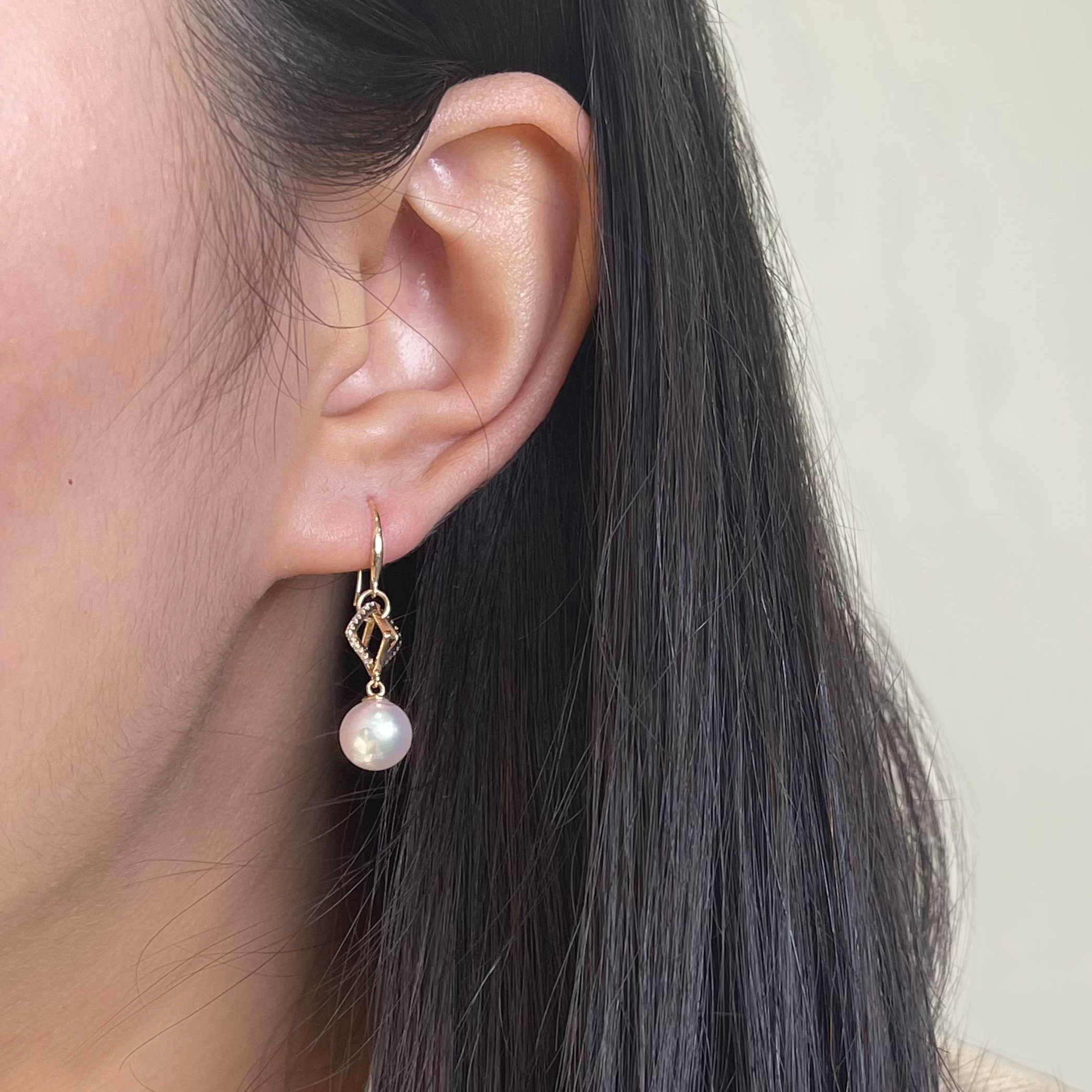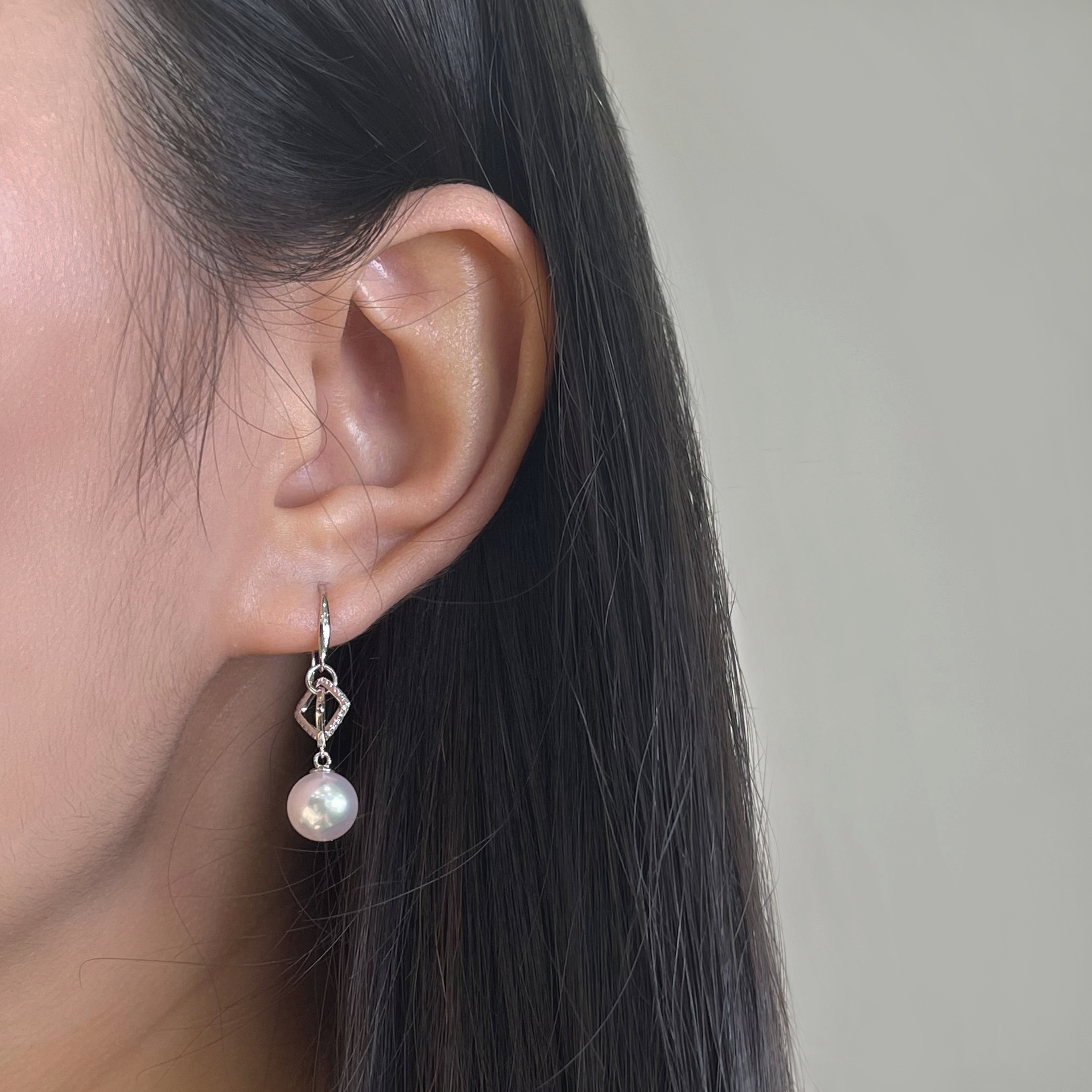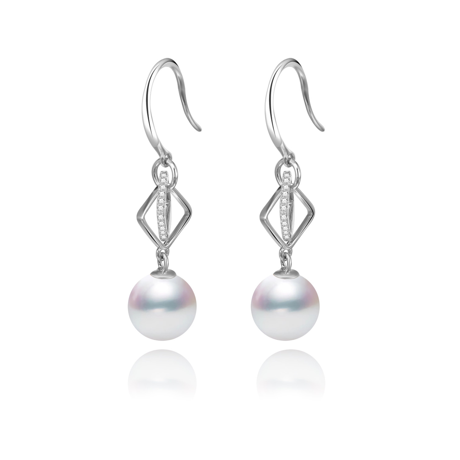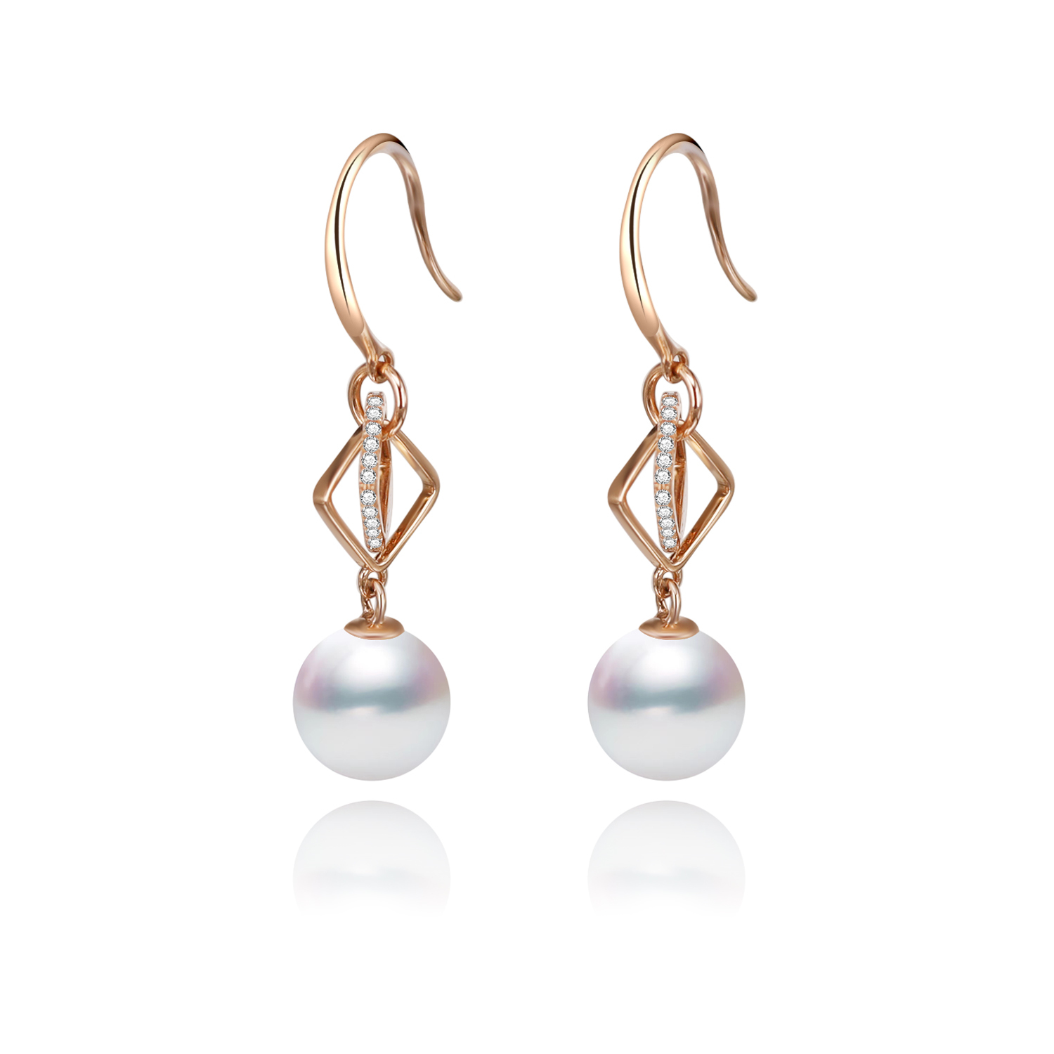 設計師精心選用了耳勾耳環,使懸掛著的菱形與扣人心弦的7.5-8mm Akoya能夠隨著你每個細微的動作而轉動,令人不經意的把視線停留在你耳尖。