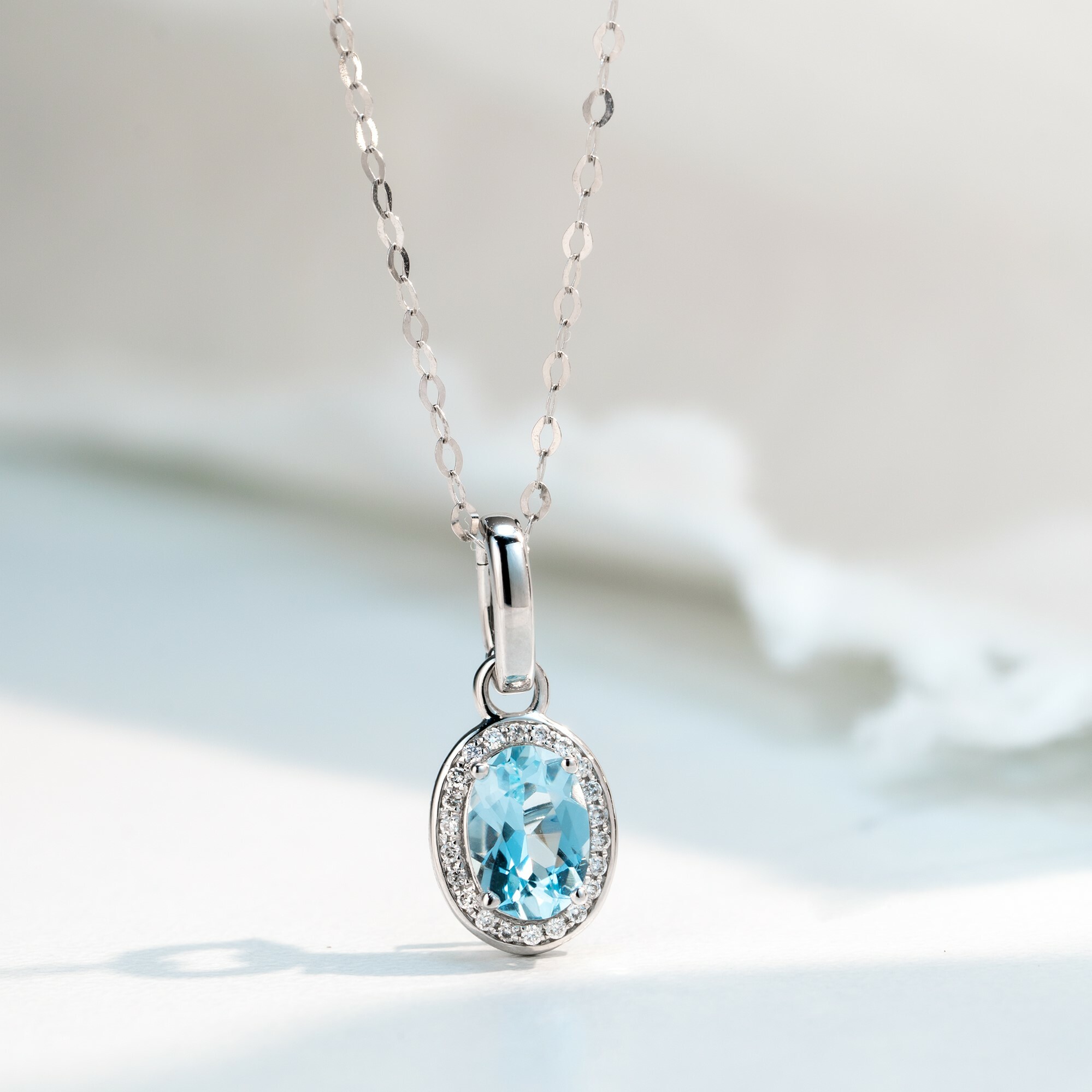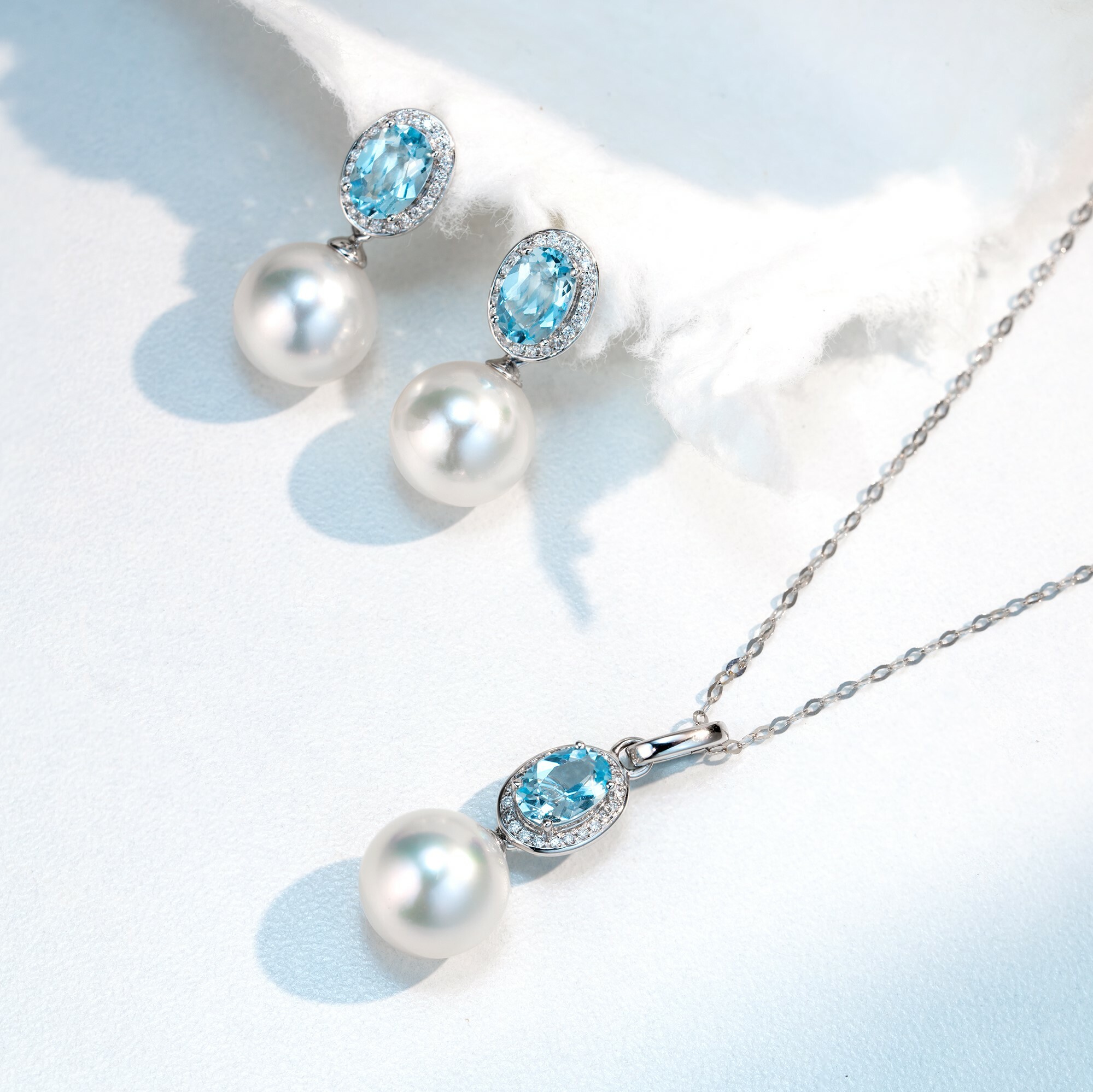 晶瑩剔透的海藍寶就像是一汪湖水,總是有著一種讓人平靜下來的力量。海藍寶的周圍被一圈鑽石圍繞著,搭配18K白金與一顆雪白無比、帶有鏡面效果的9-10mm的澳洲白珠,就像去了一趟治癒心靈的極地旅行。
