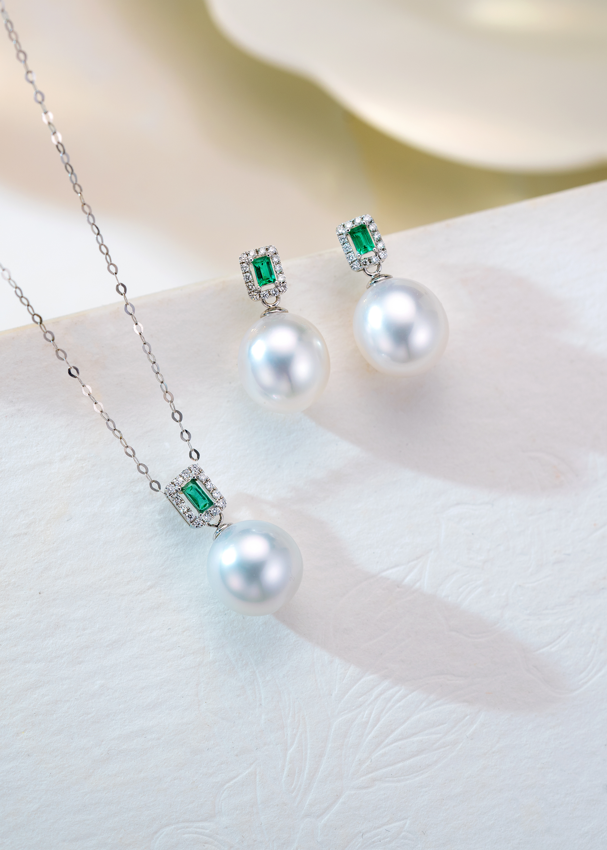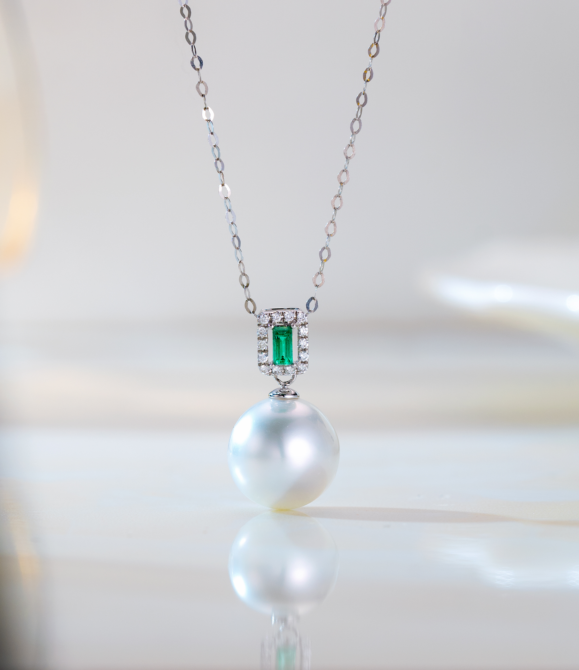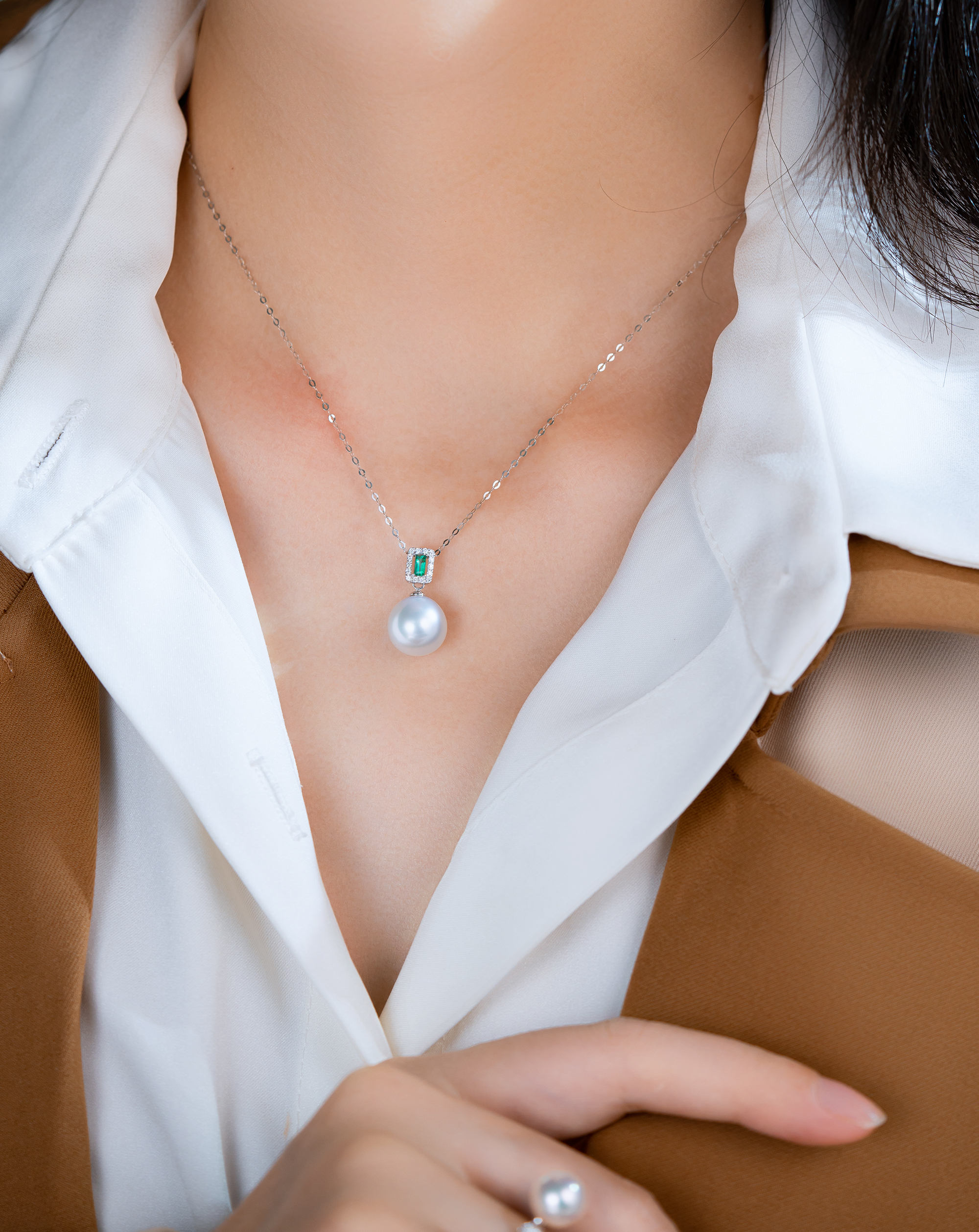 澳洲白珠展現出絕美的光澤和純淨的白色,為吊墜注入了一份高雅和典雅。