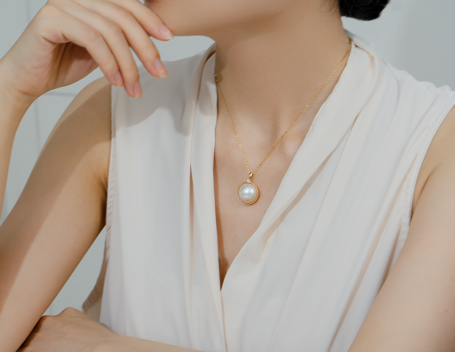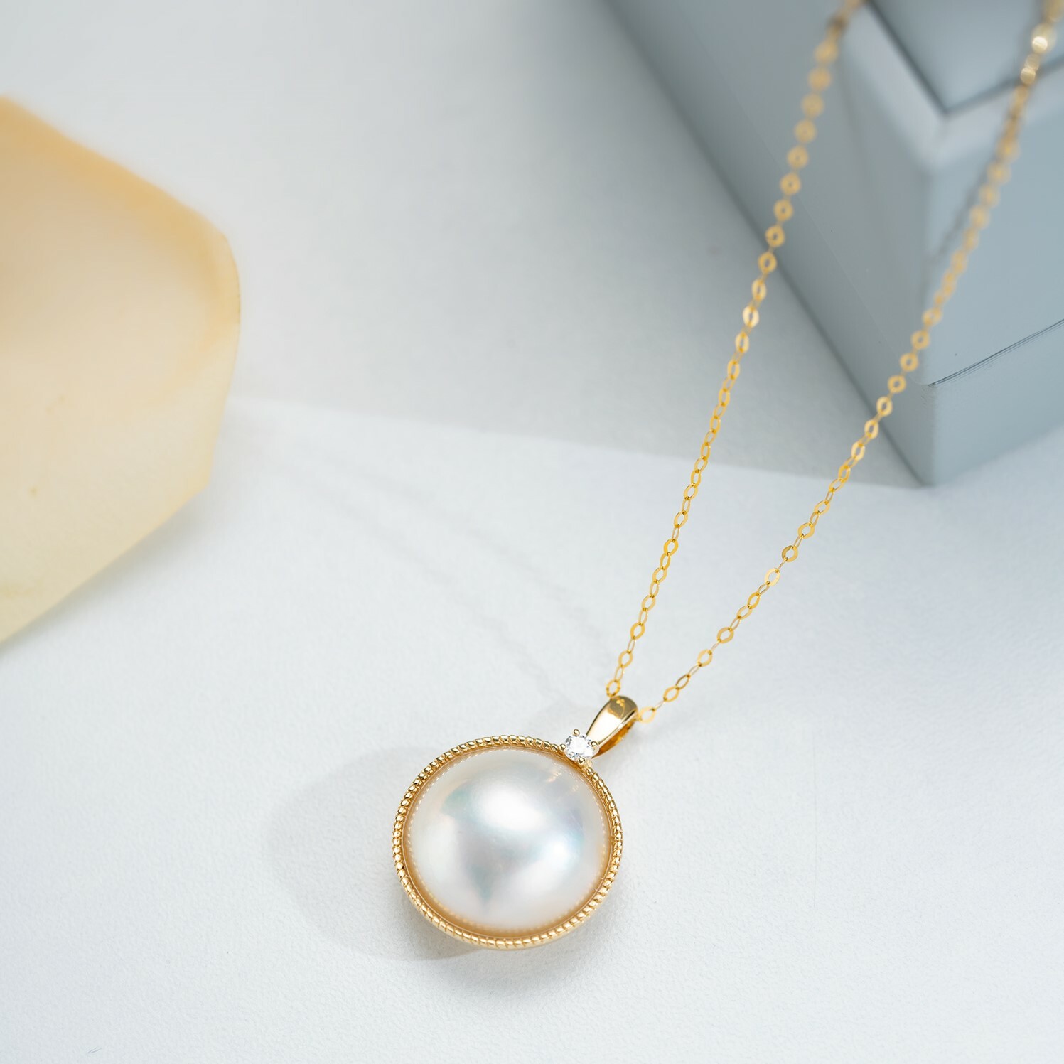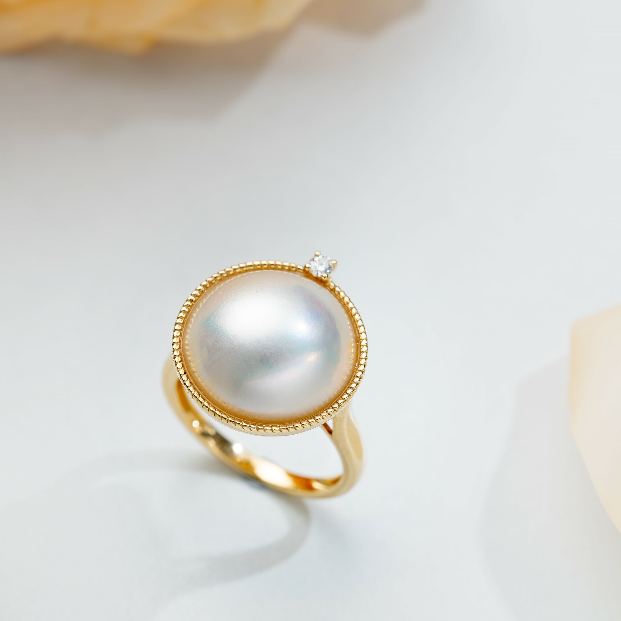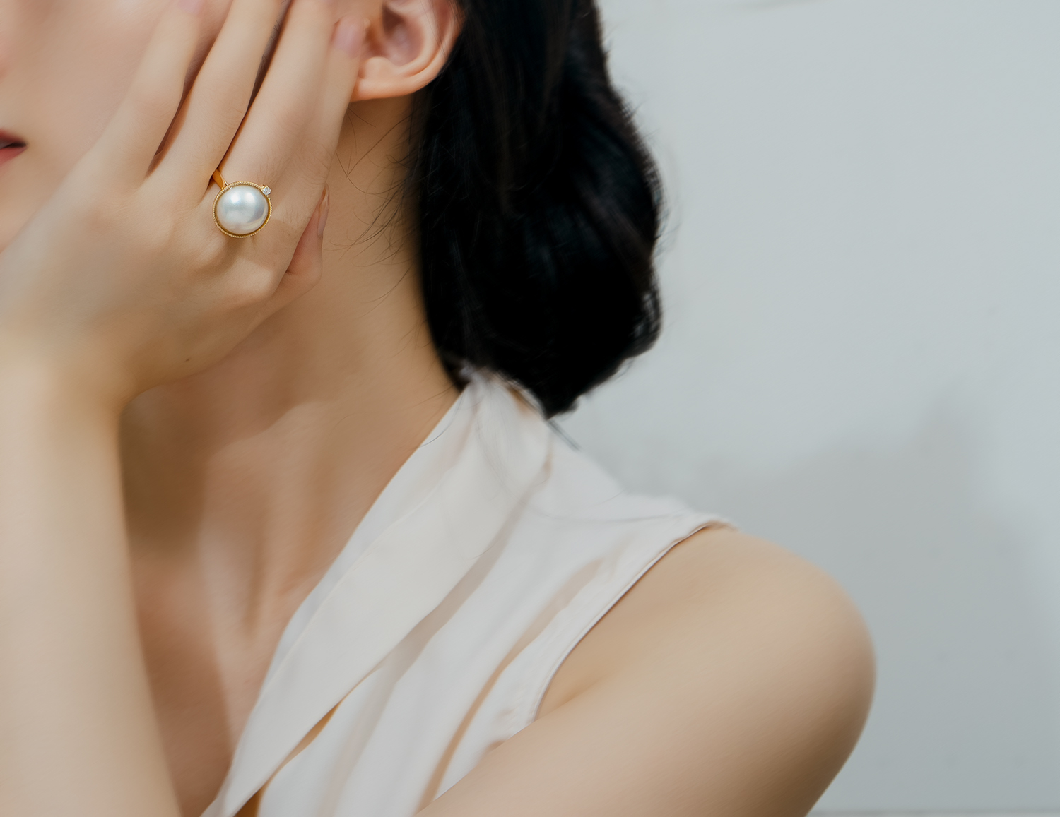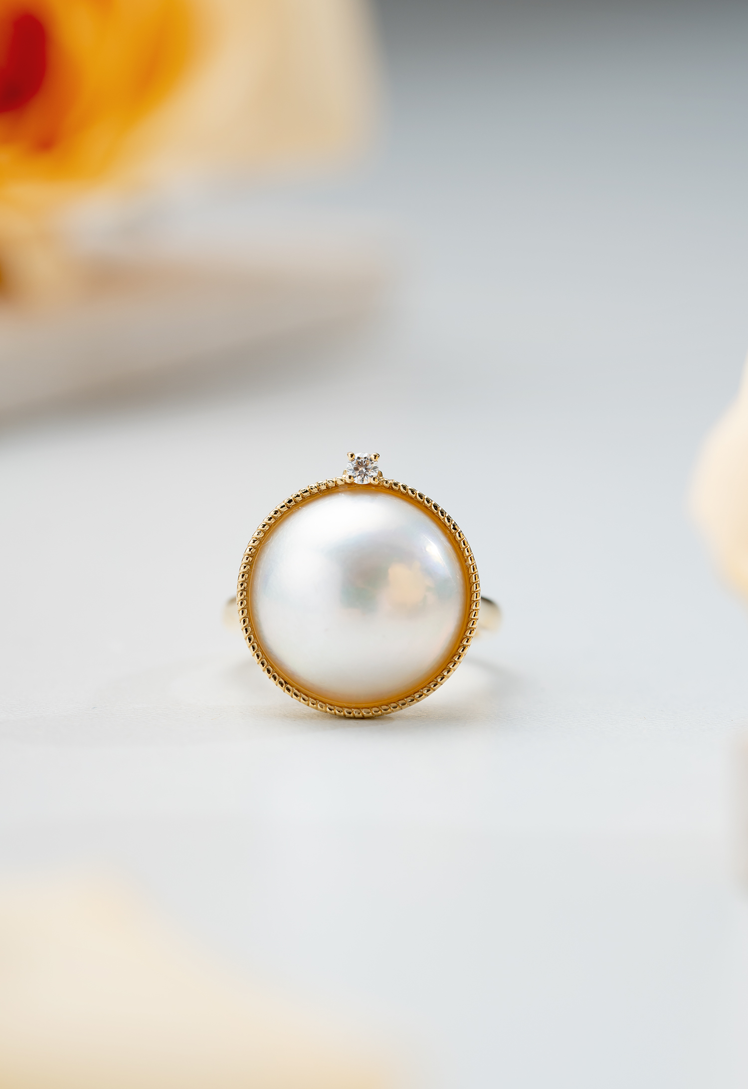 細緻18K黃金花紋圍繞著一顆極光馬貝,不需要過多的裝飾,一顆閃耀的小鑽石點綴已經能帶出清雅知性感覺, 讓目光和焦點都集中在這顆碩大明亮的馬貝上,隨意轉換配戴方式,無論作為戒指或是吊墜也是同樣出色,帶上在浪濤中孕育出來的馬貝,感受海洋之美。